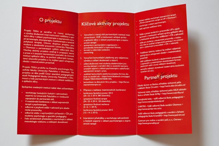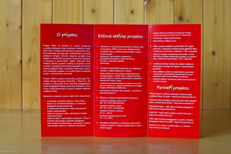Grafický návrh obálky sborníku International Contexts of Tertiary Education in Expressive Therapies, sborník vyšel v rámci Projektu TERA realizovaného na Katedře psychologie Univerzity Palackého v Olomouci