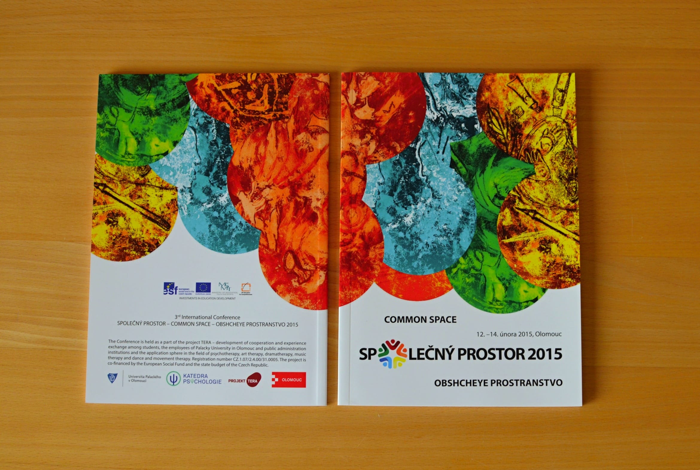 Grafický návrh obálky programové brožury ke konferenci SPOLEČNÝ PROSTOR / COMMON SPACE 2015 pořádané Katedrou psychologie Univerzity Palackého v Olomouci