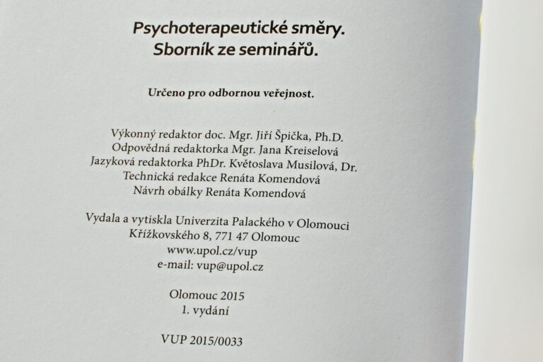 OBÁLKA A SAZBA SBORNÍKU ZE SEMINÁŘŮ PSYCHOTERAPEUTICKÉ SMĚRY