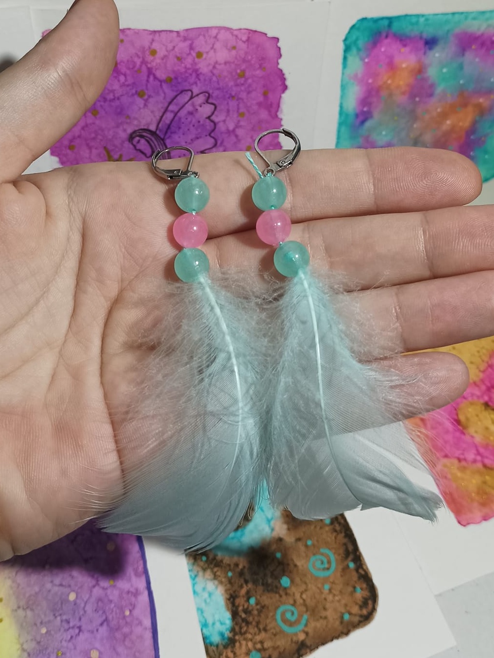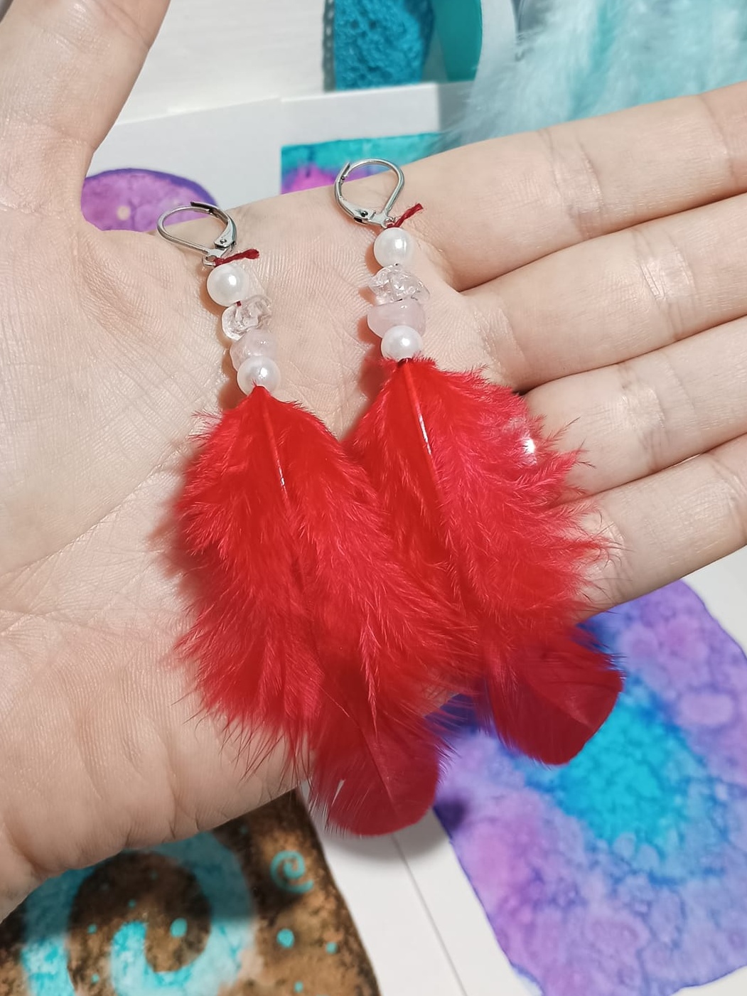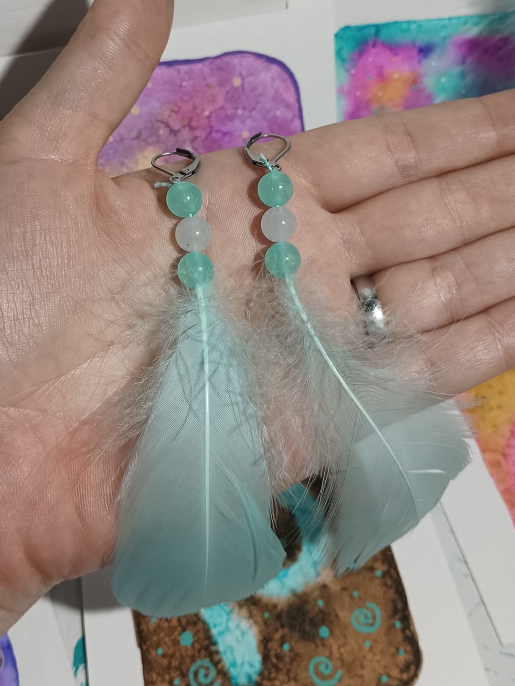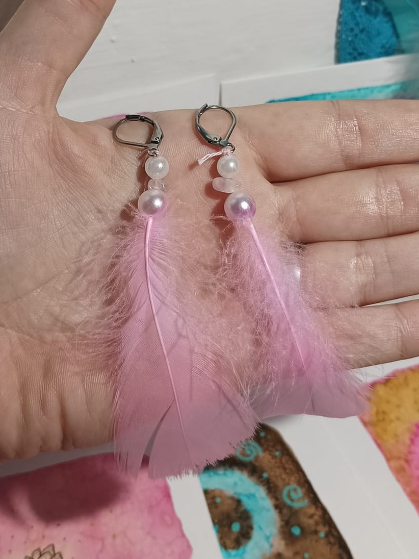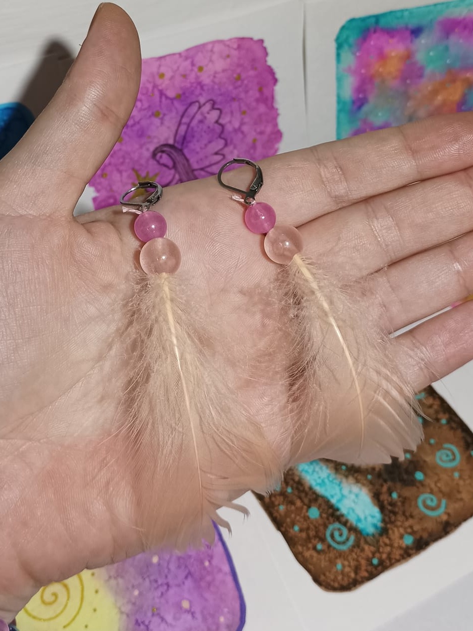 Vlastnoručně vyráběné peříčkové náušnice s korálky a minerály. Vyrobím i na přání, stačí napsat na e-mail nebo facebook.