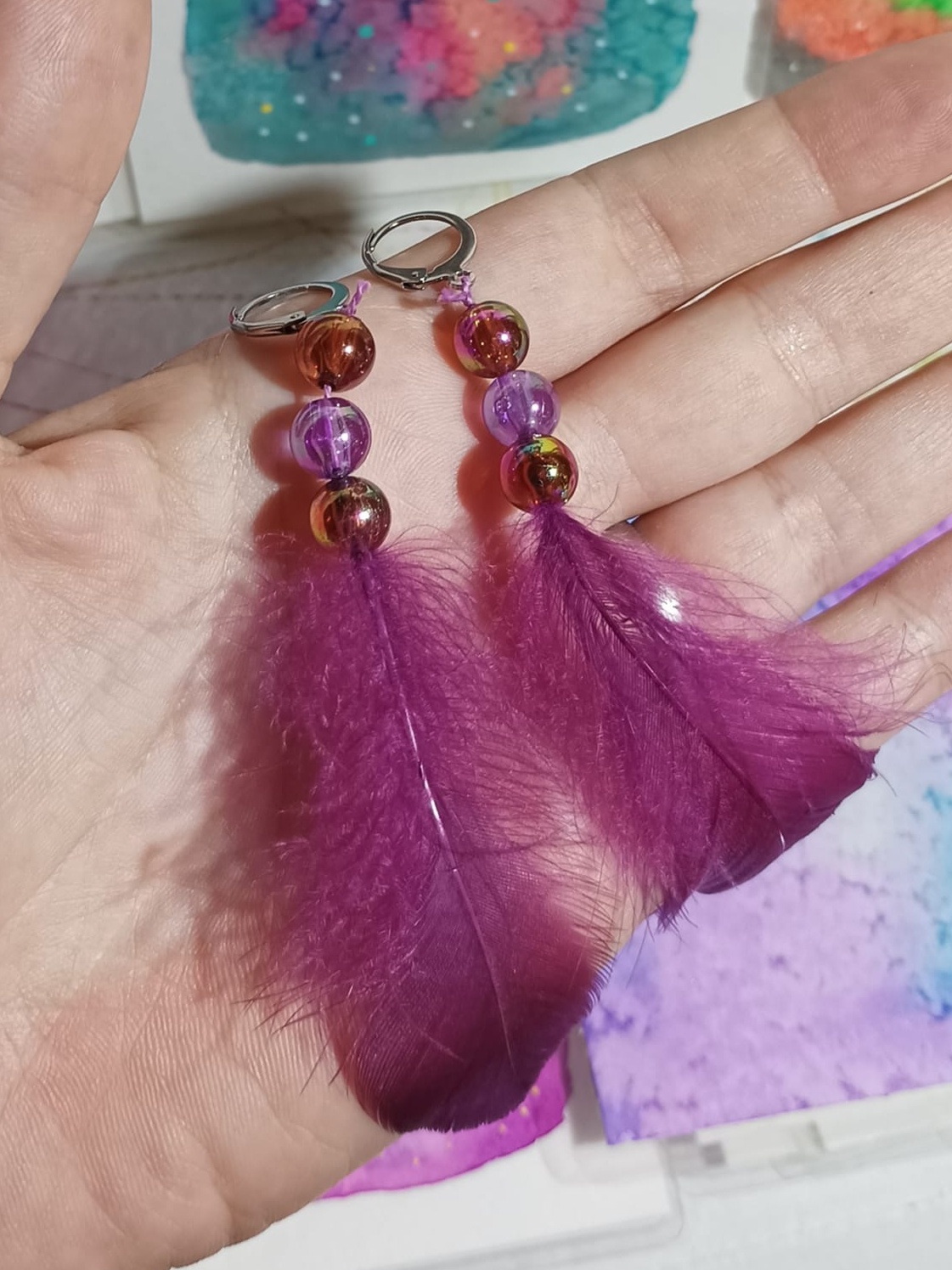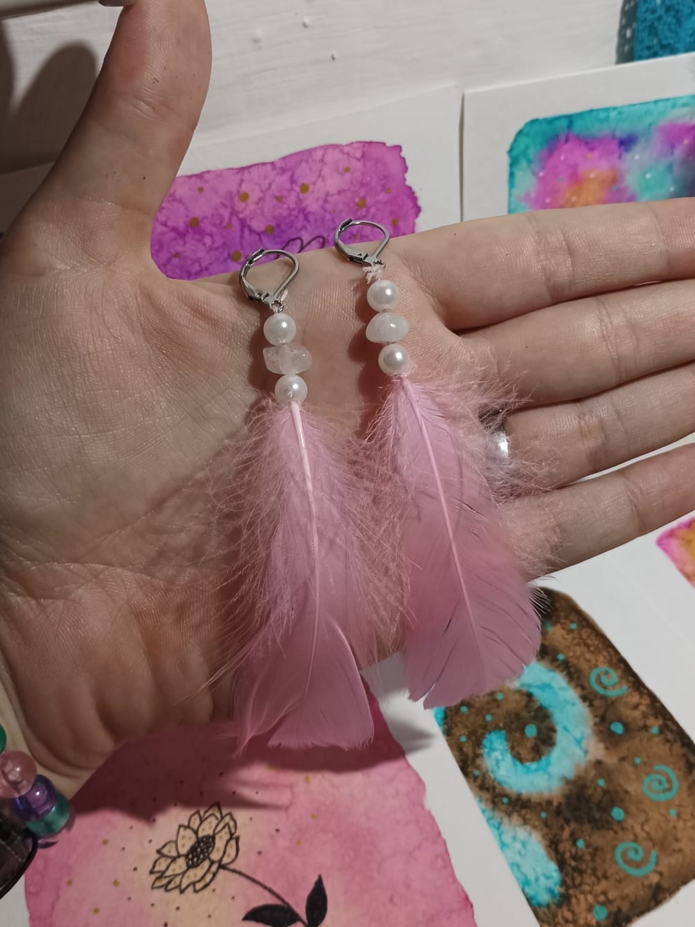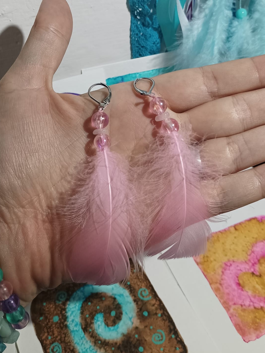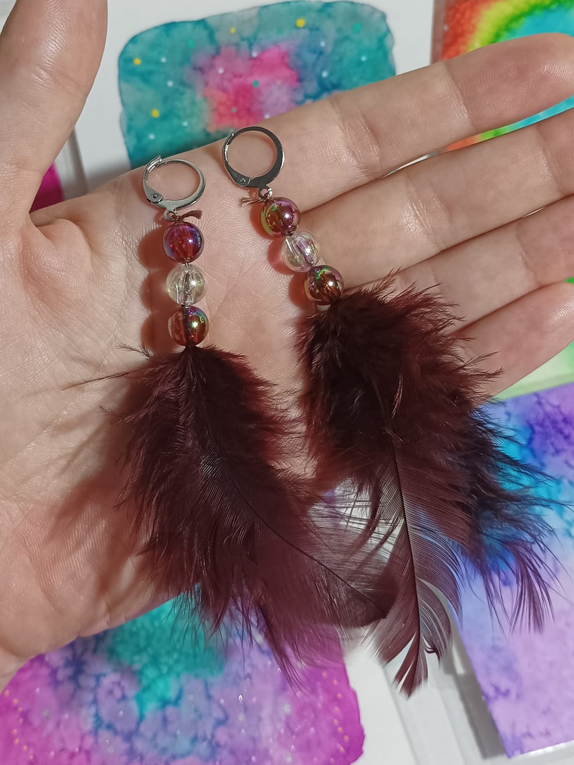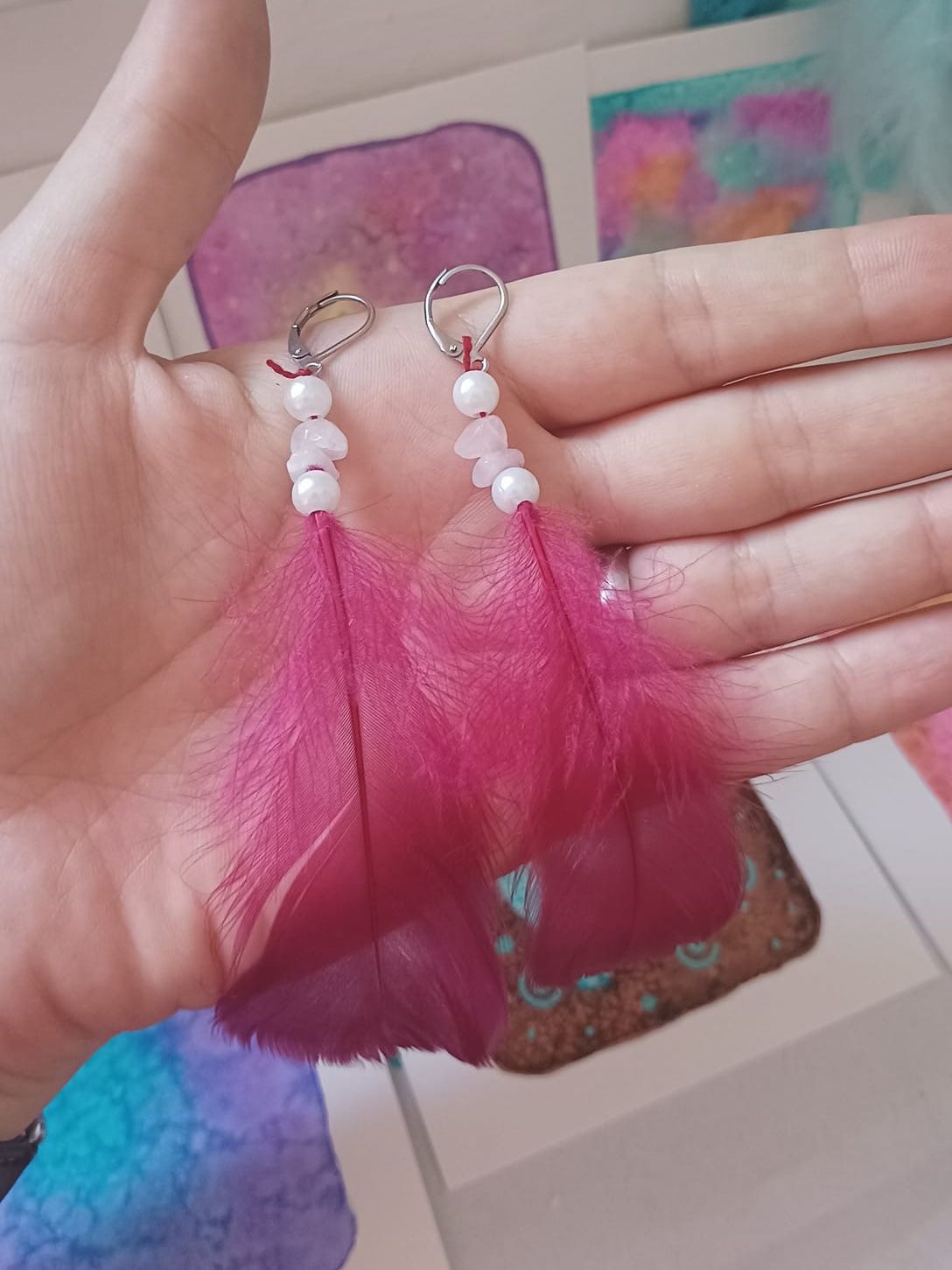Vlastnoručně vyráběné peříčkové náušnice s korálky a minerály. Vyrobím i na přání, stačí napsat na e-mail nebo facebook.