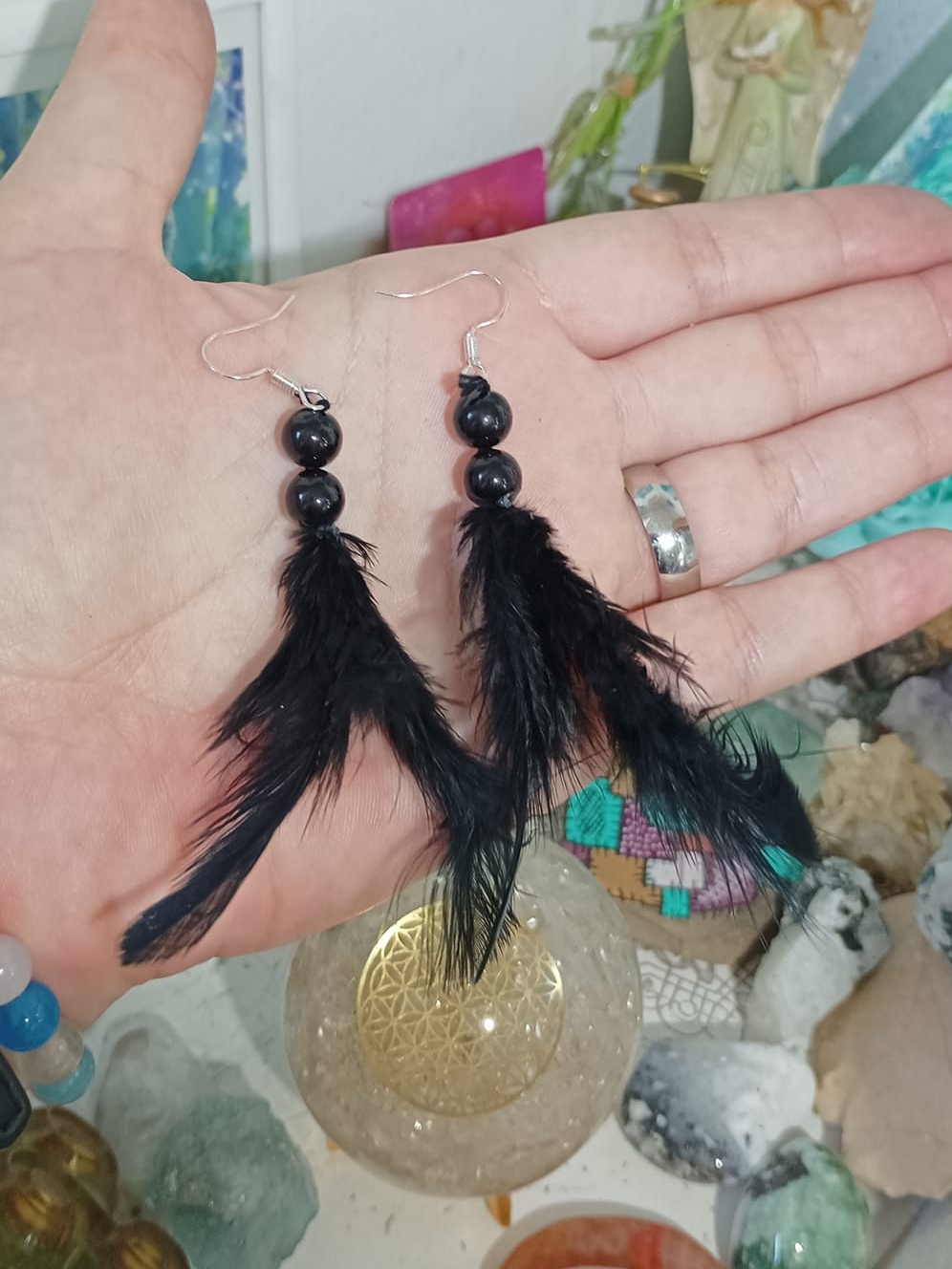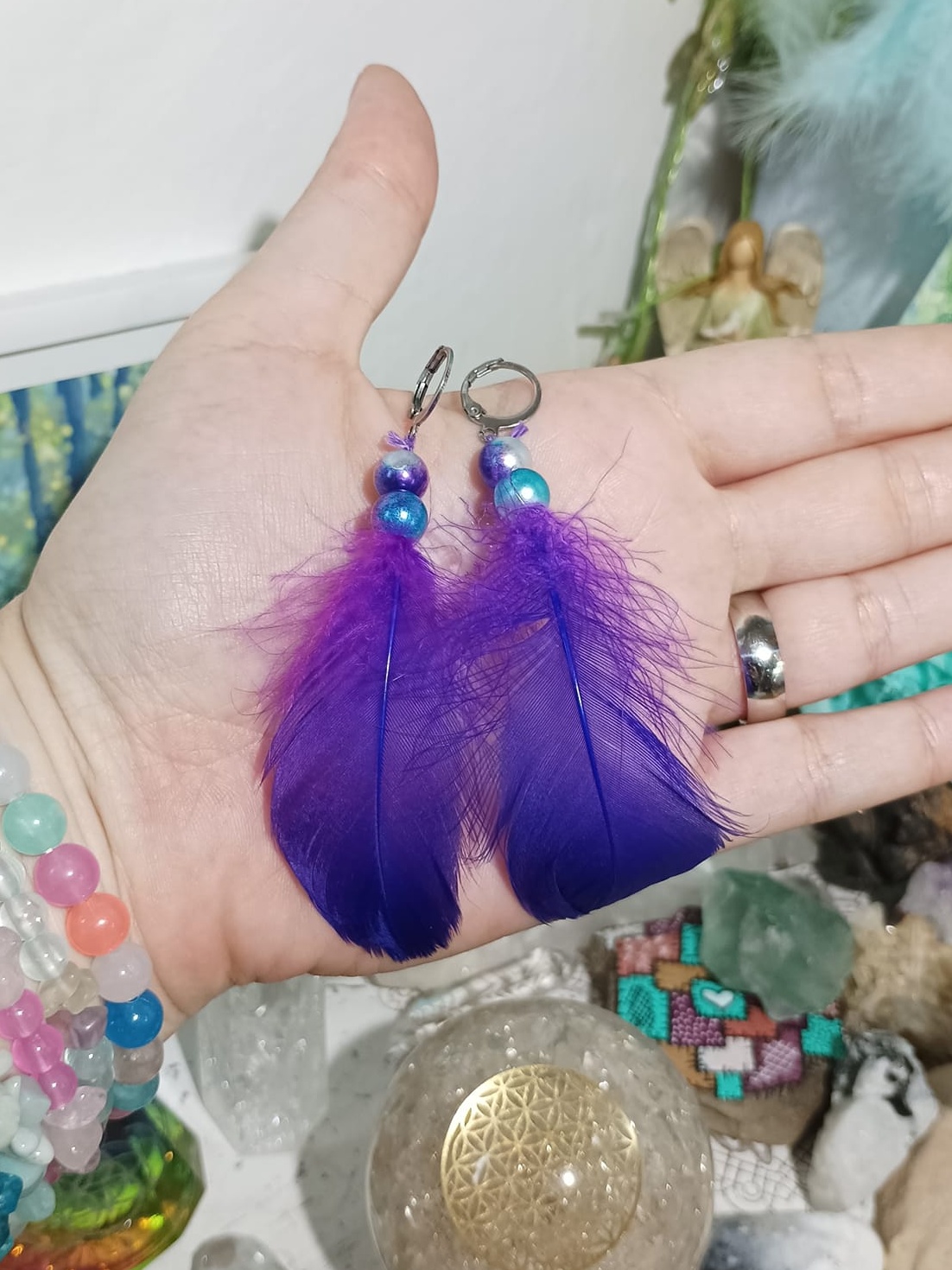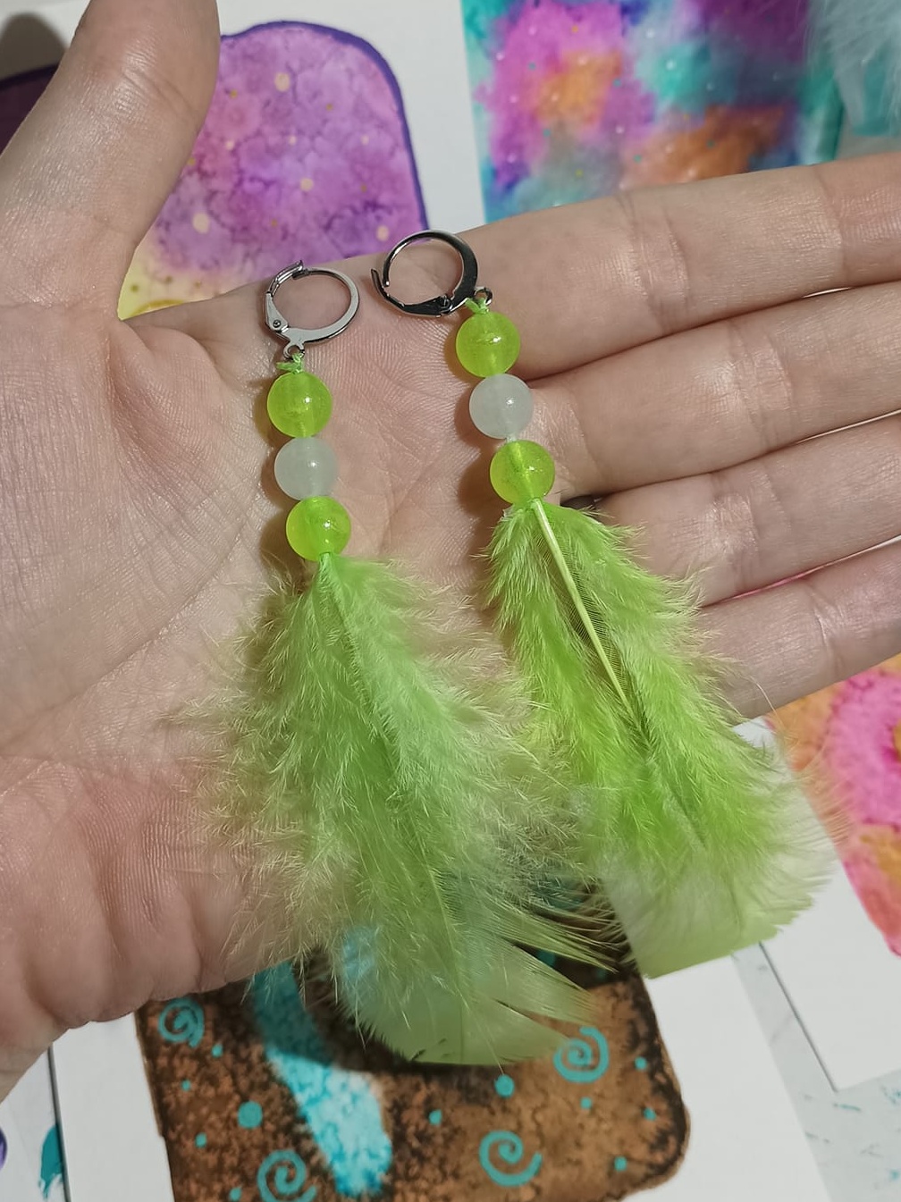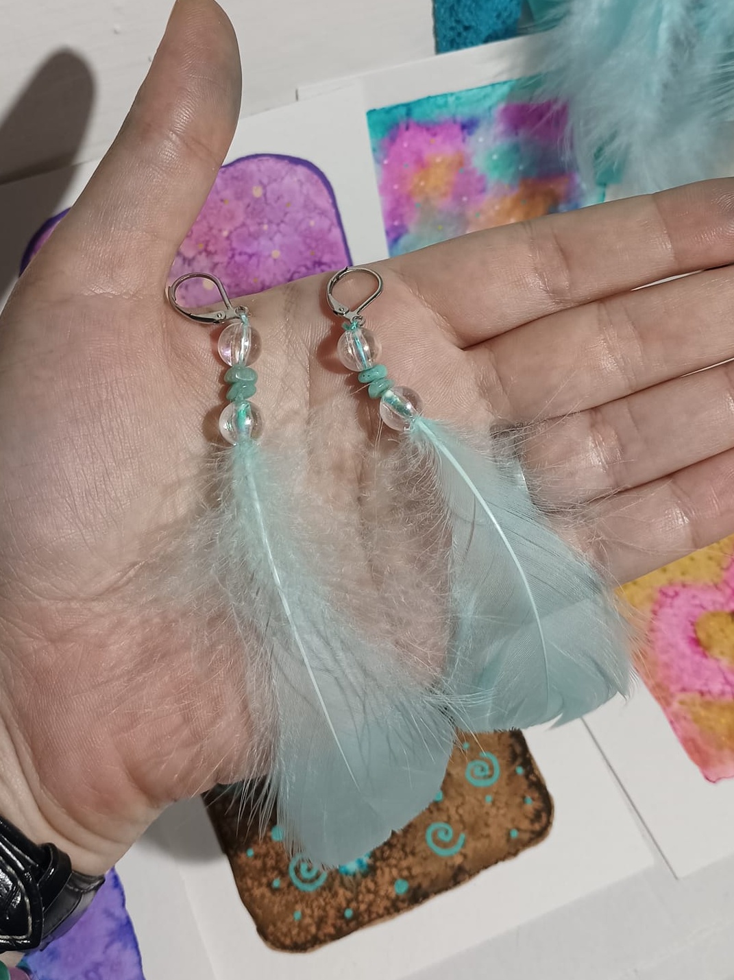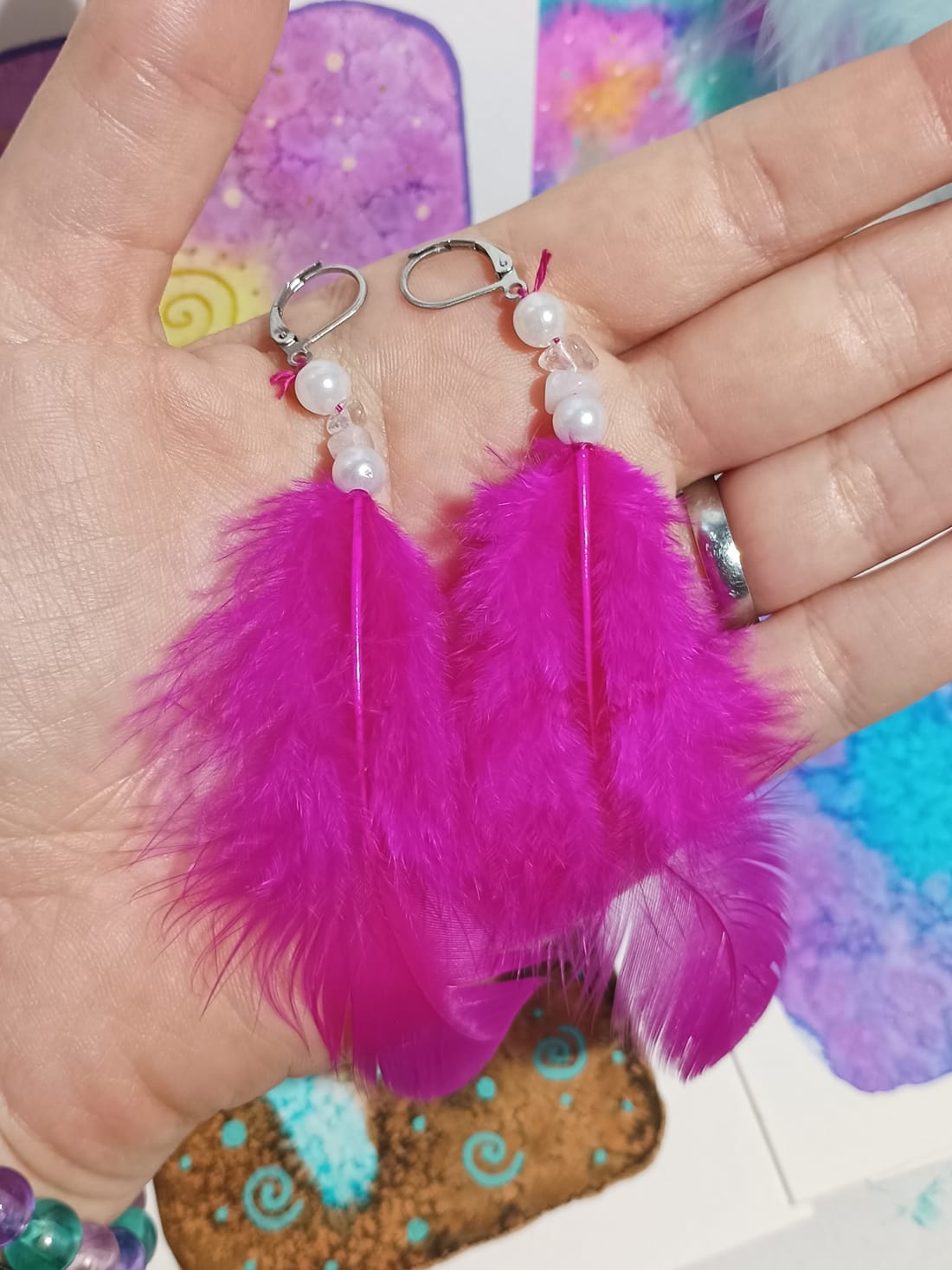 Vlastnoručně vyráběné peříčkové náušnice s korálky a minerály. Vyrobím i na přání, stačí napsat na e-mail nebo facebook.