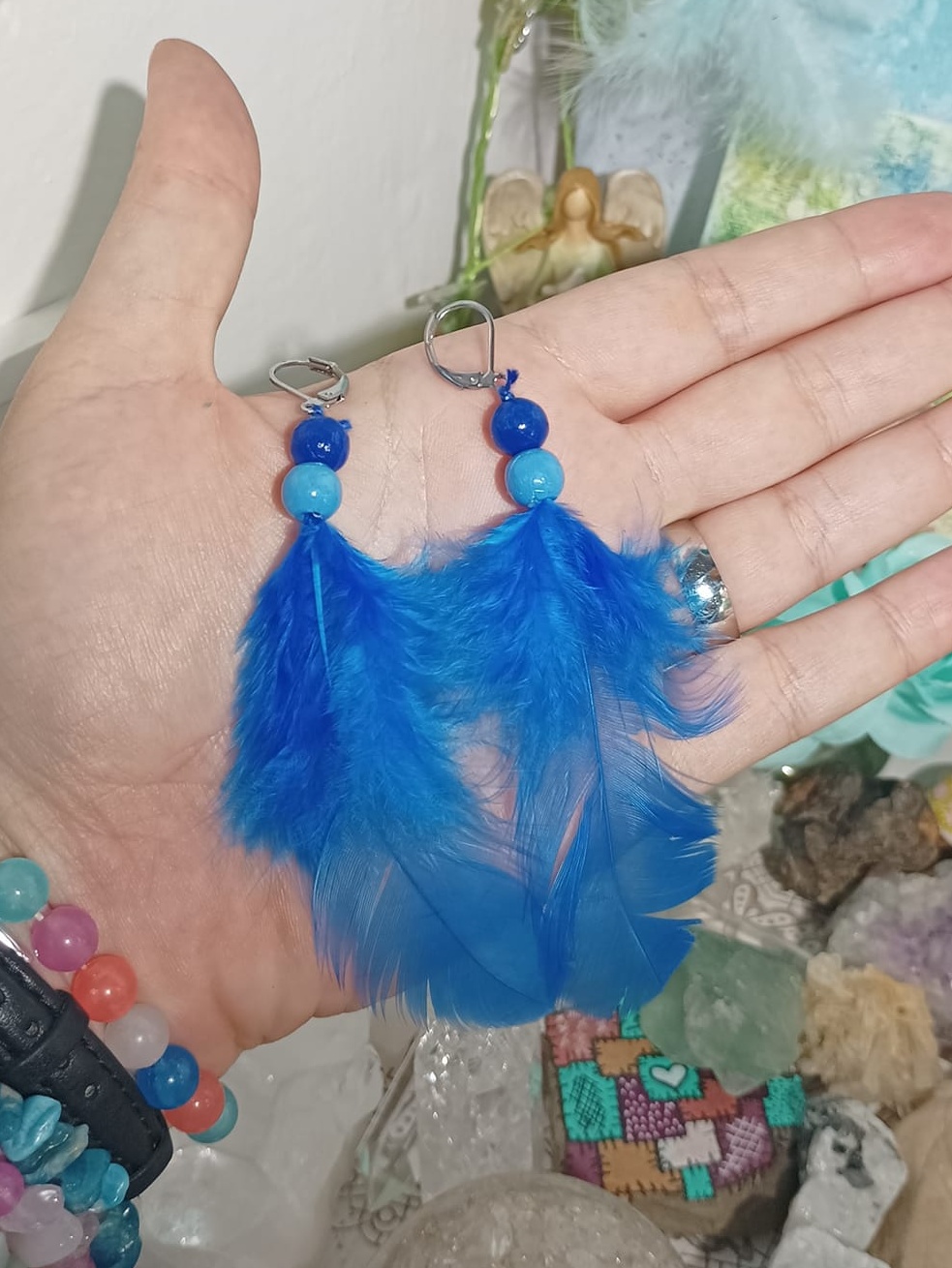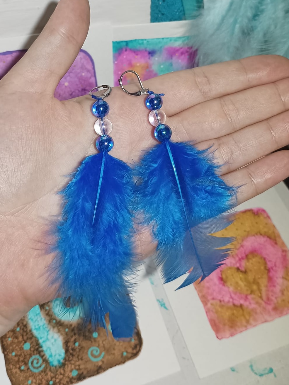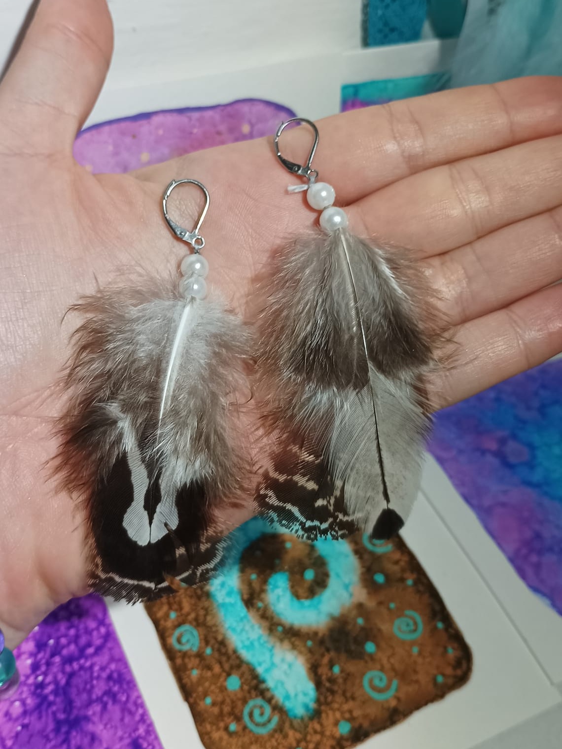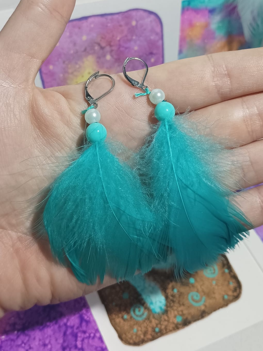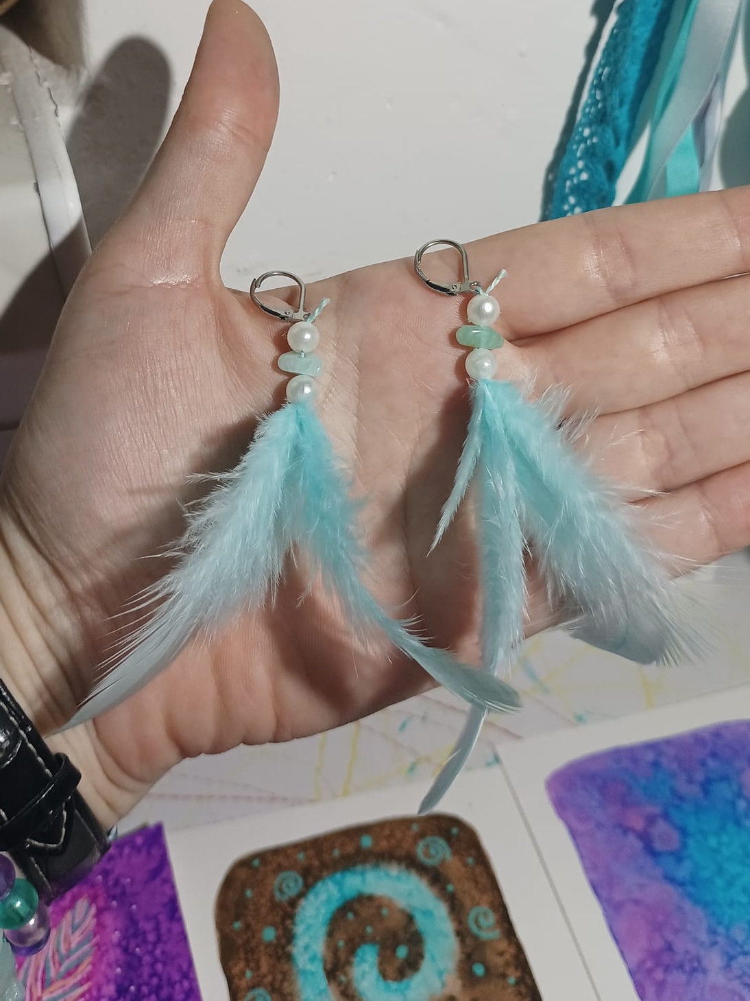 Vlastnoručně vyráběné peříčkové náušnice s korálky a minerály. Vyrobím i na přání, stačí napsat na e-mail nebo facebook.