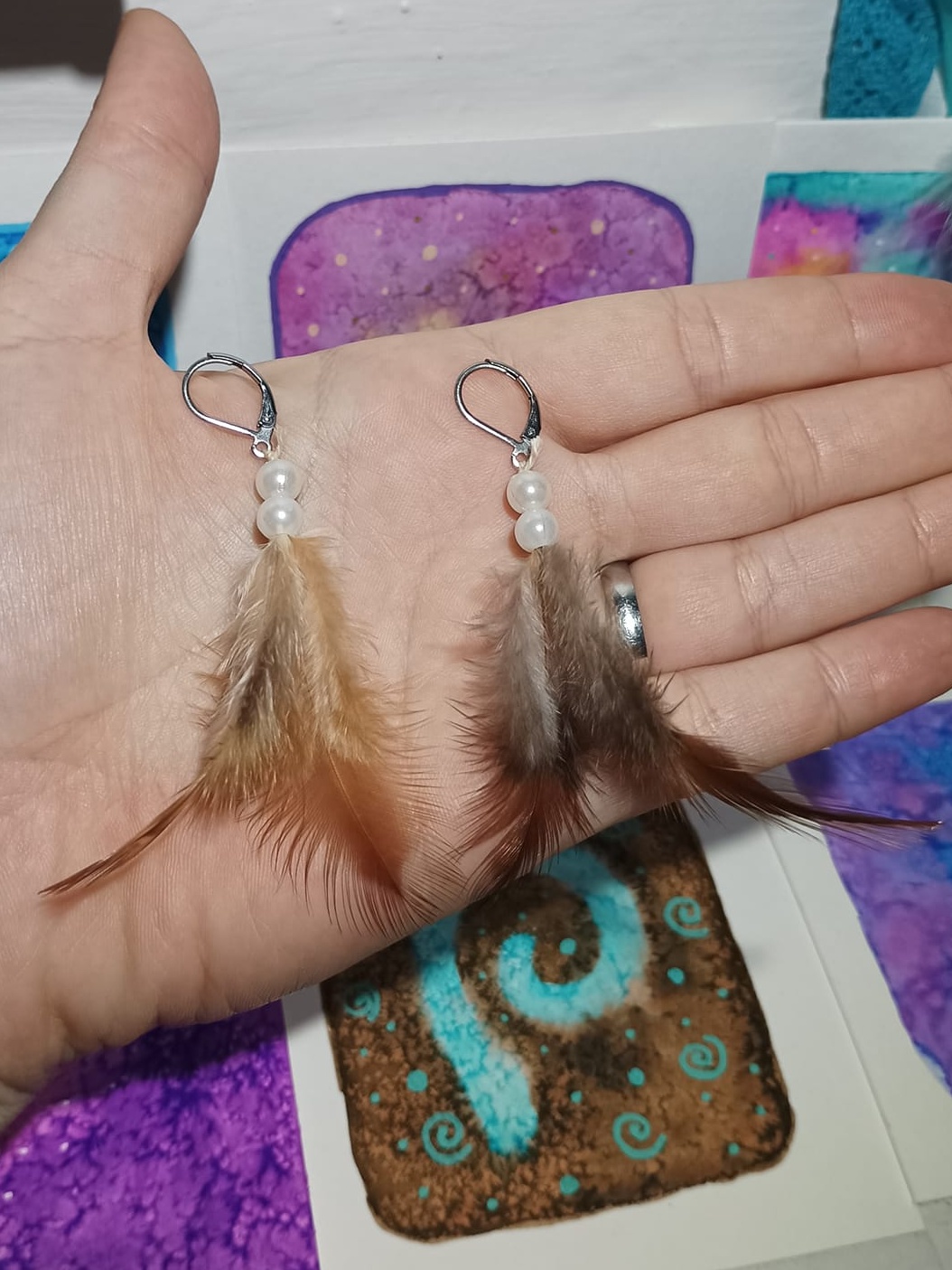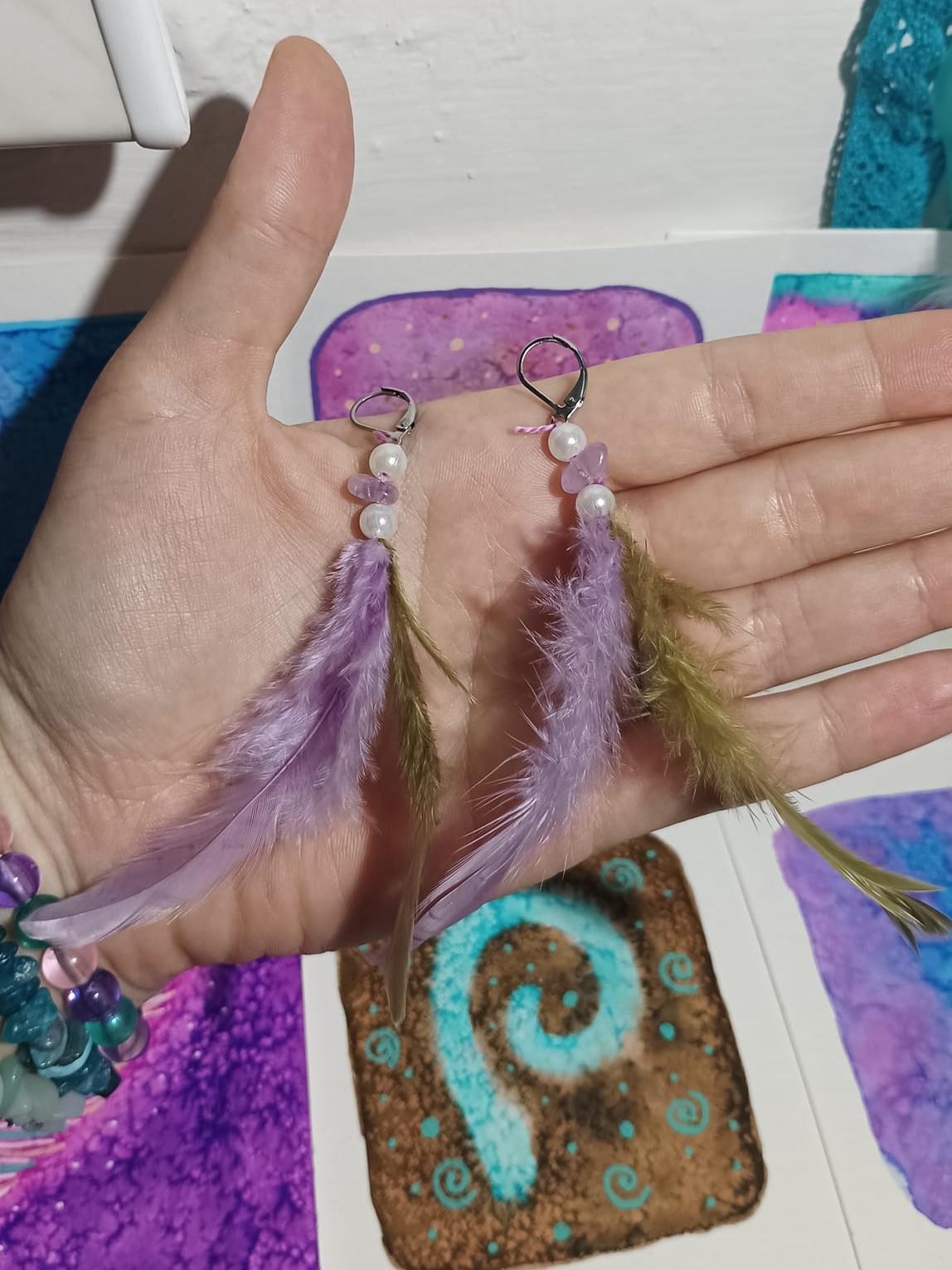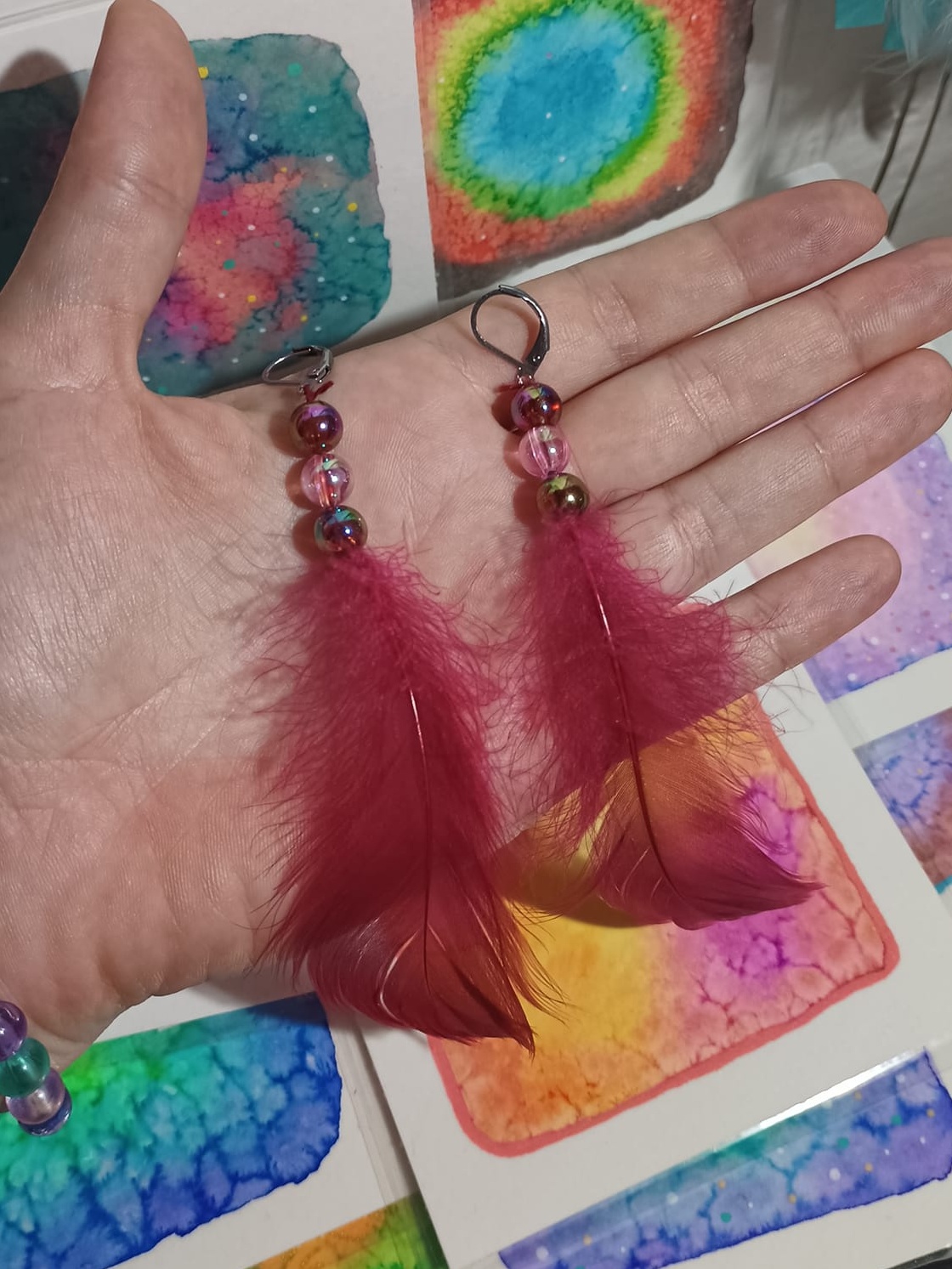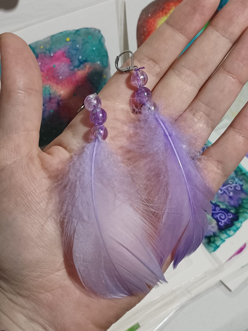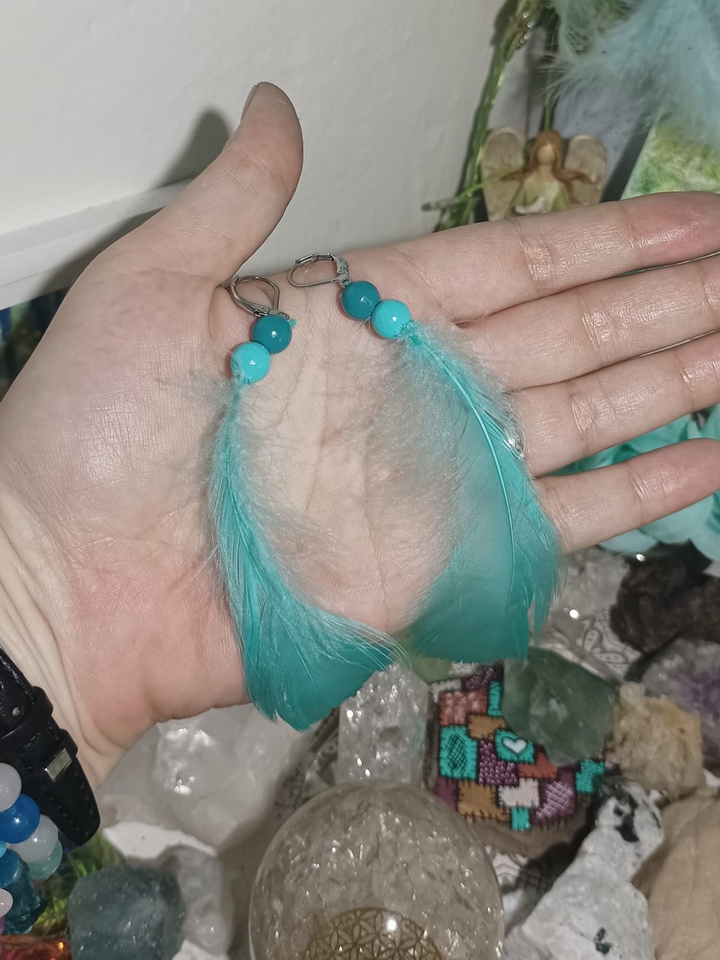 Vlastnoručně vyráběné peříčkové náušnice s korálky a minerály. Vyrobím i na přání, stačí napsat na e-mail nebo facebook.