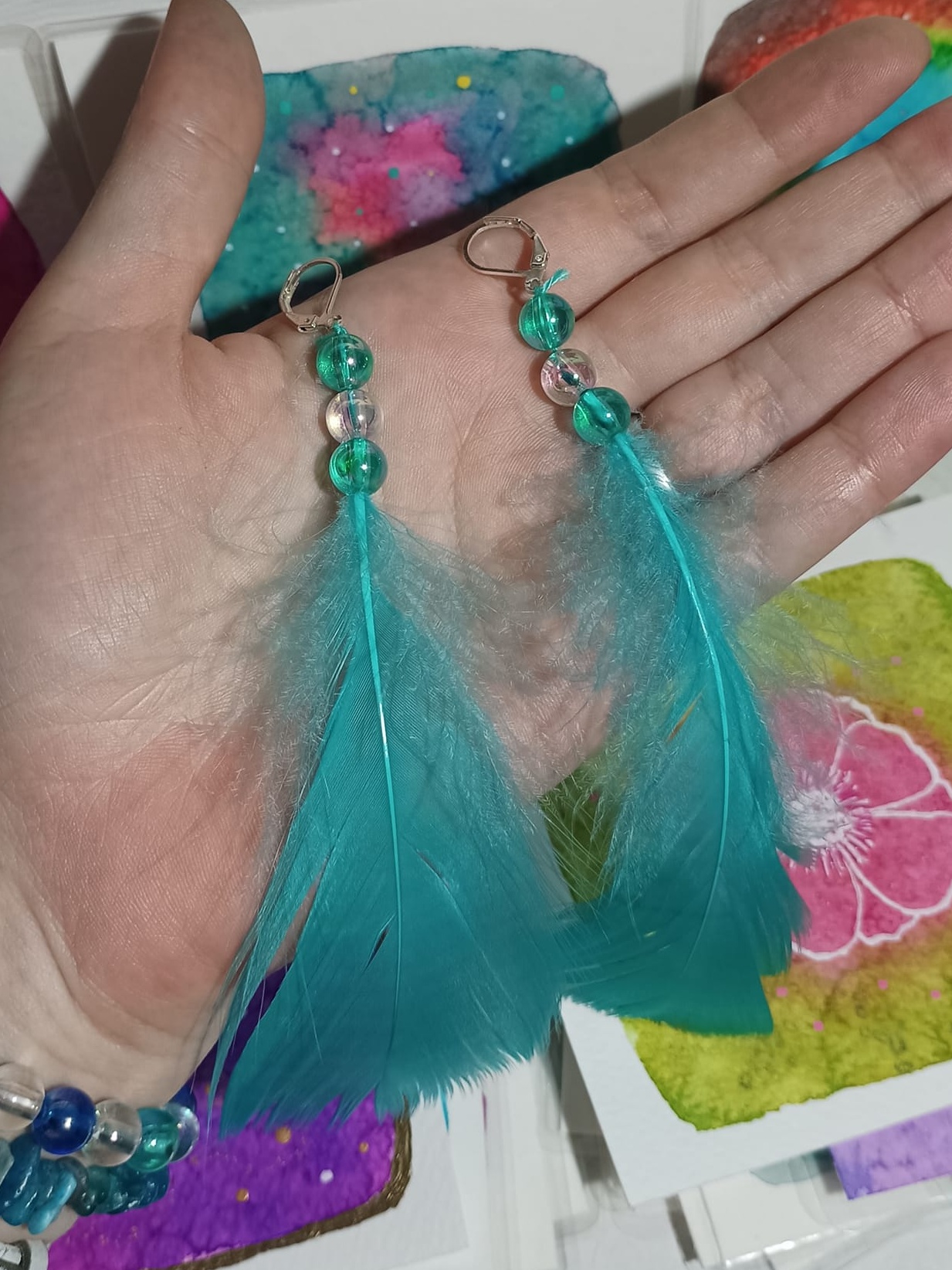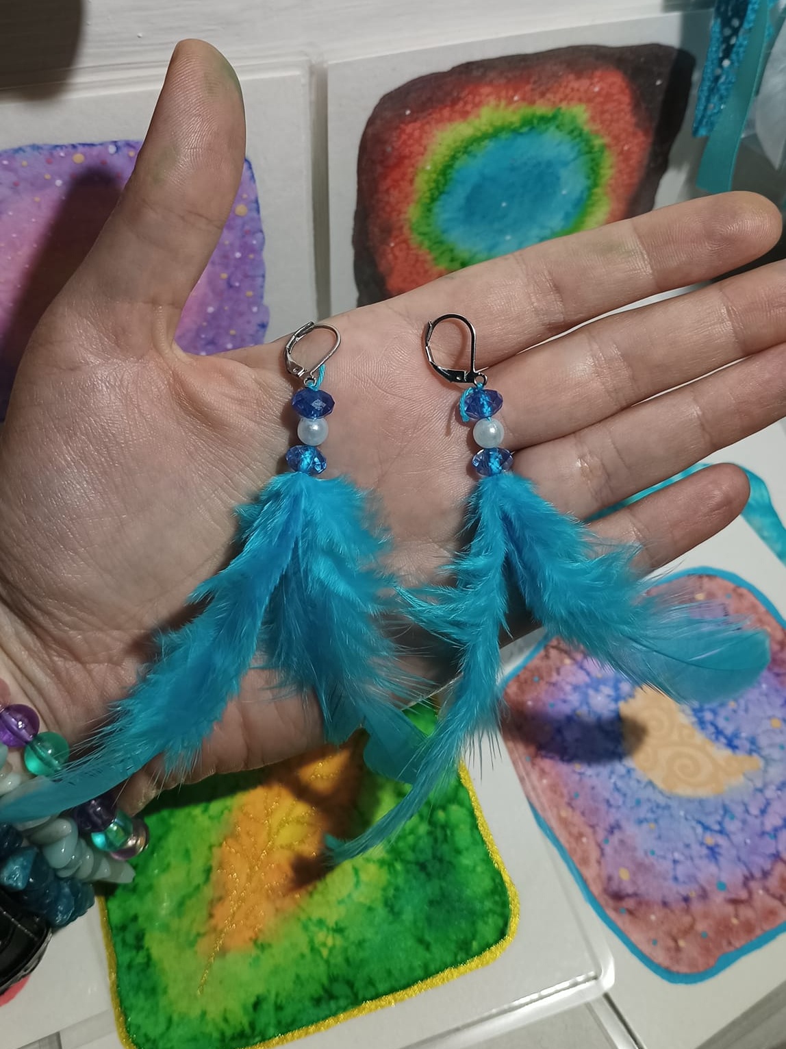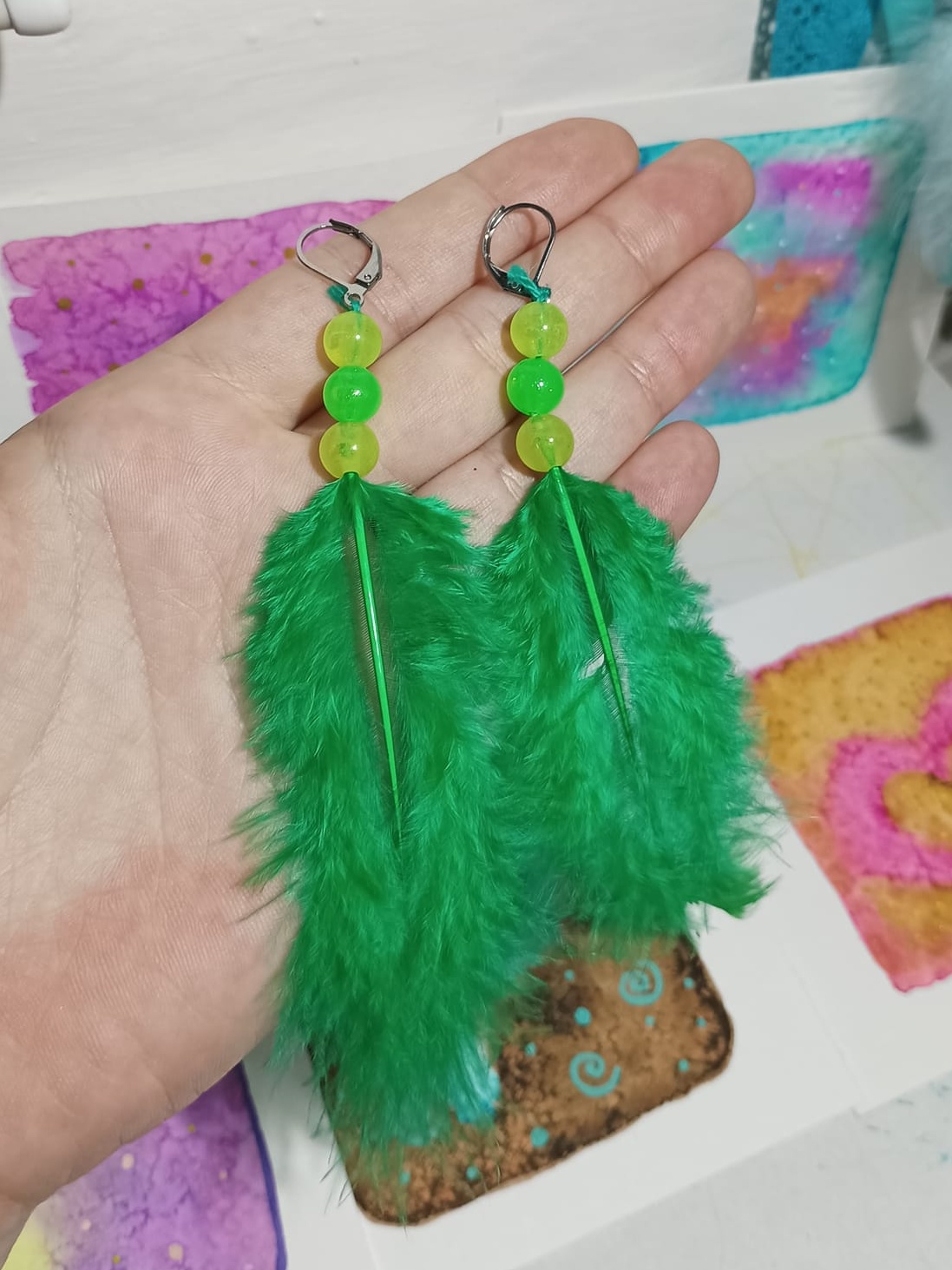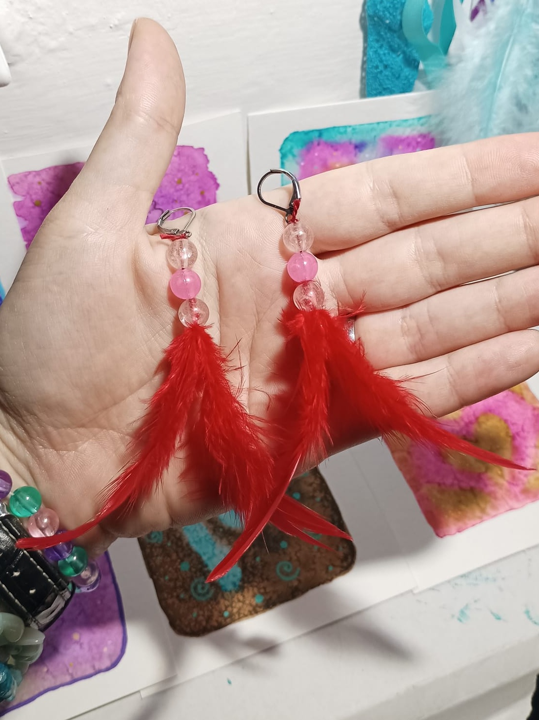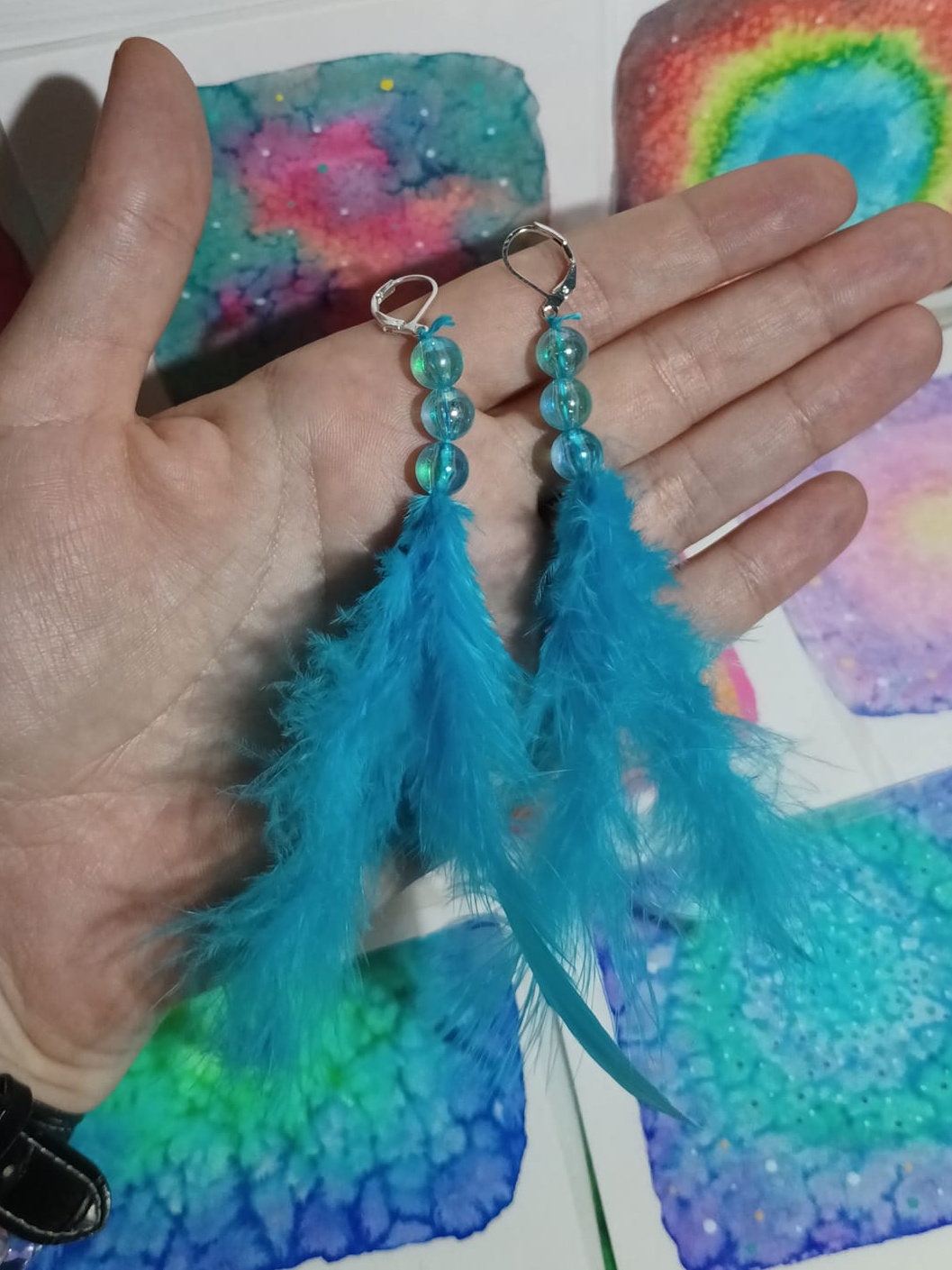 Vlastnoručně vyráběné peříčkové náušnice s korálky a minerály. Vyrobím i na přání, stačí napsat na e-mail nebo facebook.