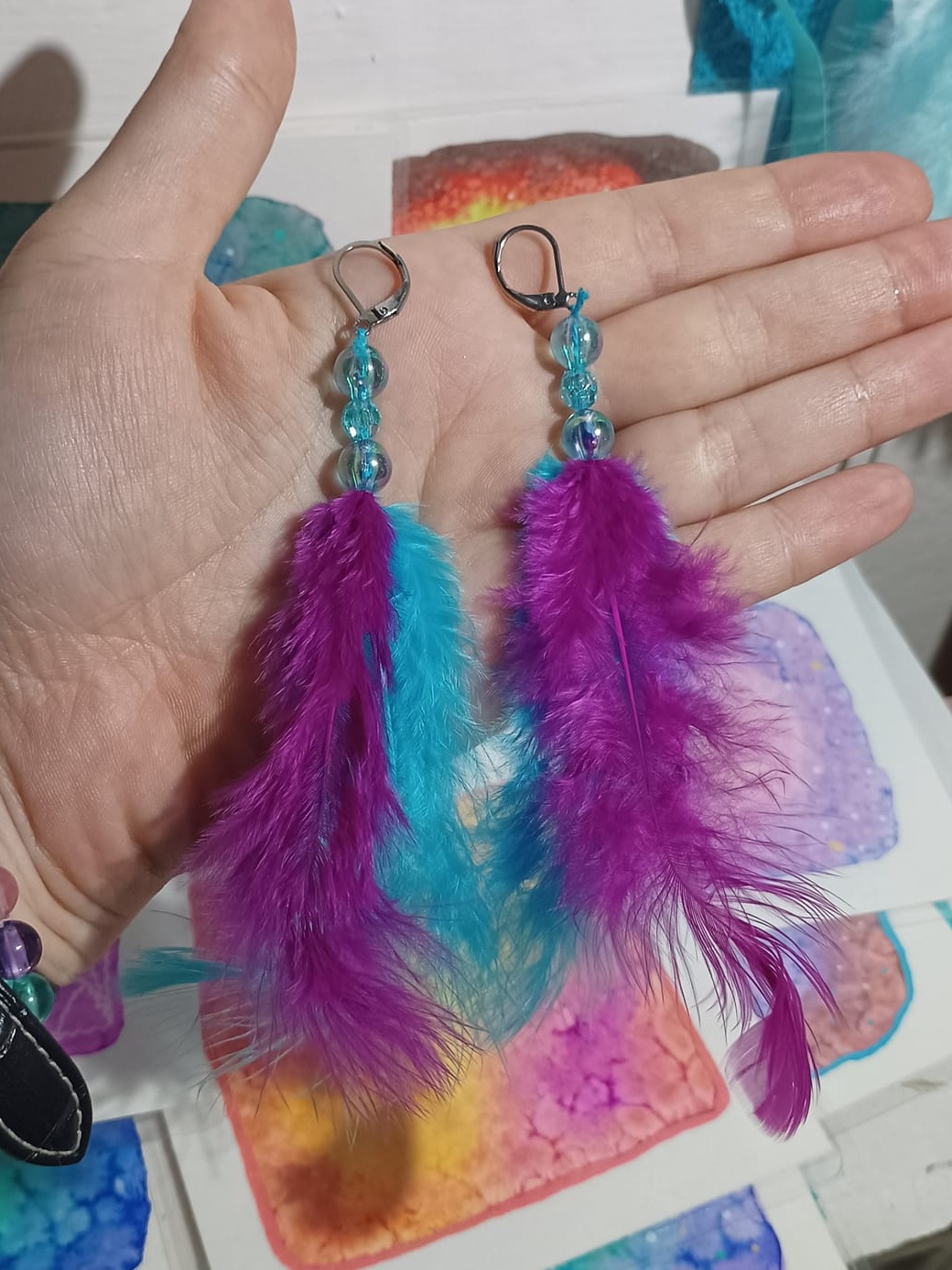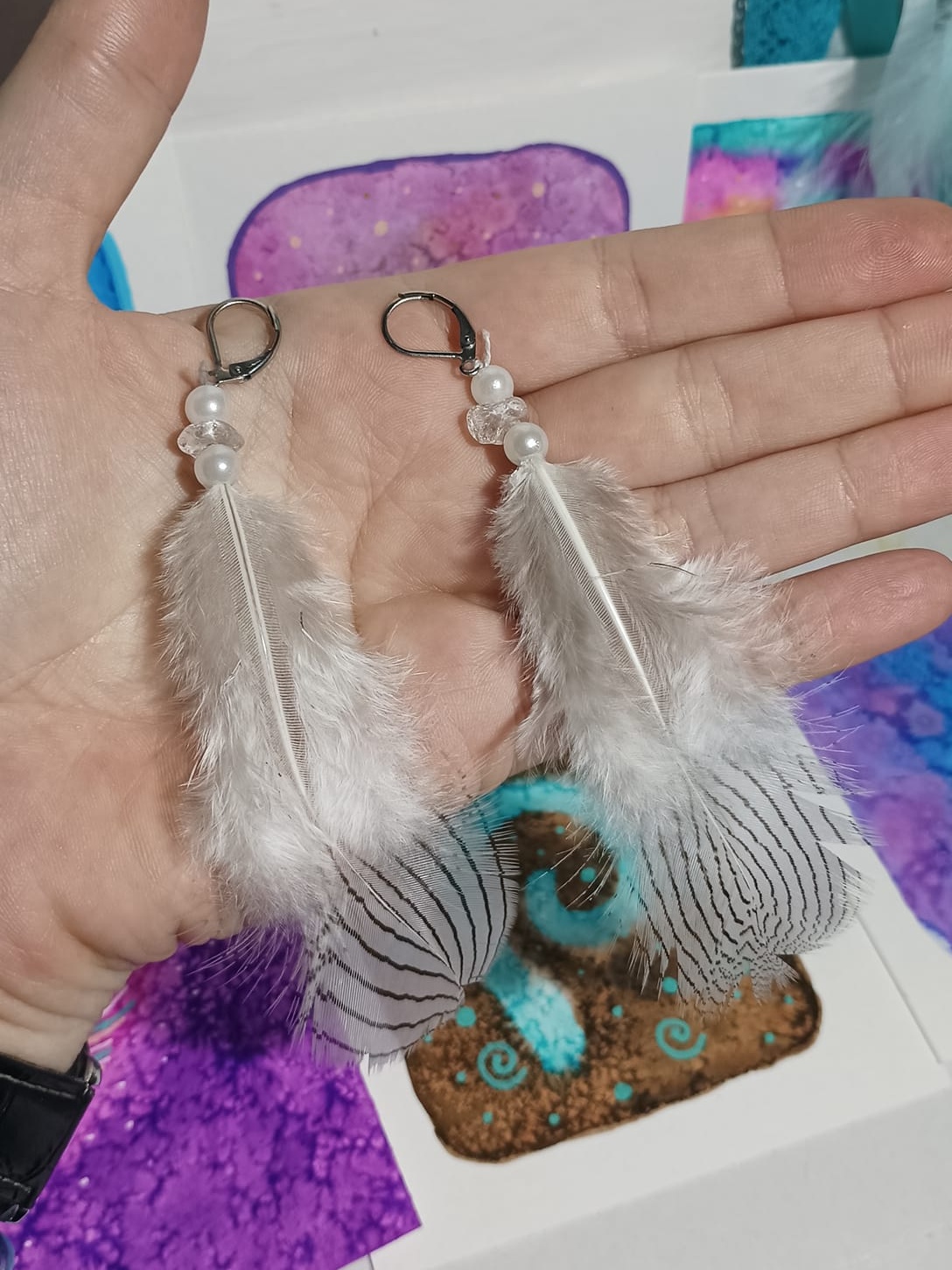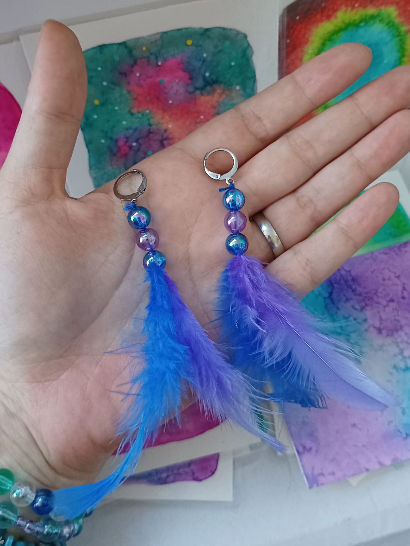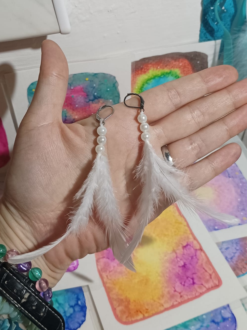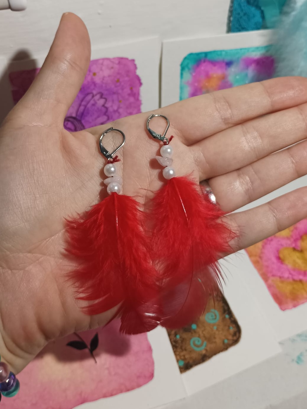 Vlastnoručně vyráběné peříčkové náušnice s korálky a minerály. Vyrobím i na přání, stačí napsat na e-mail nebo facebook.