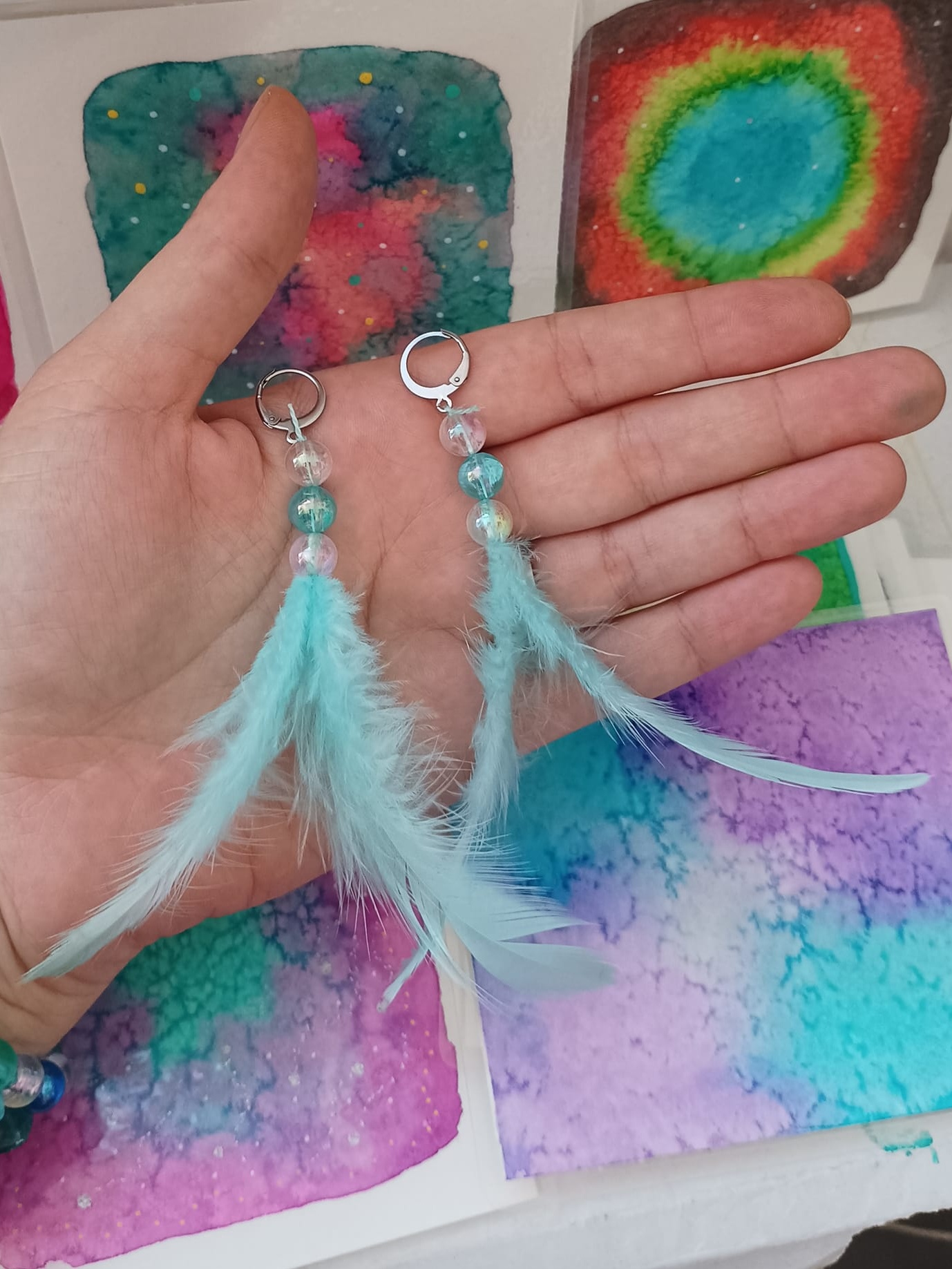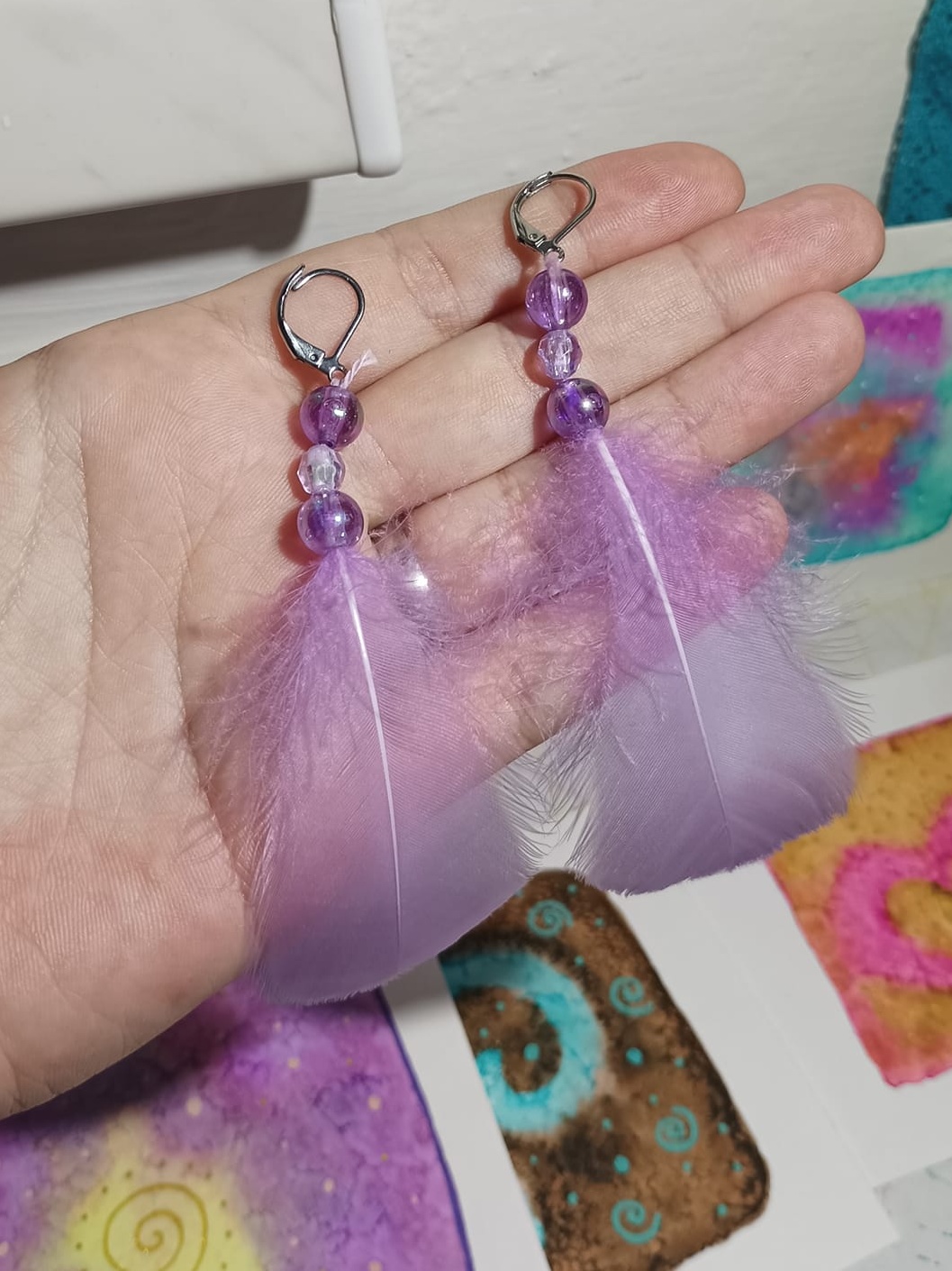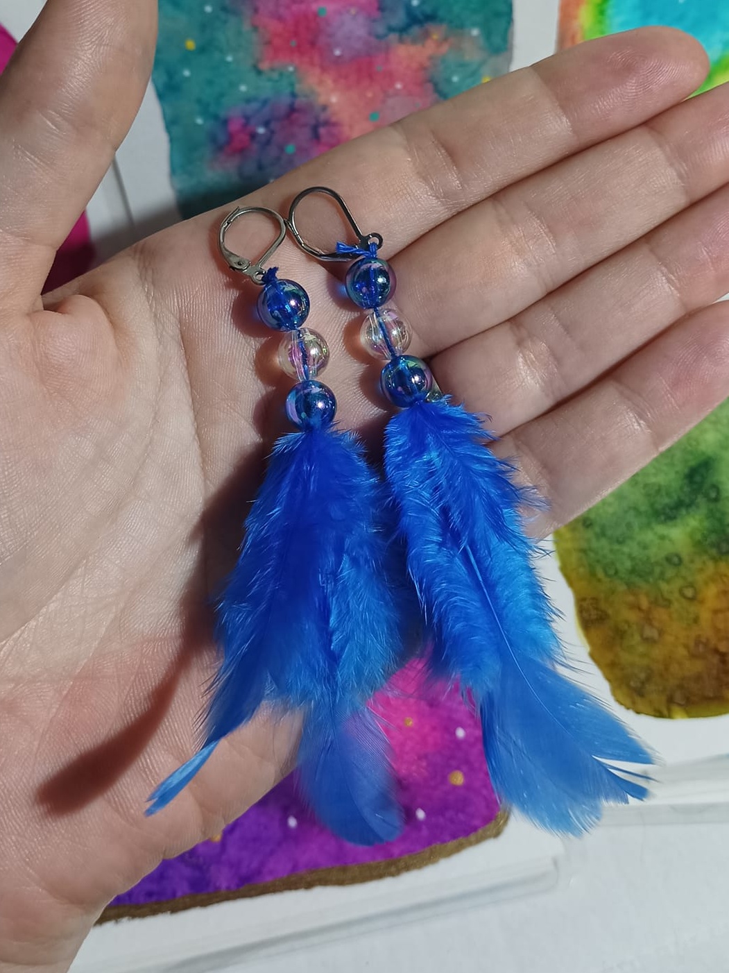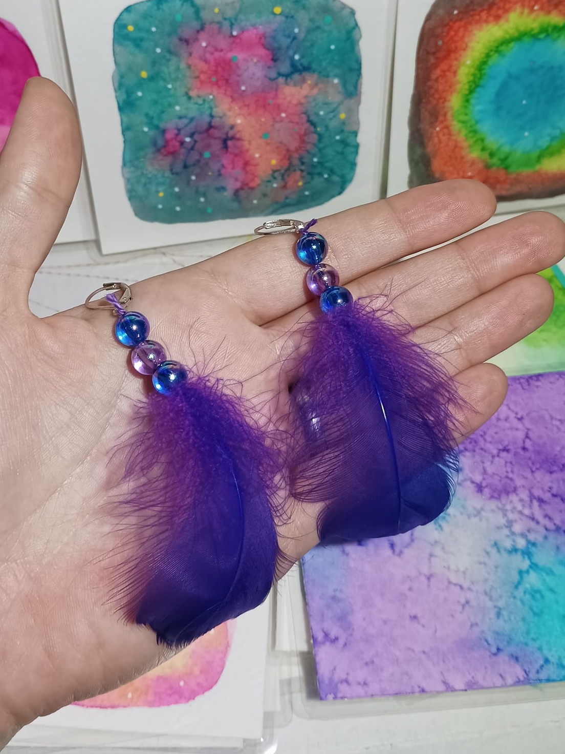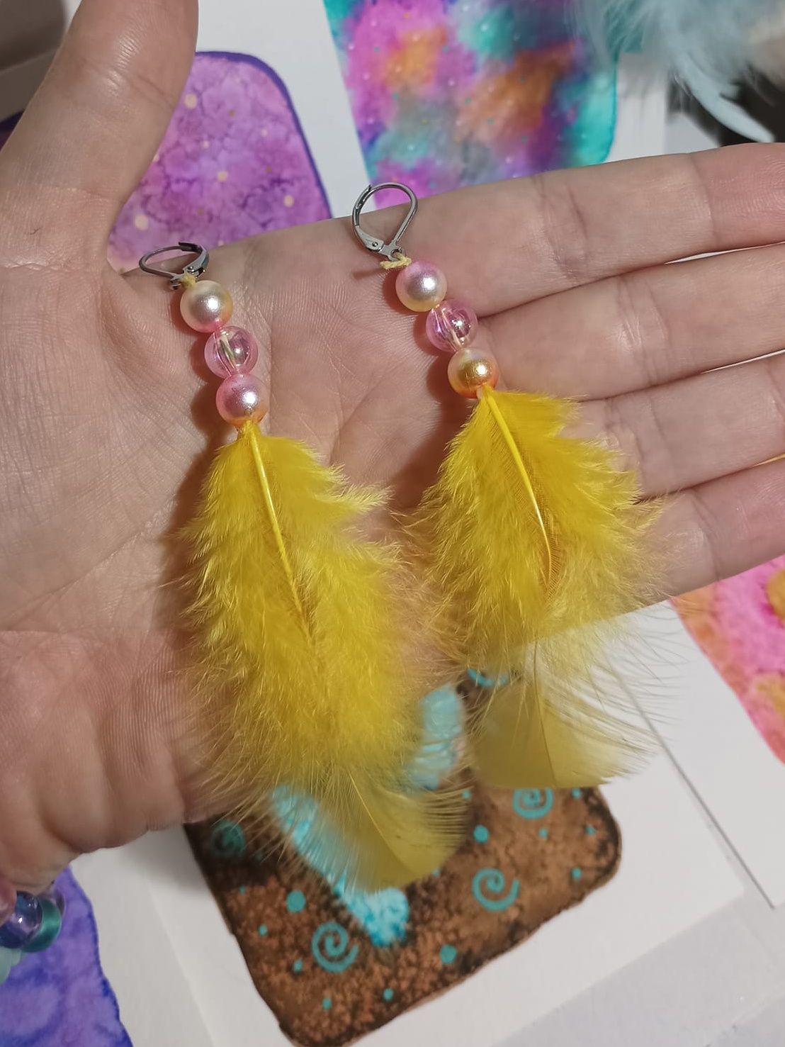 Vlastnoručně vyráběné peříčkové náušnice s korálky a minerály. Vyrobím i na přání, stačí napsat na e-mail nebo facebook.