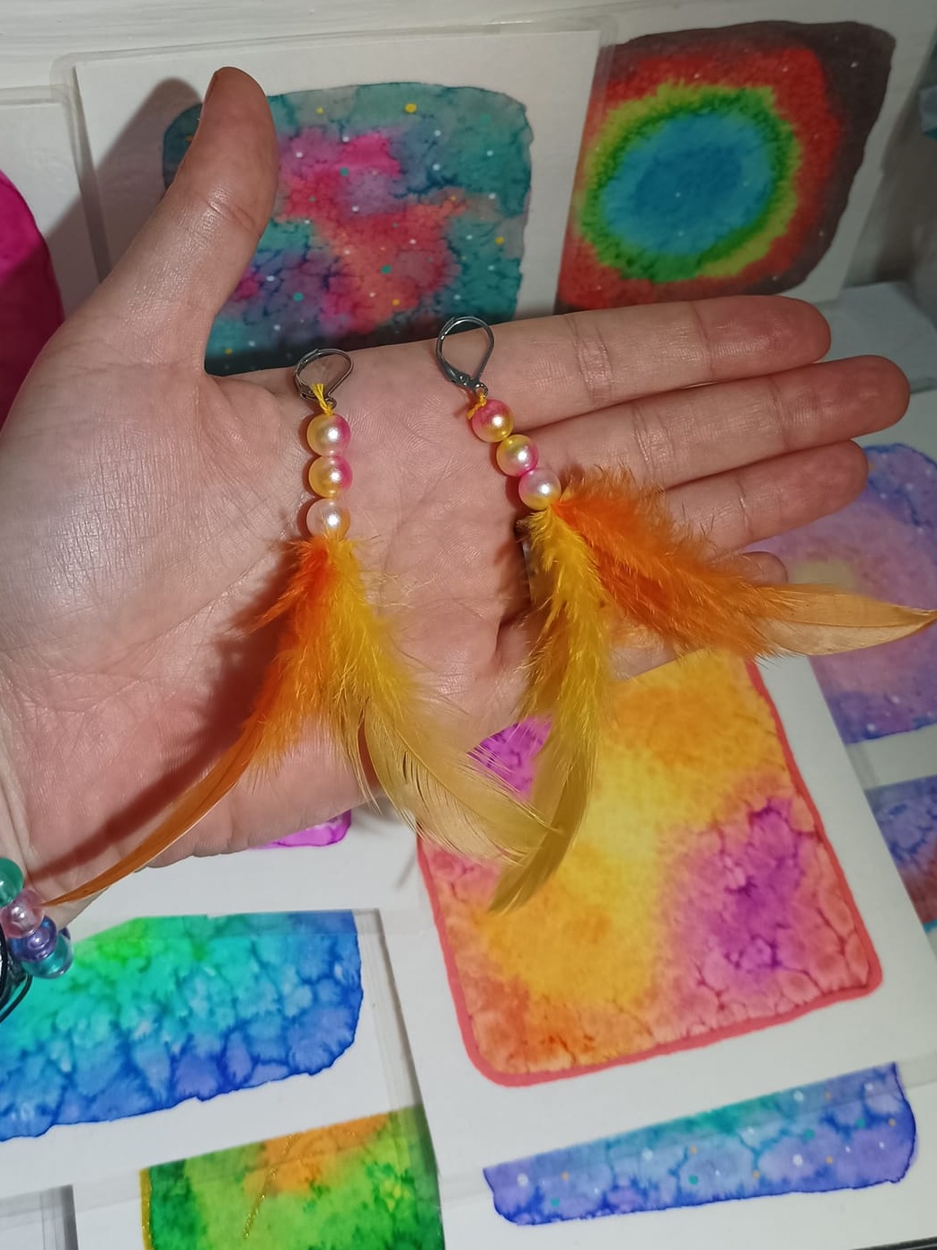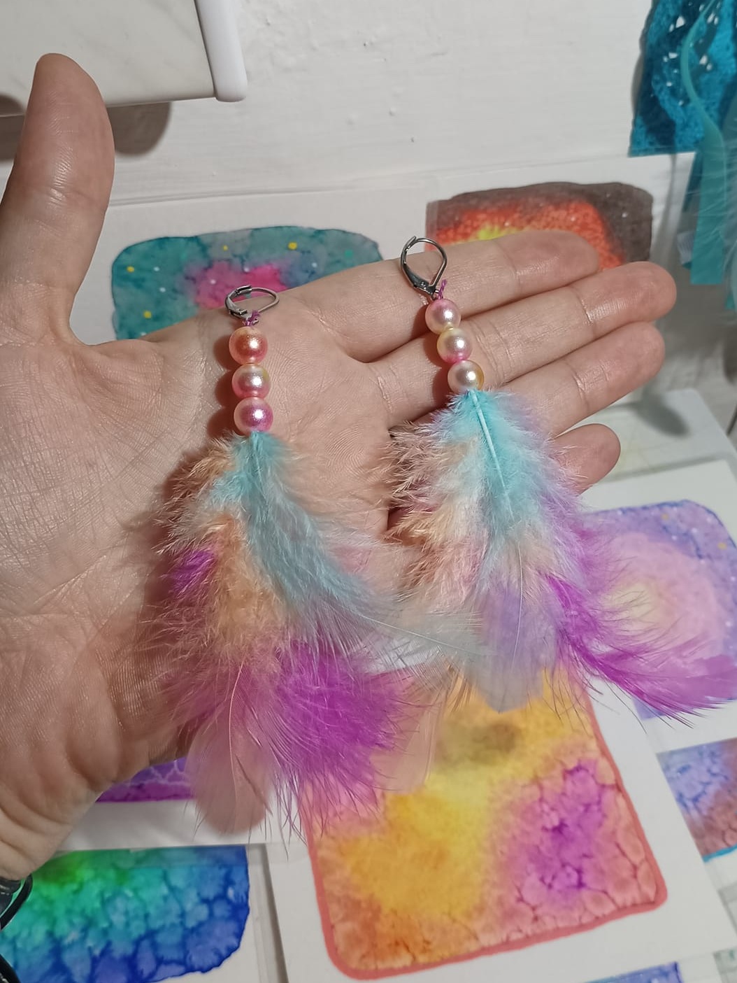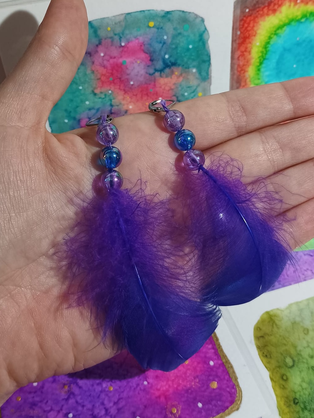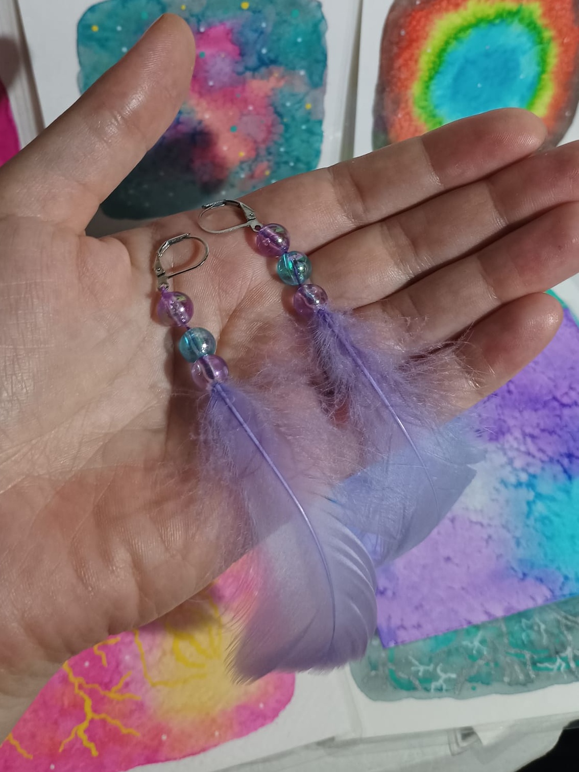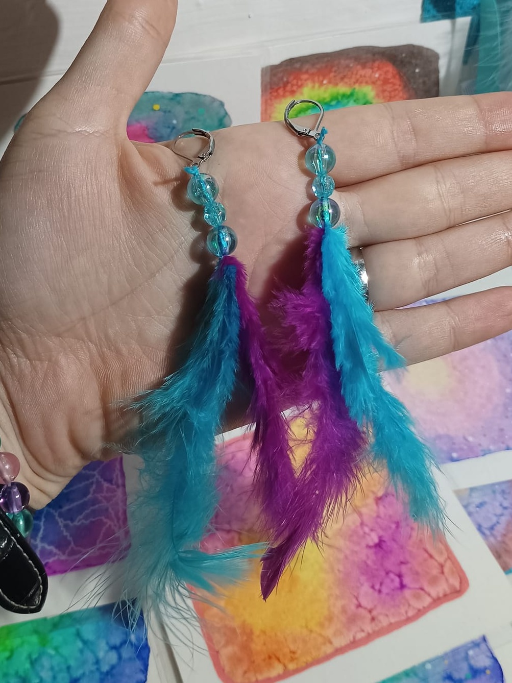 Vlastnoručně vyráběné peříčkové náušnice s korálky a minerály. Vyrobím i na přání, stačí napsat na e-mail nebo facebook.
