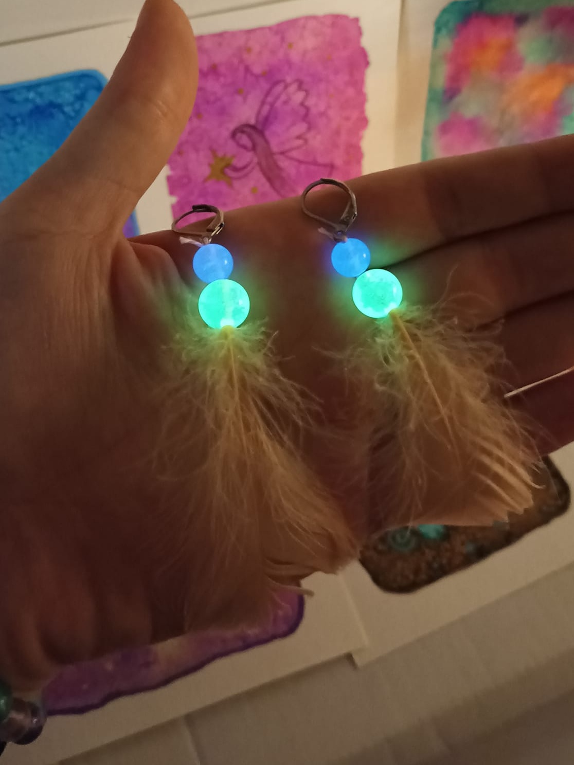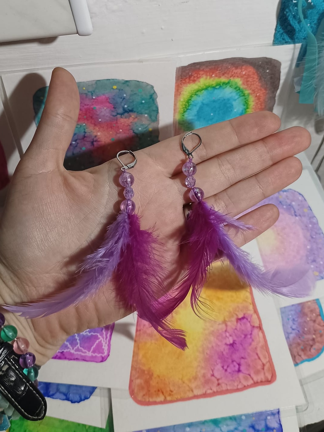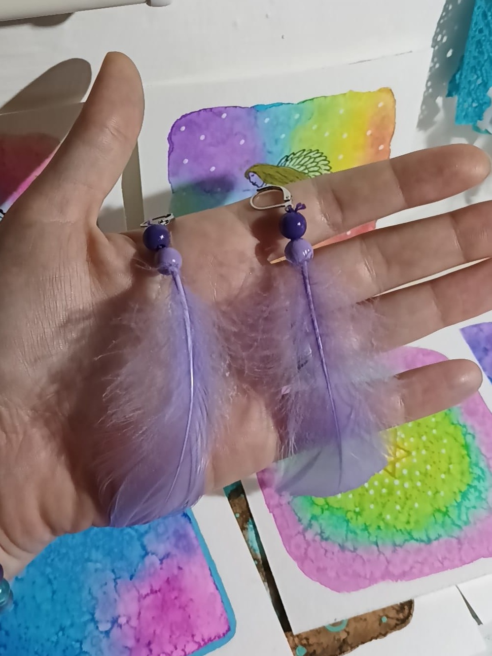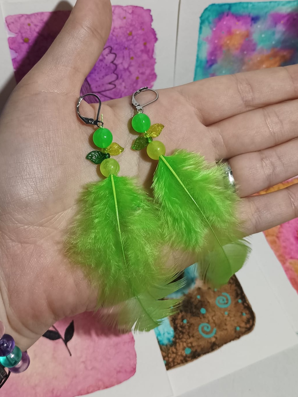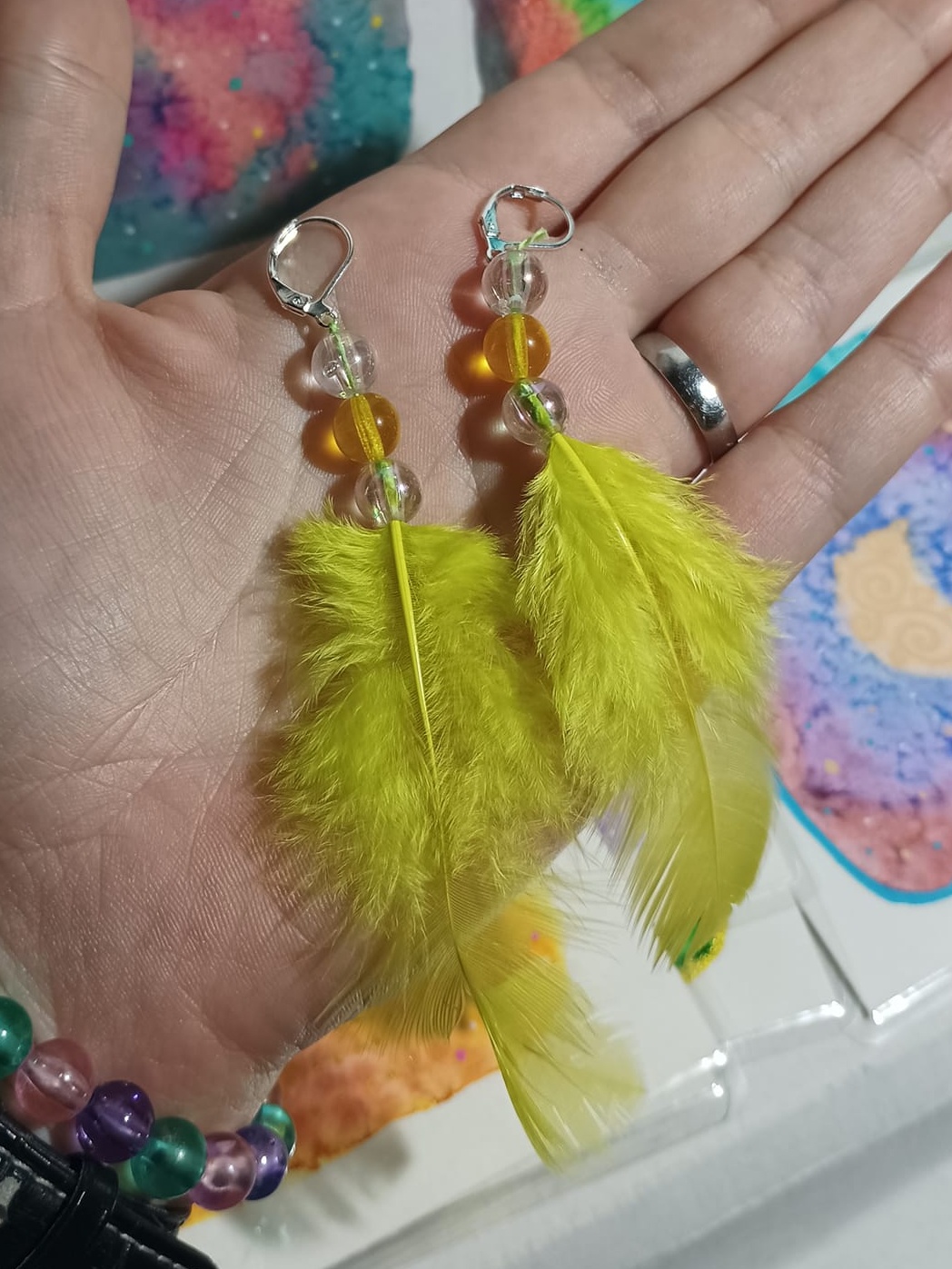 Vlastnoručně vyráběné peříčkové náušnice s korálky a minerály. Vyrobím i na přání, stačí napsat na e-mail nebo facebook.