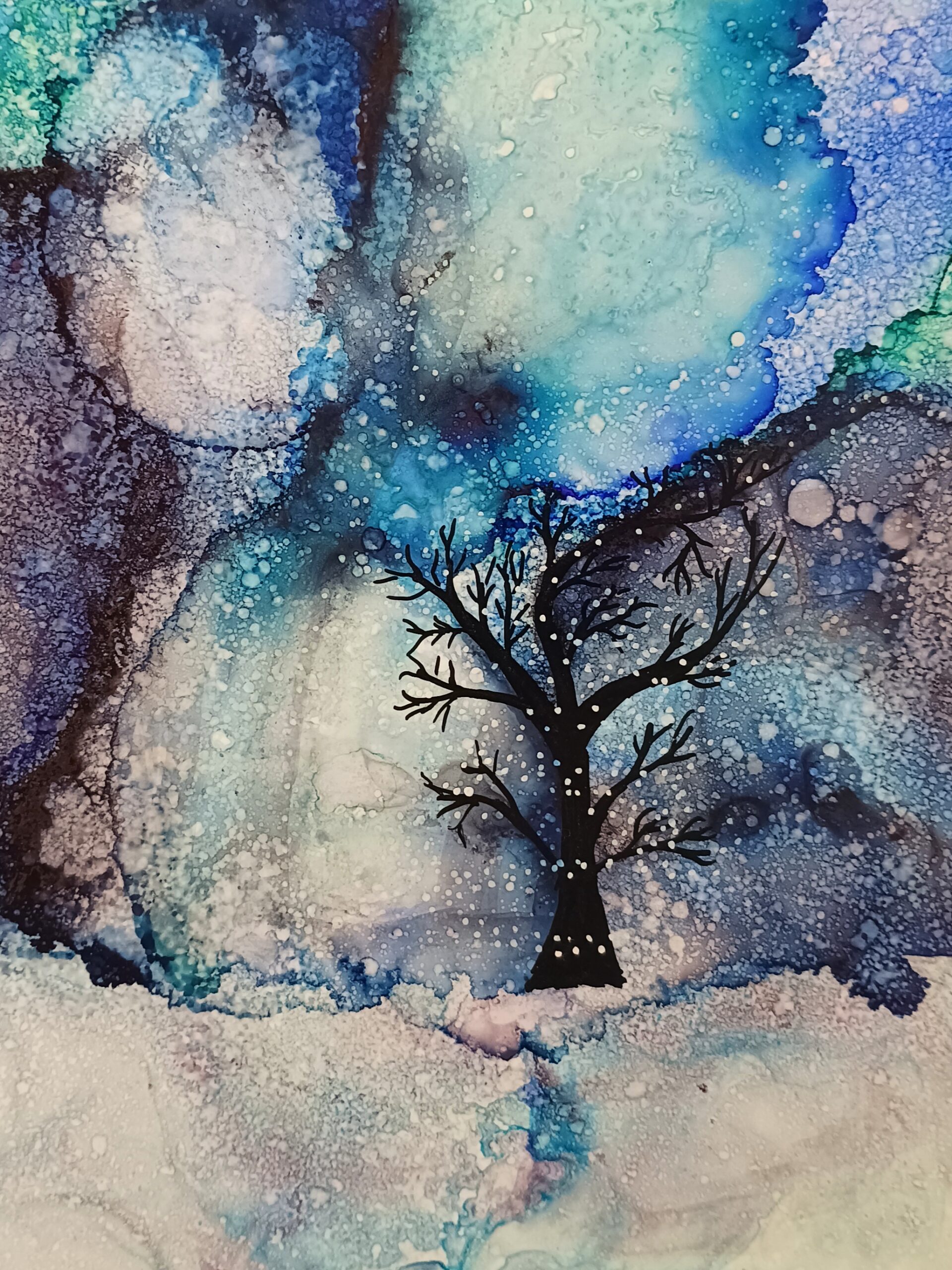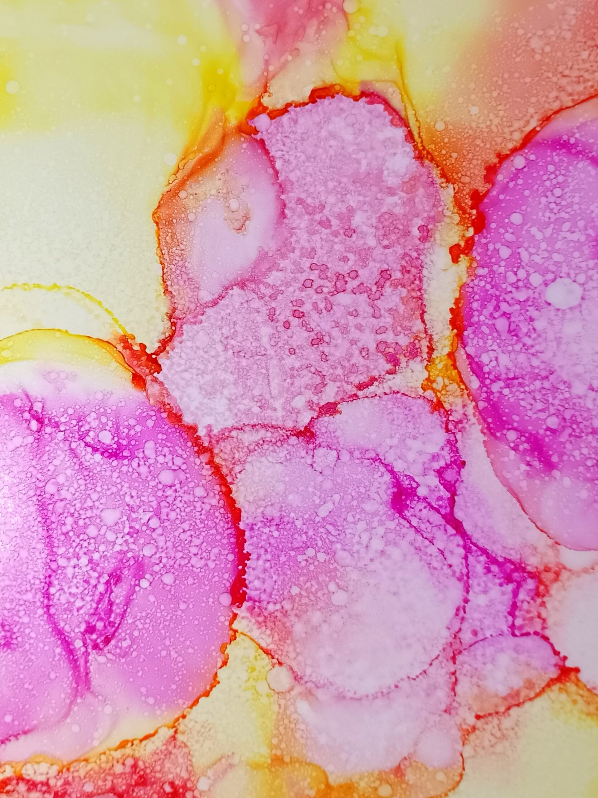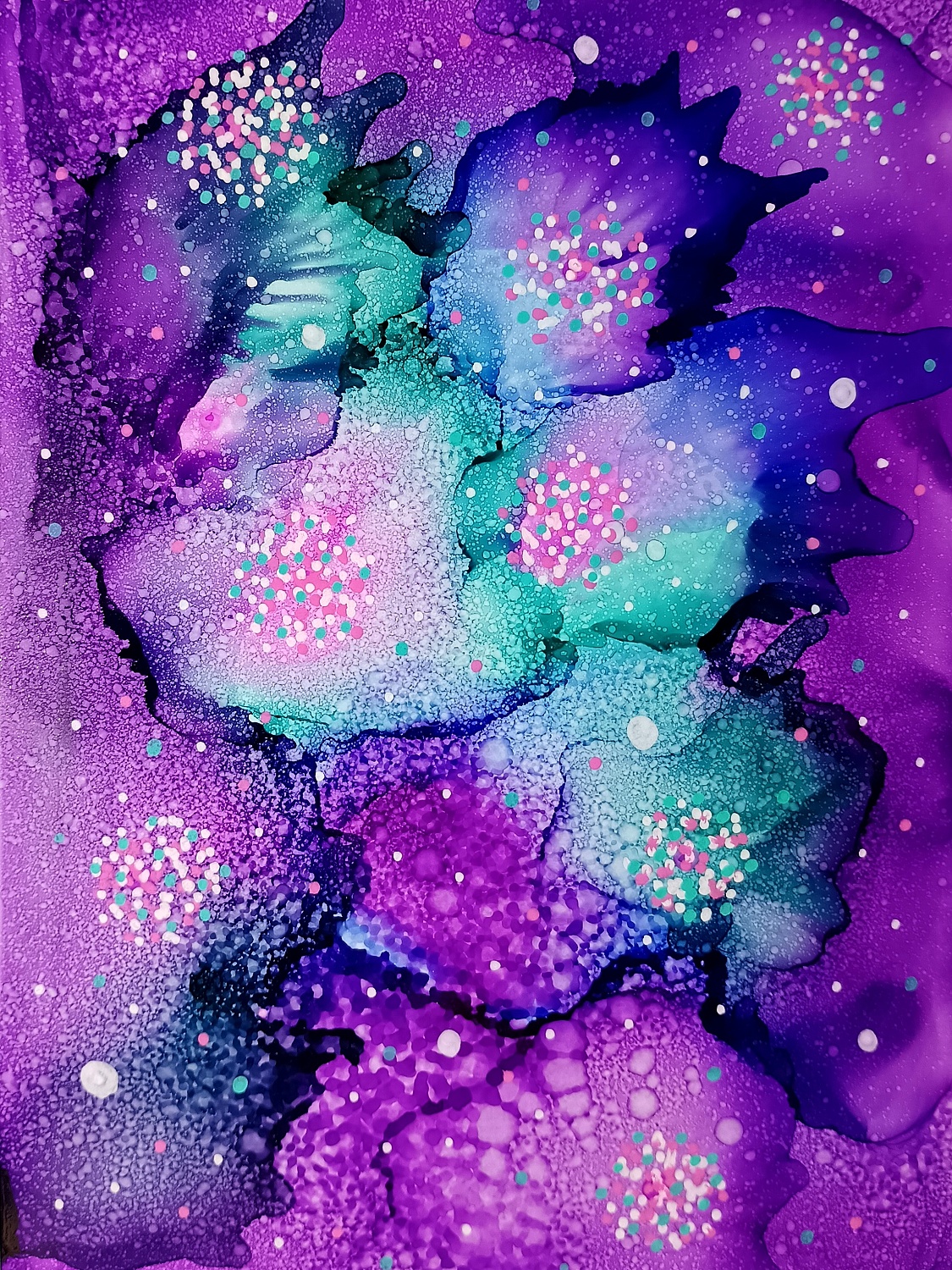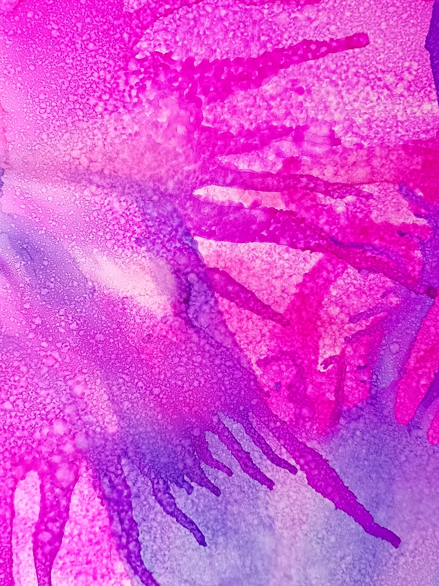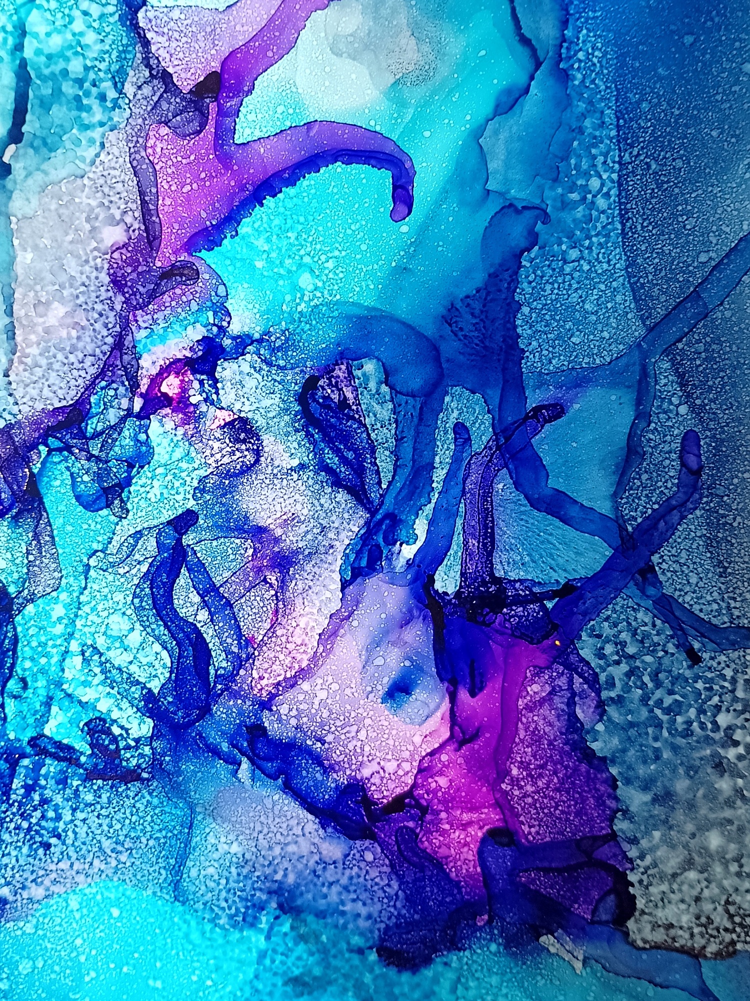 Obrázky tvořené pomocí alkoholových inkoustů, isopropylalkoholu a fénu, popřípadě brčka. Některé jsou dokreslené akrylovými fixy. Intuitivní tvorba, druh automatické kresby… Jsou ve formátu A5 na syntetickém papíru. Tyto malby dále fotím a používám k tisku na šperky, hrníčky, trička, polštáře, nebo z nich nechávám natisknout velkoformátové obrazy na plátno. Pokud o některý obrázek (nebo produkt z něj) máte zájem, stačí se ozvat na e-mail nebo napsat na facebook…