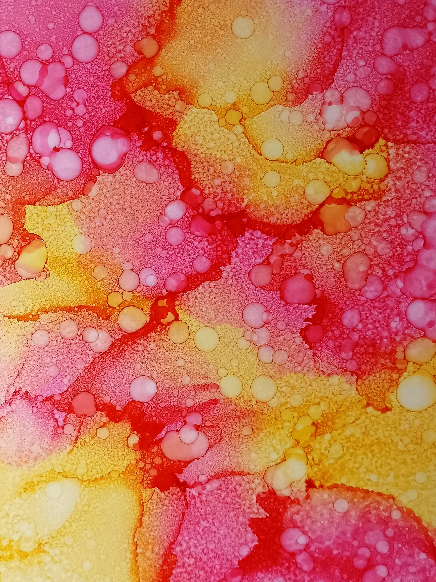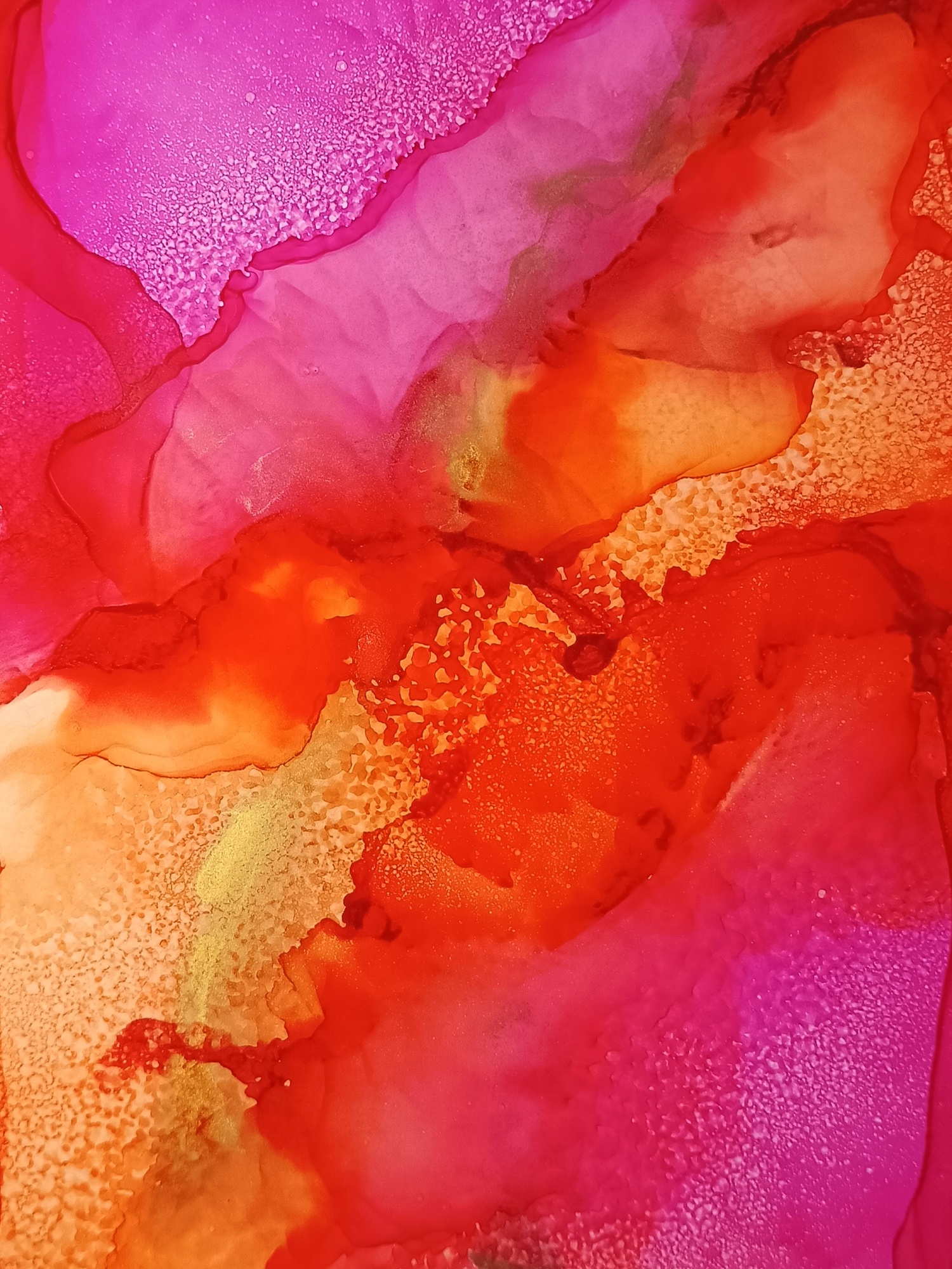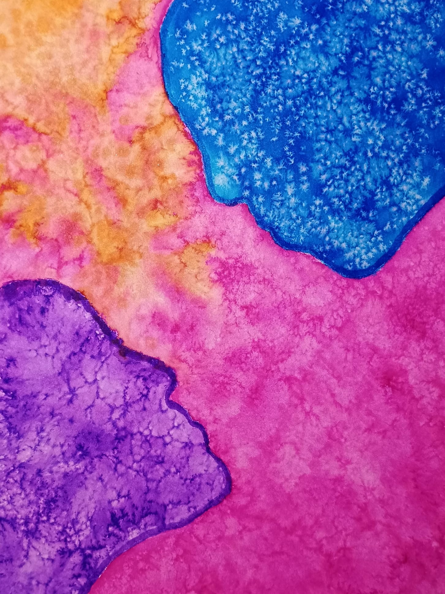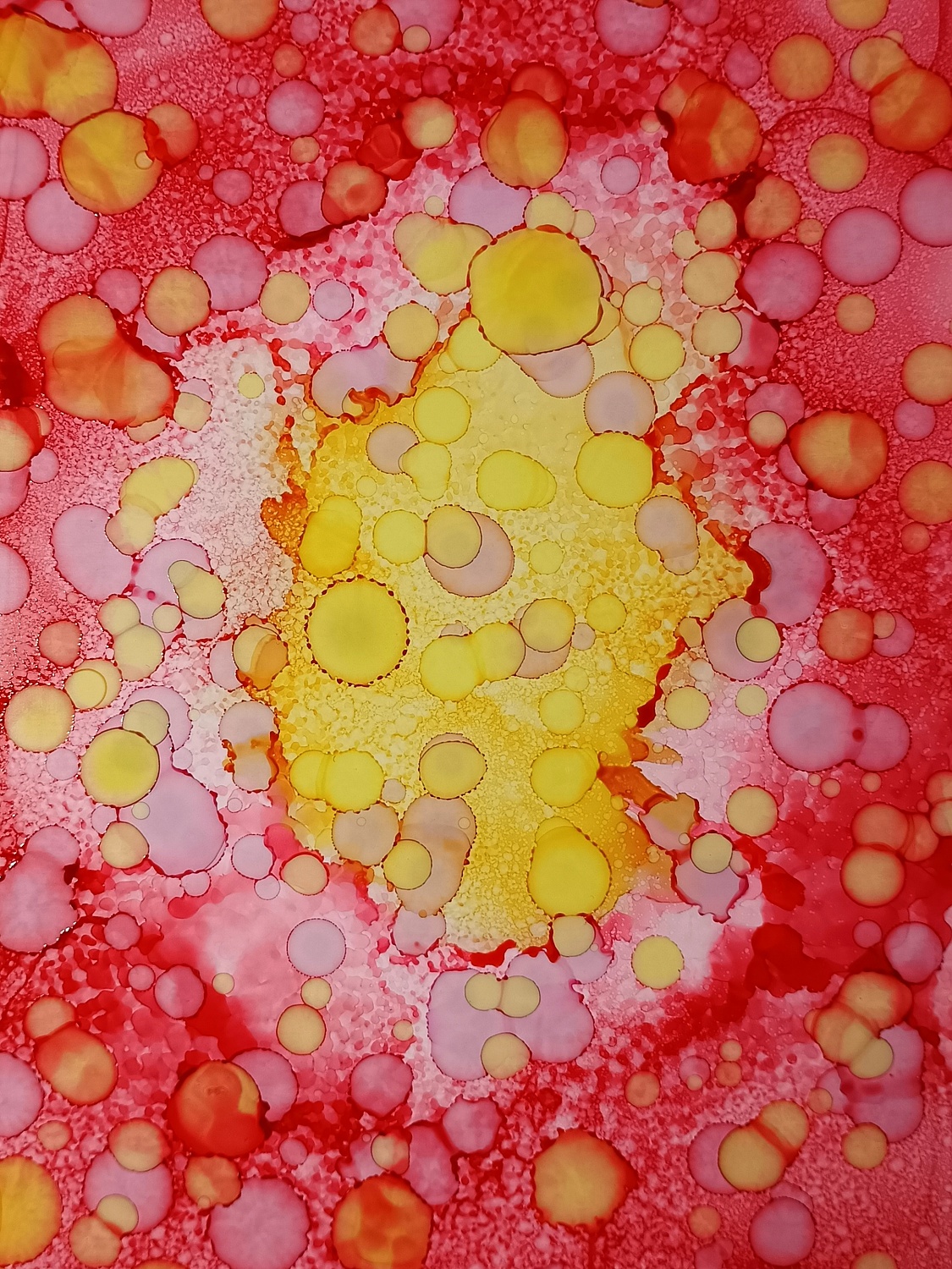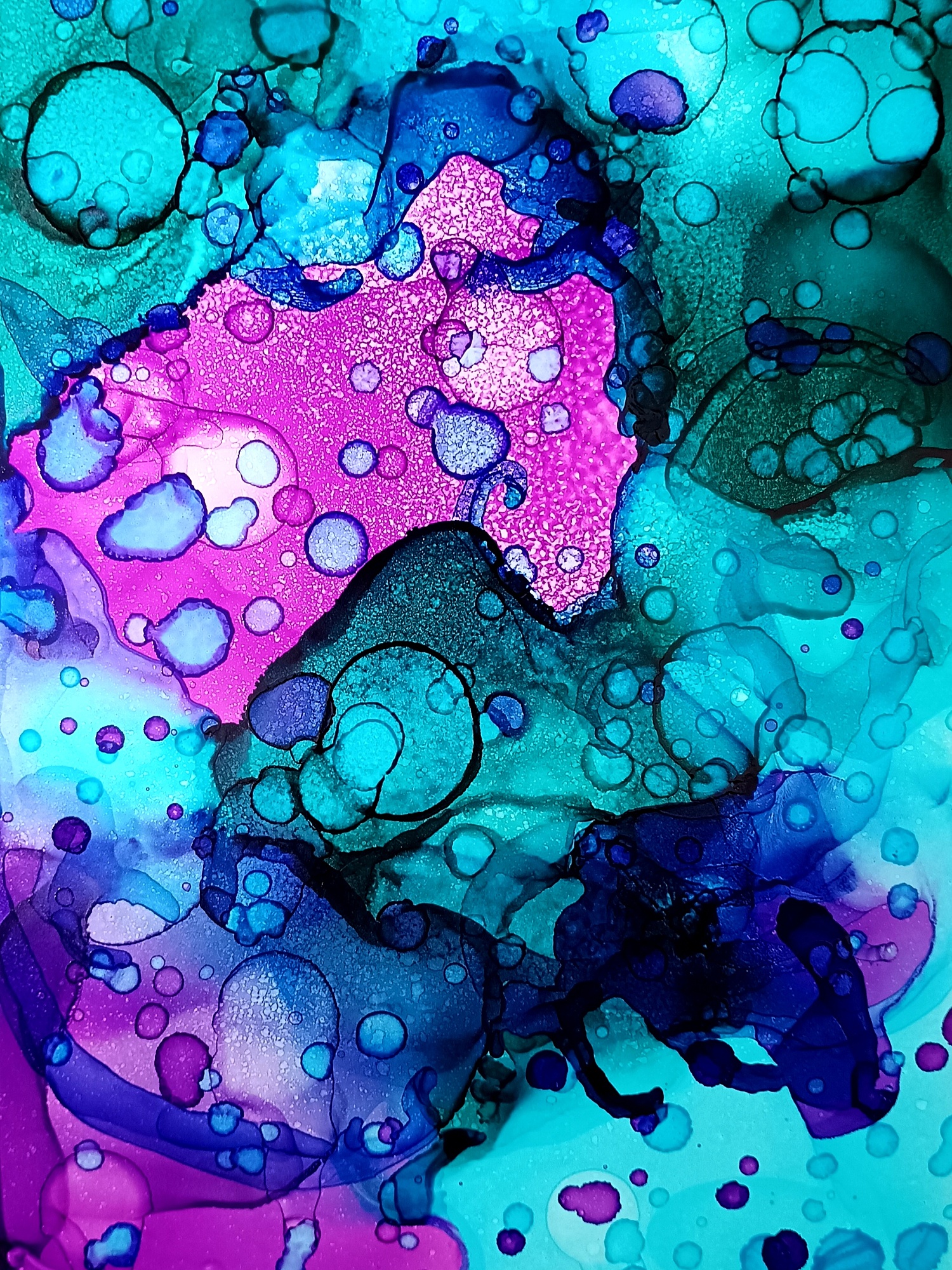 Obrázky tvořené pomocí alkoholových inkoustů, isopropylalkoholu a fénu, popřípadě brčka. Některé jsou dokreslené akrylovými fixy. Intuitivní tvorba, druh automatické kresby… Jsou ve formátu A5 na syntetickém papíru. Tyto malby dále fotím a používám k tisku na šperky, hrníčky, trička, polštáře, nebo z nich nechávám natisknout velkoformátové obrazy na plátno. Pokud o některý obrázek (nebo produkt z něj) máte zájem, stačí se ozvat na e-mail nebo napsat na facebook…