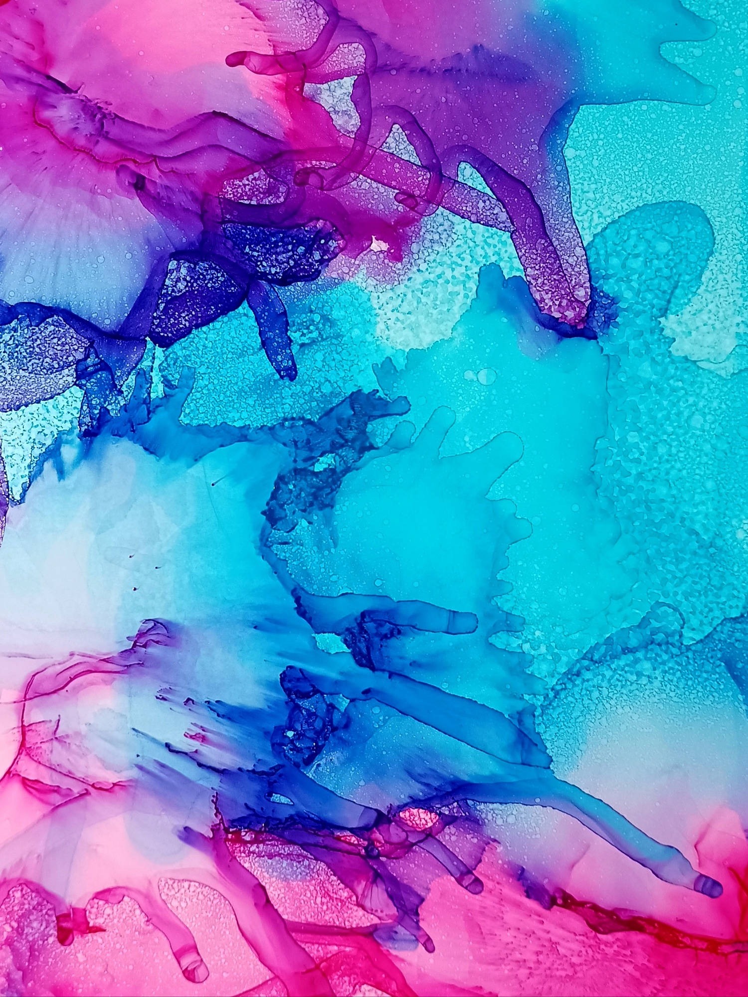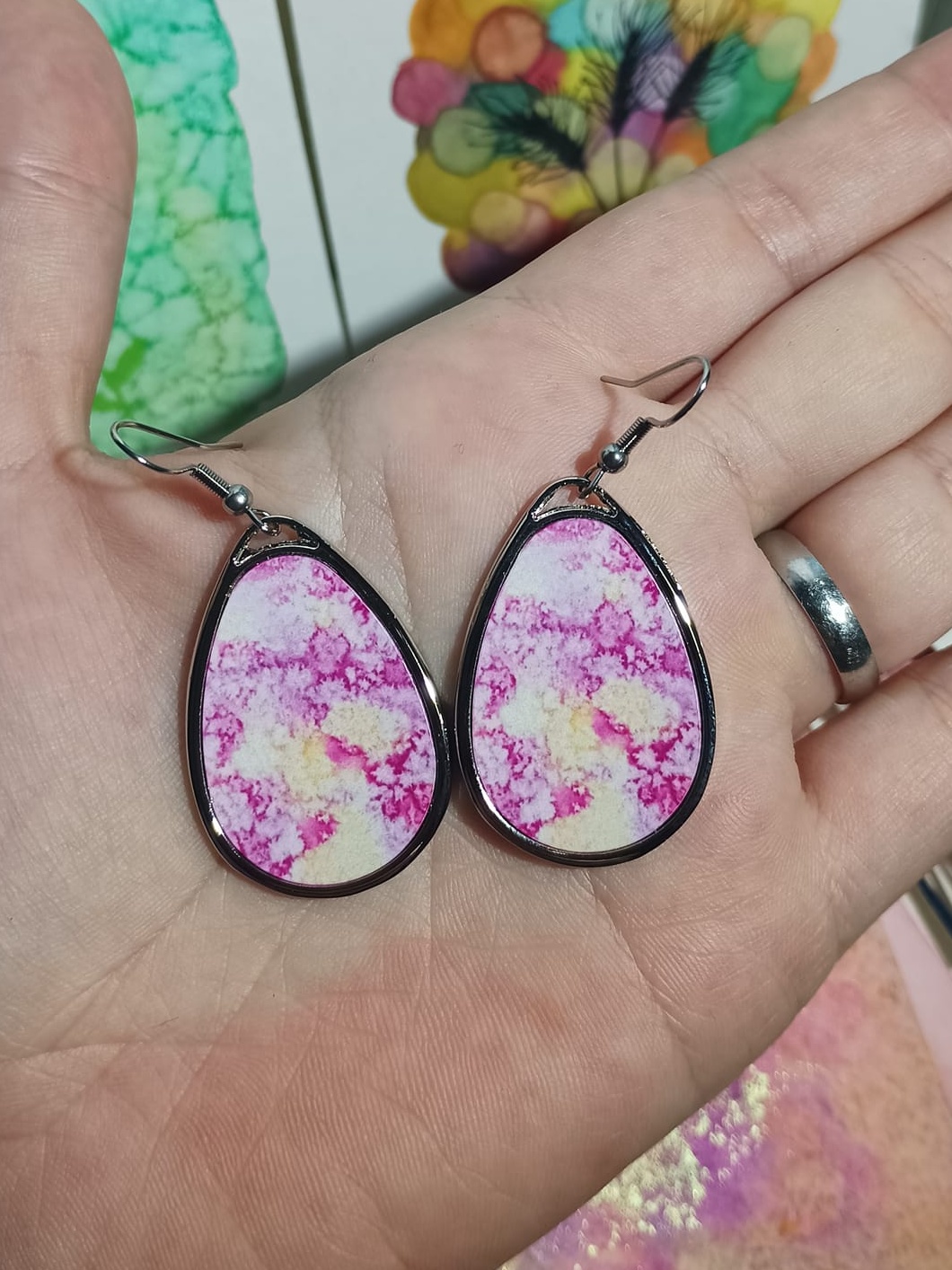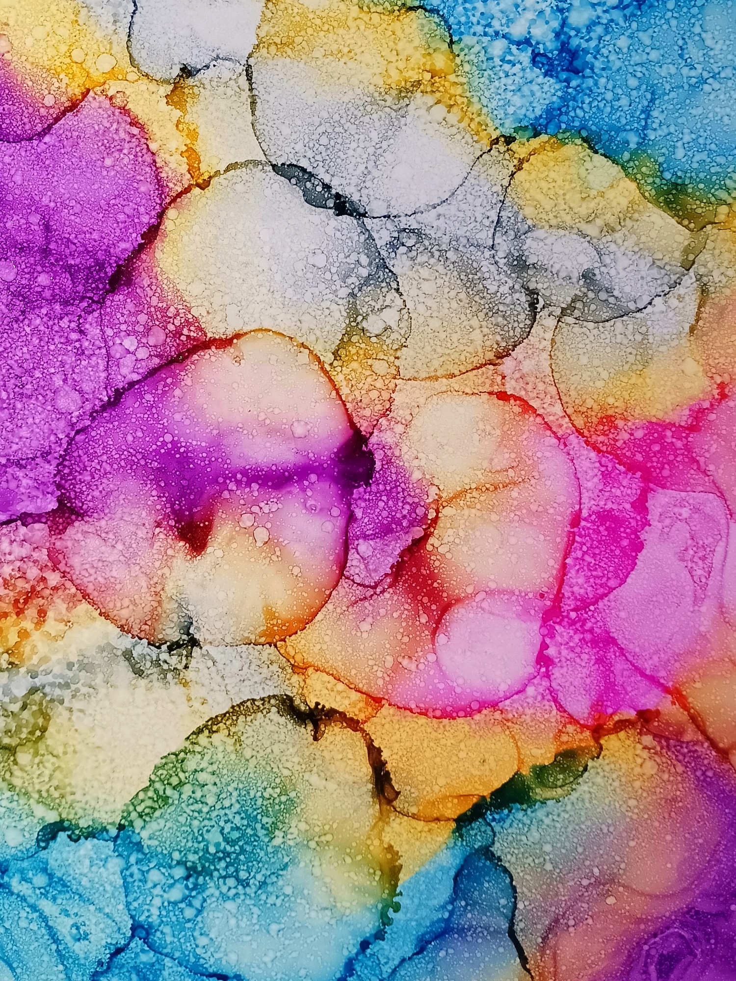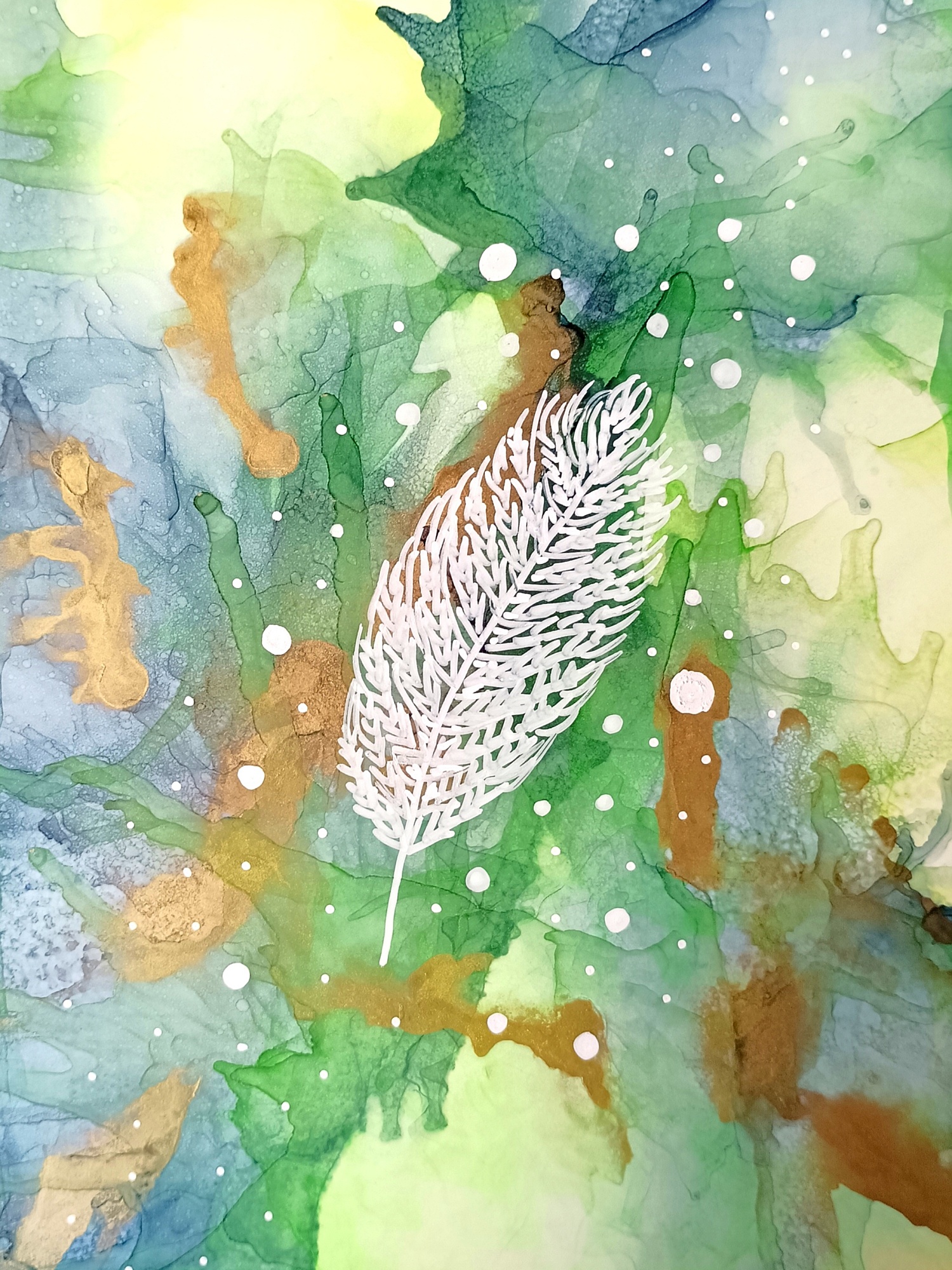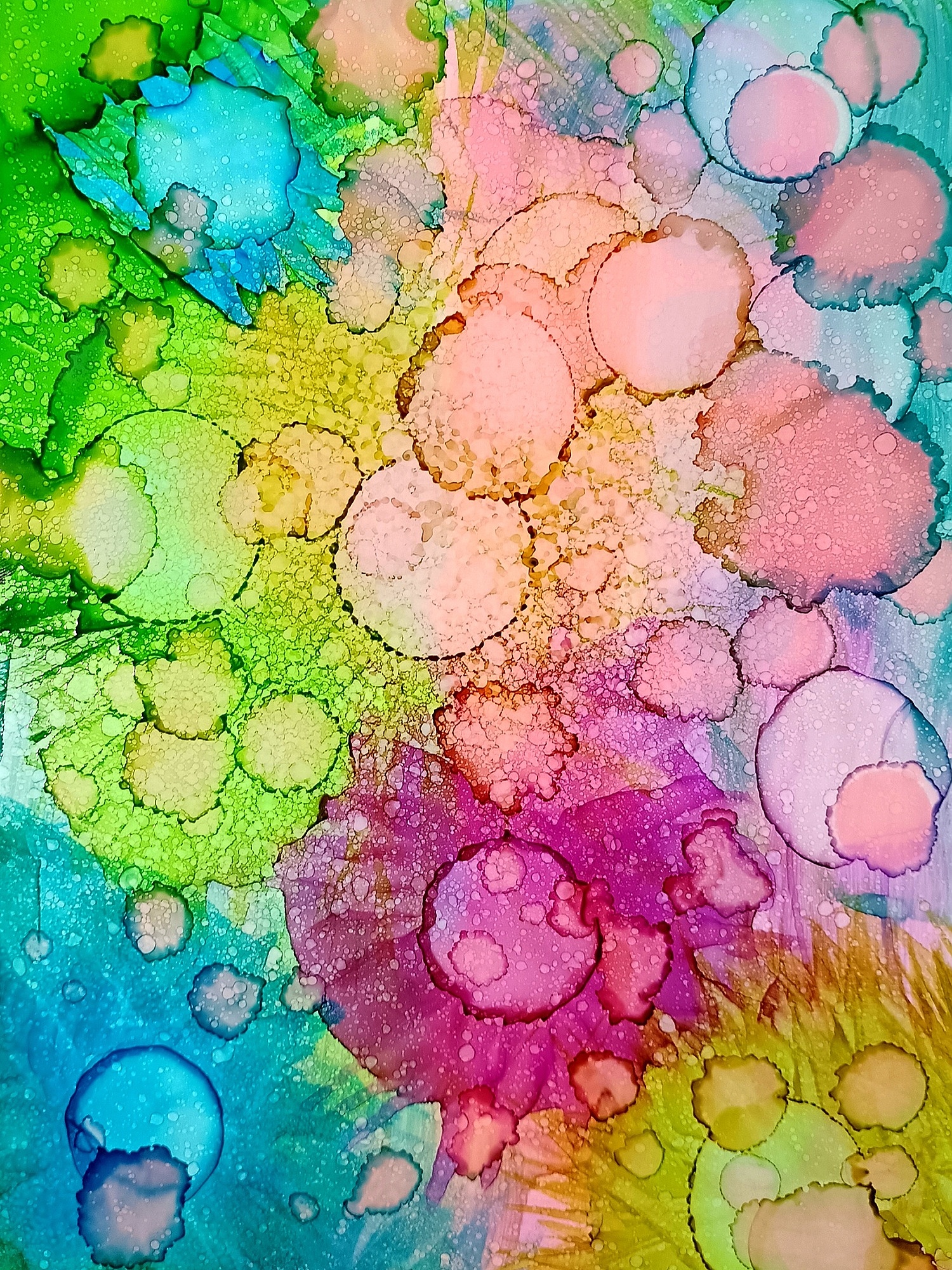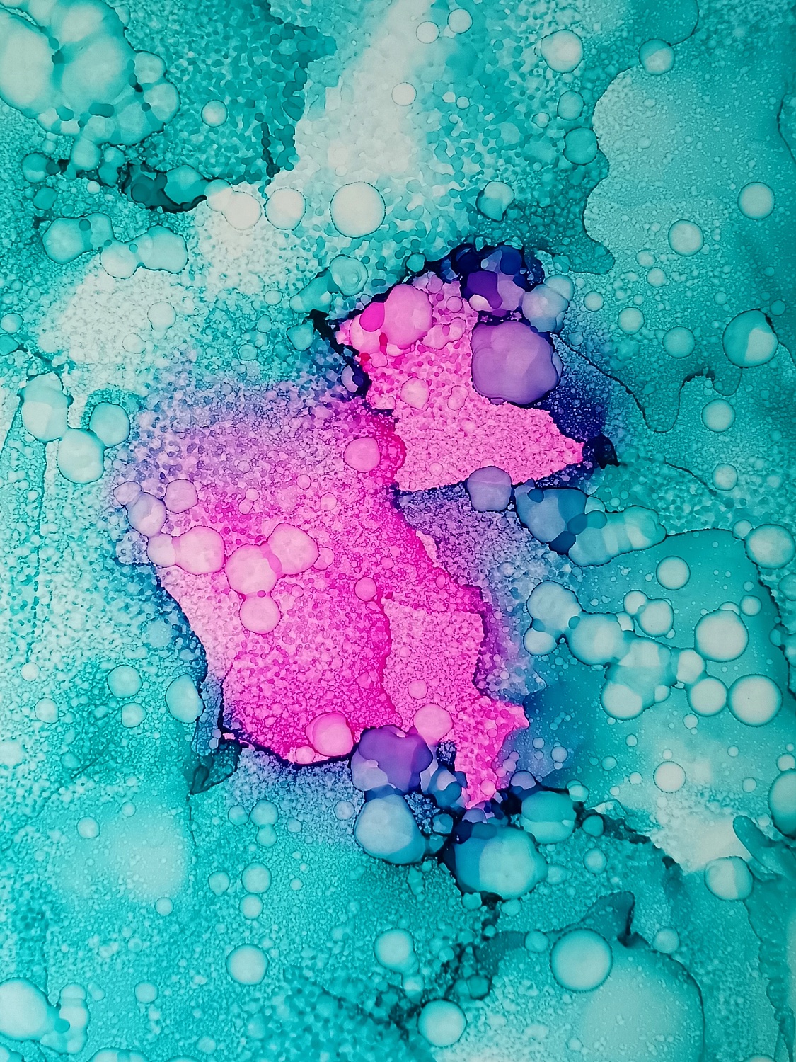 Obrázky tvořené pomocí alkoholových inkoustů, isopropylalkoholu a fénu, popřípadě brčka. Některé jsou dokreslené akrylovými fixy. Intuitivní tvorba, druh automatické kresby… Jsou ve formátu A5 na syntetickém papíru. Tyto malby dále fotím a používám k tisku na šperky, hrníčky, trička, polštáře, nebo z nich nechávám natisknout velkoformátové obrazy na plátno. Pokud o některý obrázek (nebo produkt z něj) máte zájem, stačí se ozvat na e-mail nebo napsat na facebook…