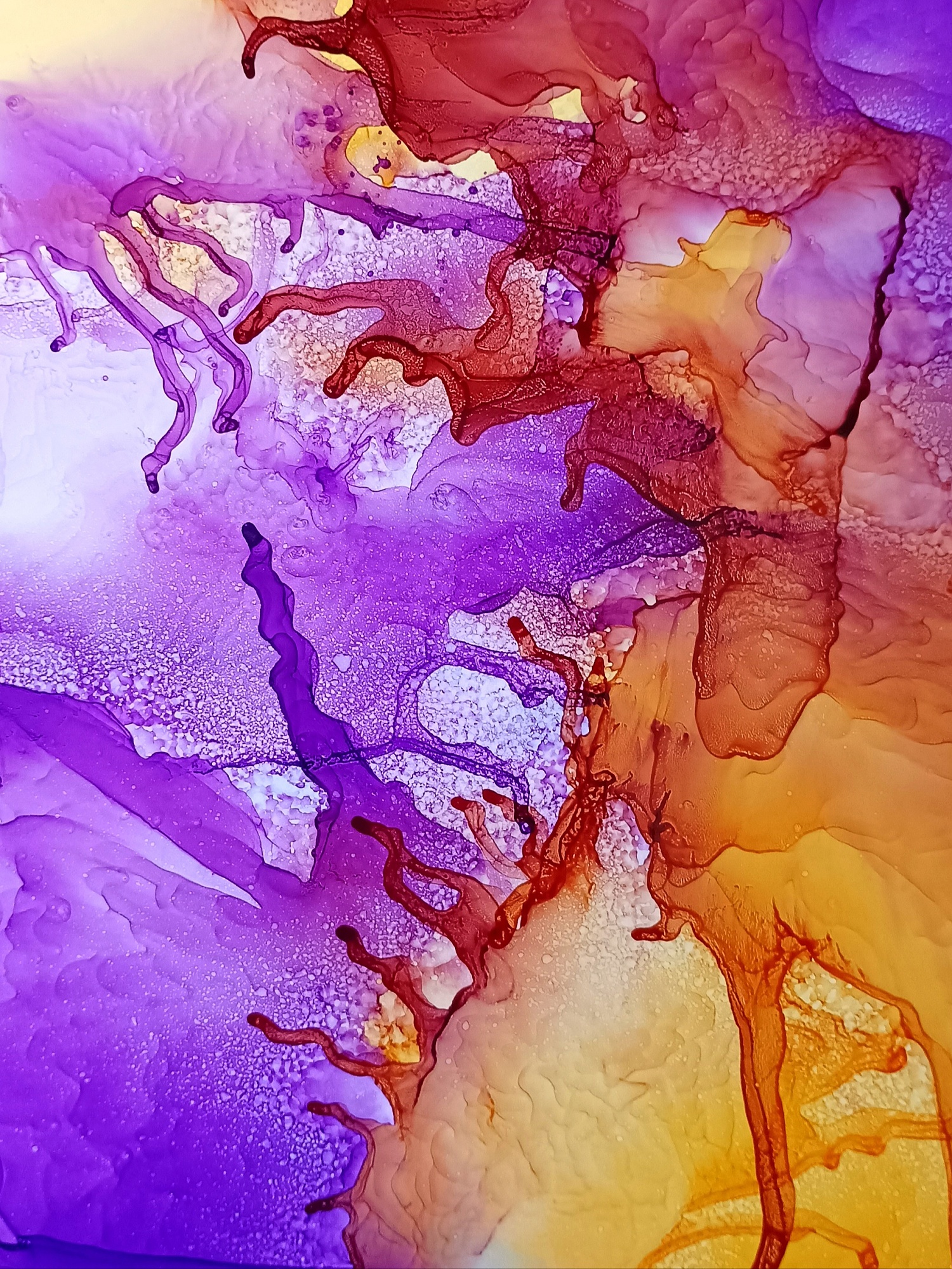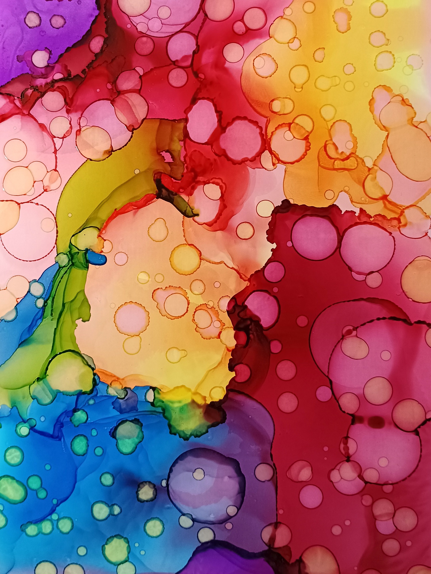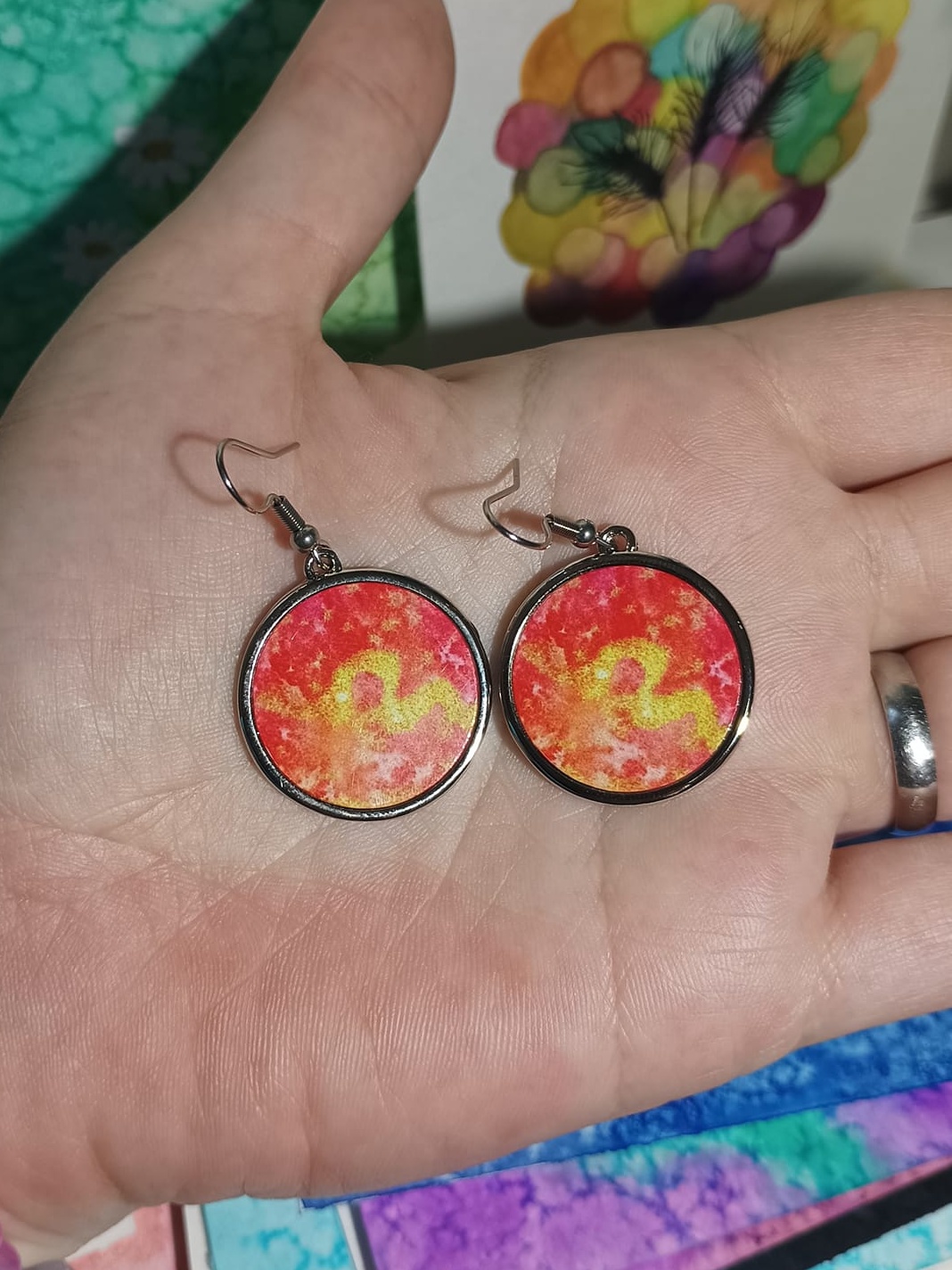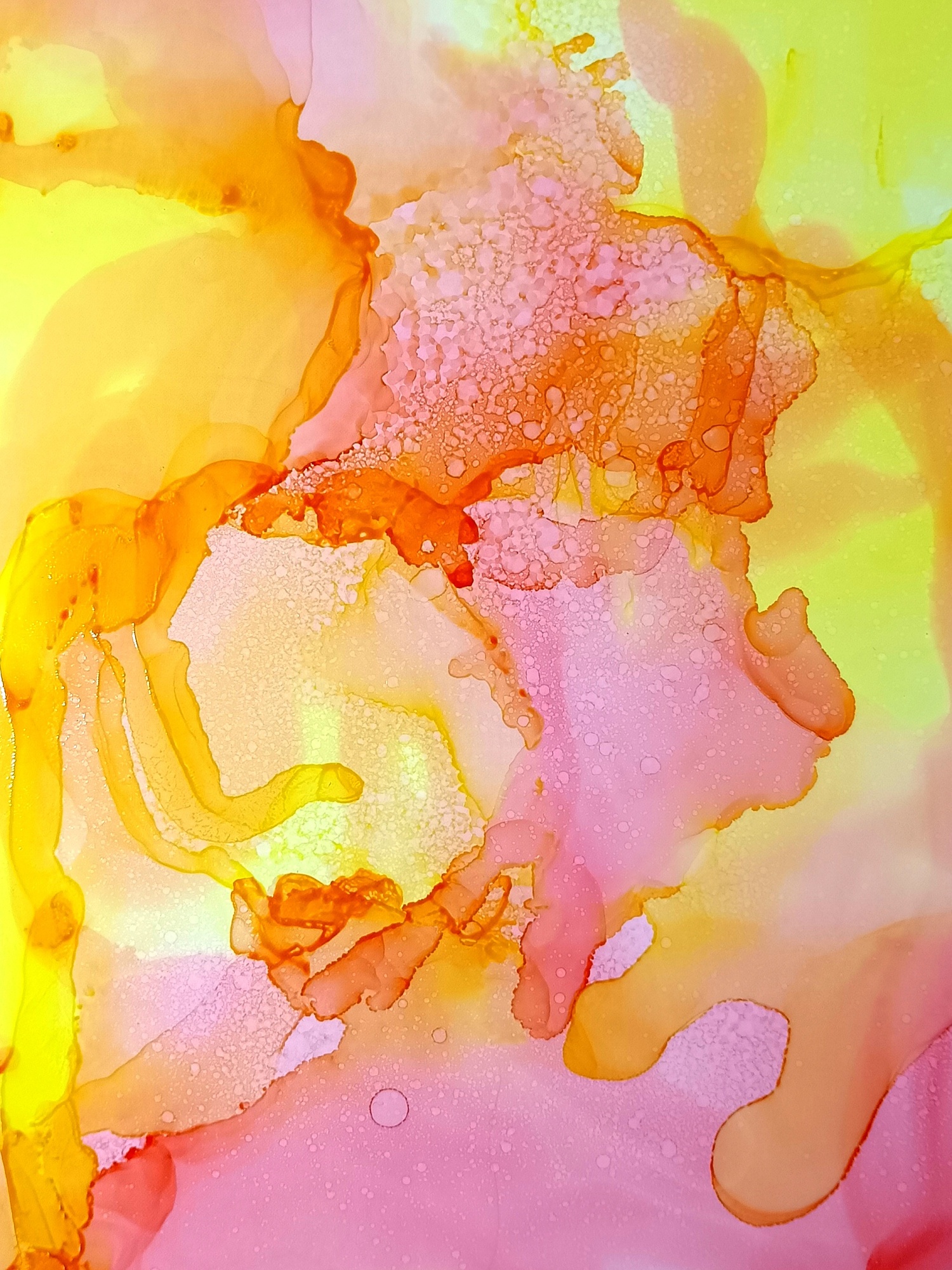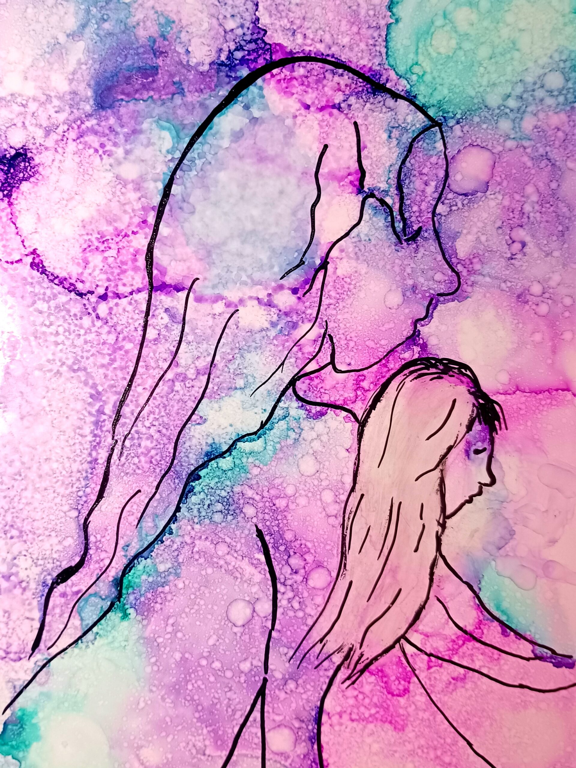 Obrázky tvořené pomocí alkoholových inkoustů, isopropylalkoholu a fénu, popřípadě brčka. Některé jsou dokreslené akrylovými fixy. Intuitivní tvorba, druh automatické kresby… Jsou ve formátu A5 na syntetickém papíru. Tyto malby dále fotím a používám k tisku na šperky, hrníčky, trička, polštáře, nebo z nich nechávám natisknout velkoformátové obrazy na plátno. Pokud o některý obrázek (nebo produkt z něj) máte zájem, stačí se ozvat na e-mail nebo napsat na facebook…