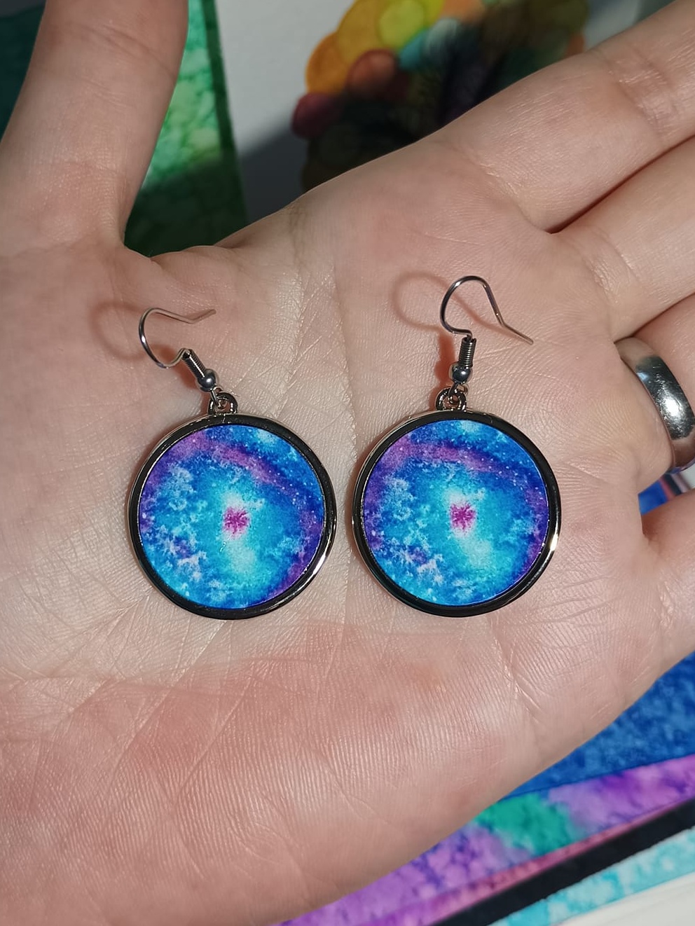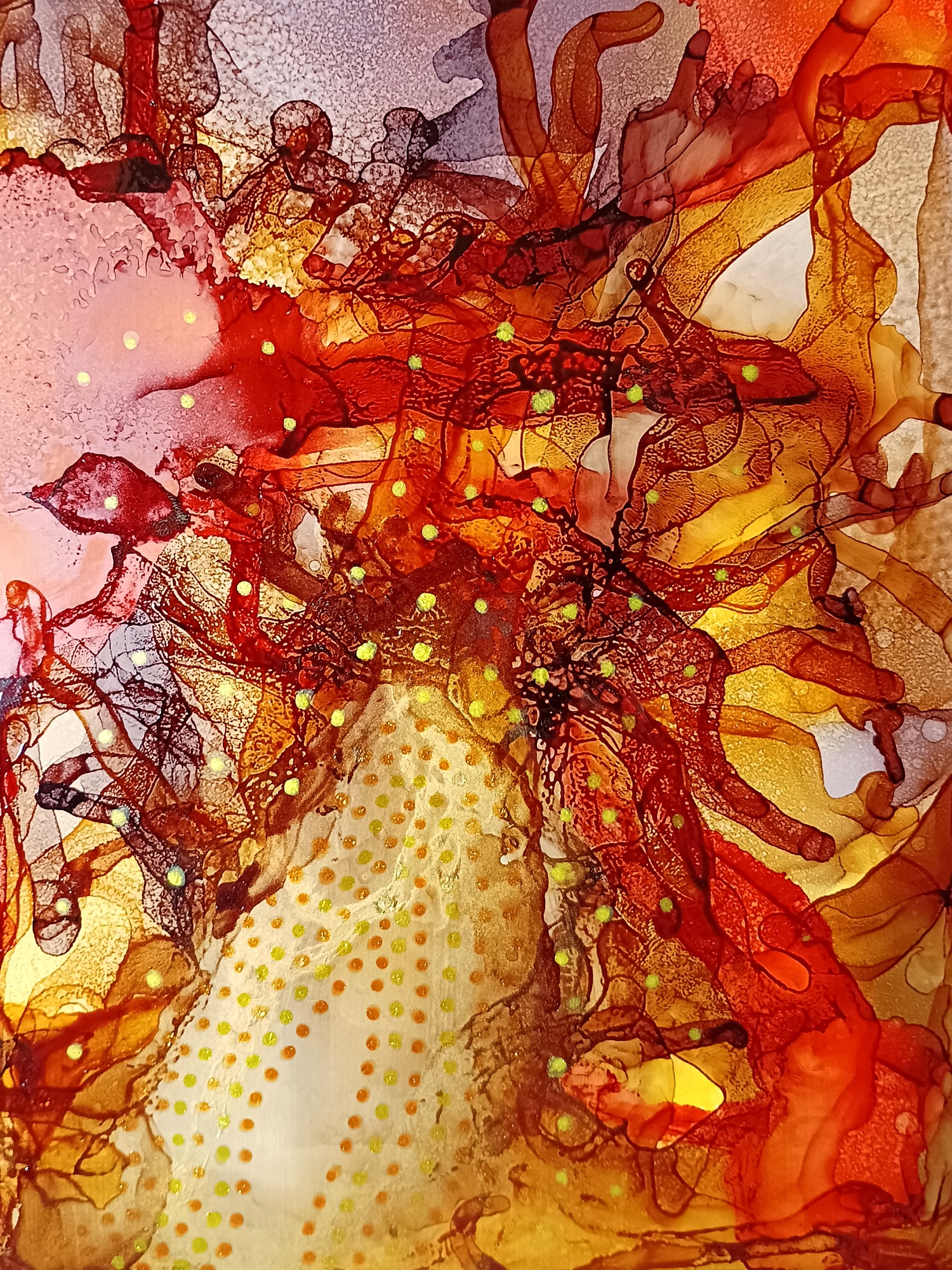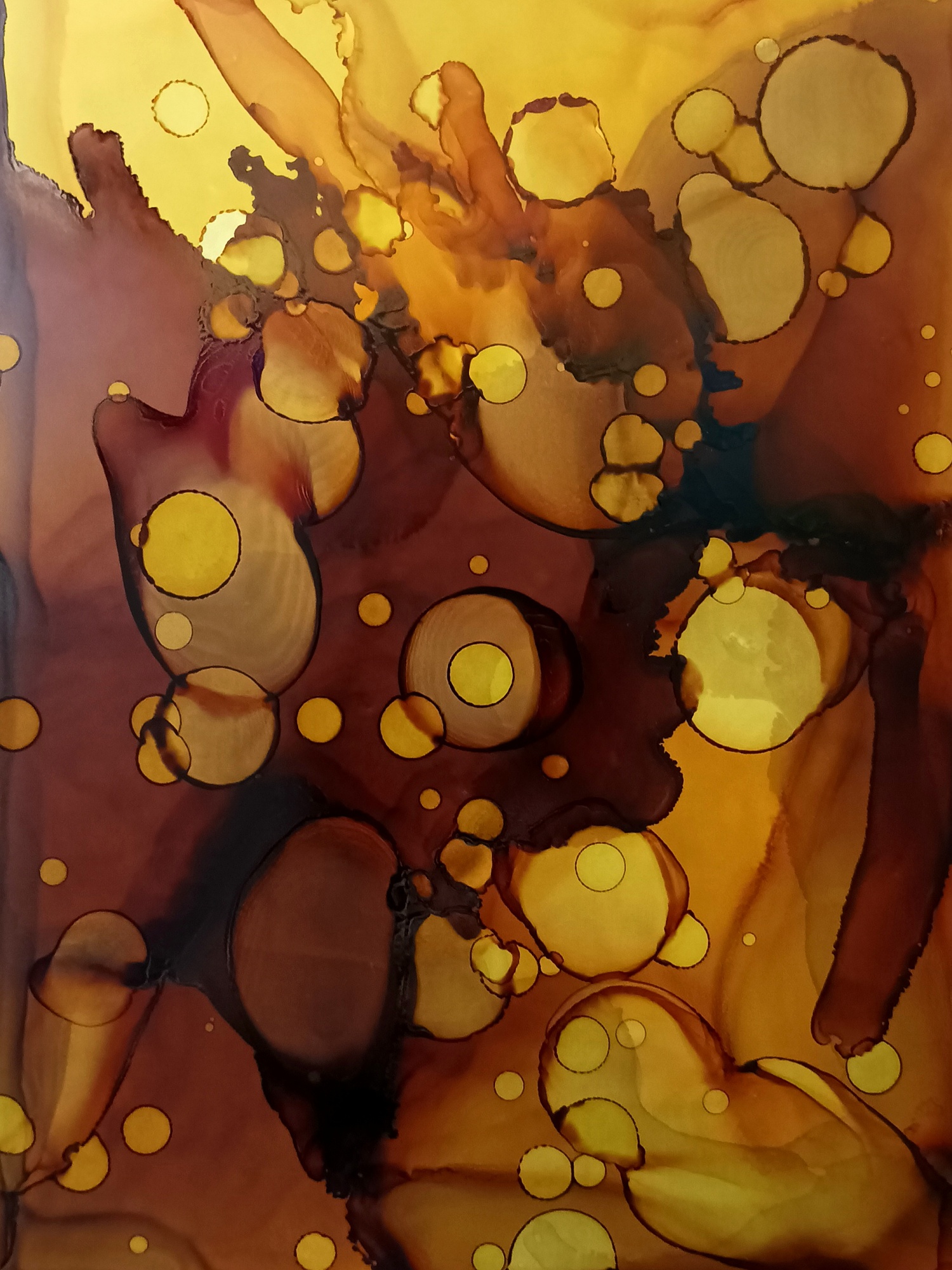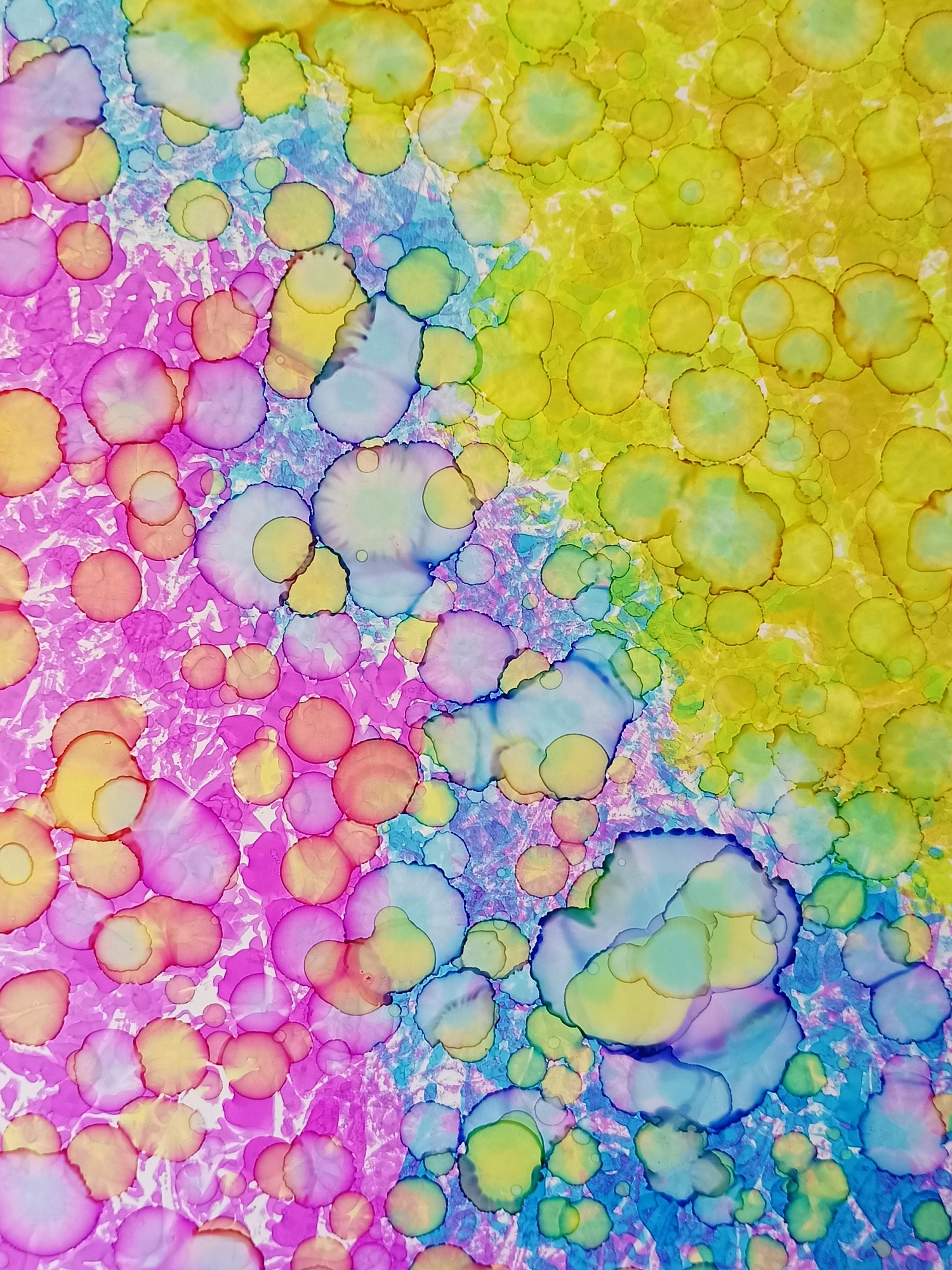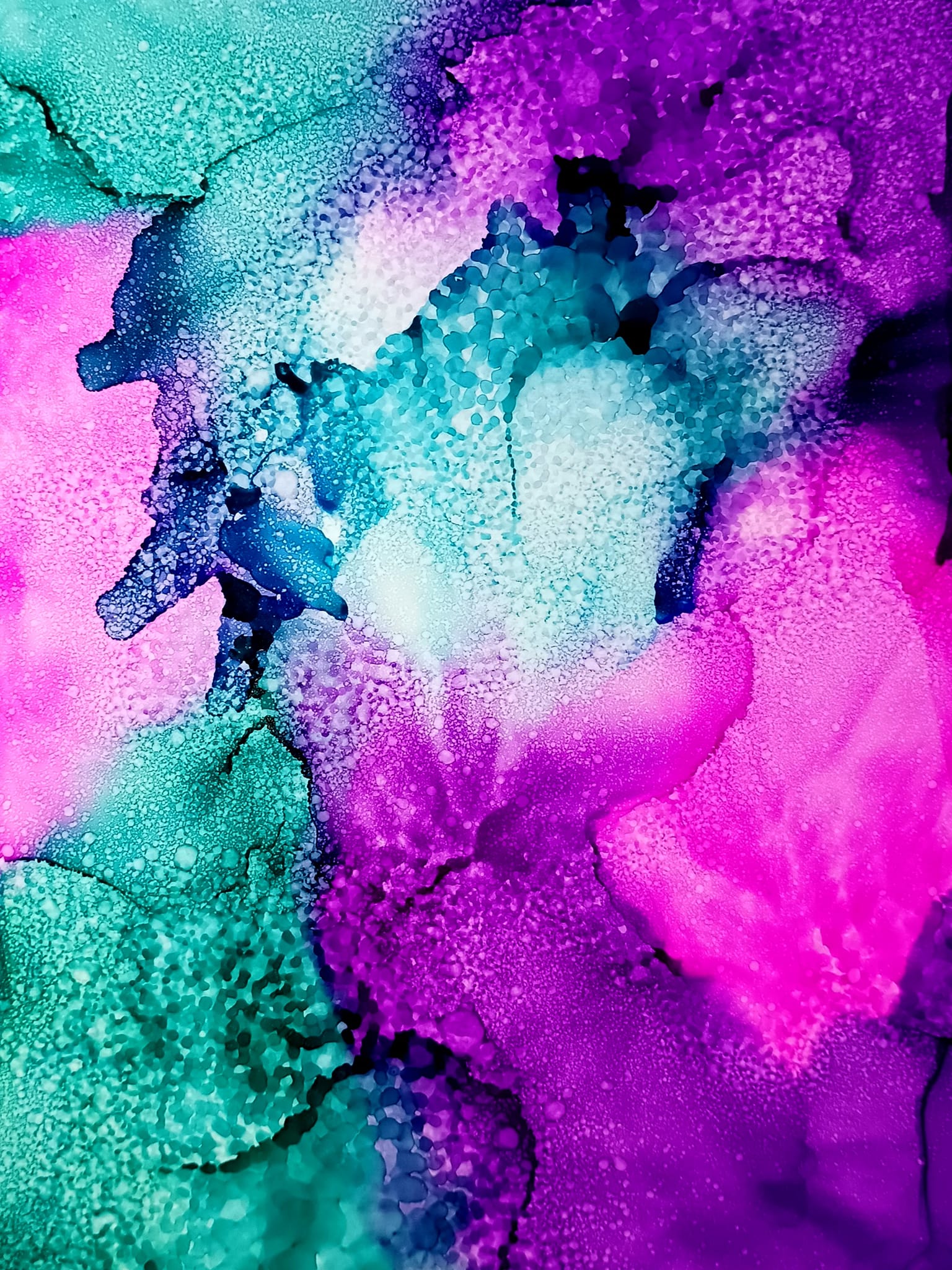 Obrázky tvořené pomocí alkoholových inkoustů, isopropylalkoholu a fénu, popřípadě brčka. Některé jsou dokreslené akrylovými fixy. Intuitivní tvorba, druh automatické kresby… Jsou ve formátu A5 na syntetickém papíru. Tyto malby dále fotím a používám k tisku na šperky, hrníčky, trička, polštáře, nebo z nich nechávám natisknout velkoformátové obrazy na plátno. Pokud o některý obrázek (nebo produkt z něj) máte zájem, stačí se ozvat na e-mail nebo napsat na facebook…