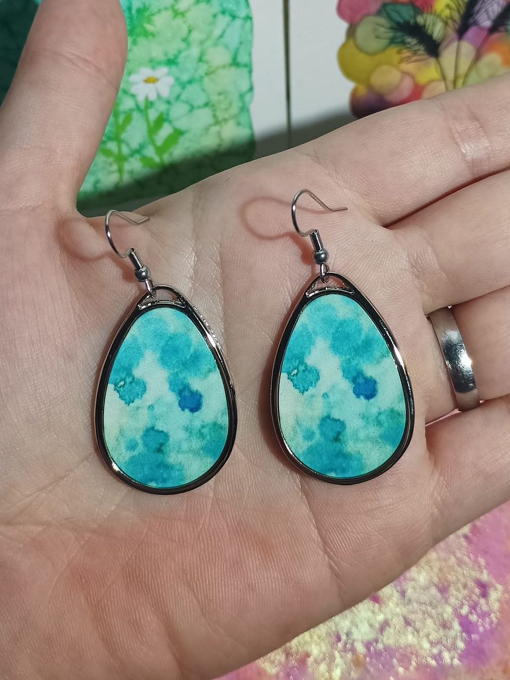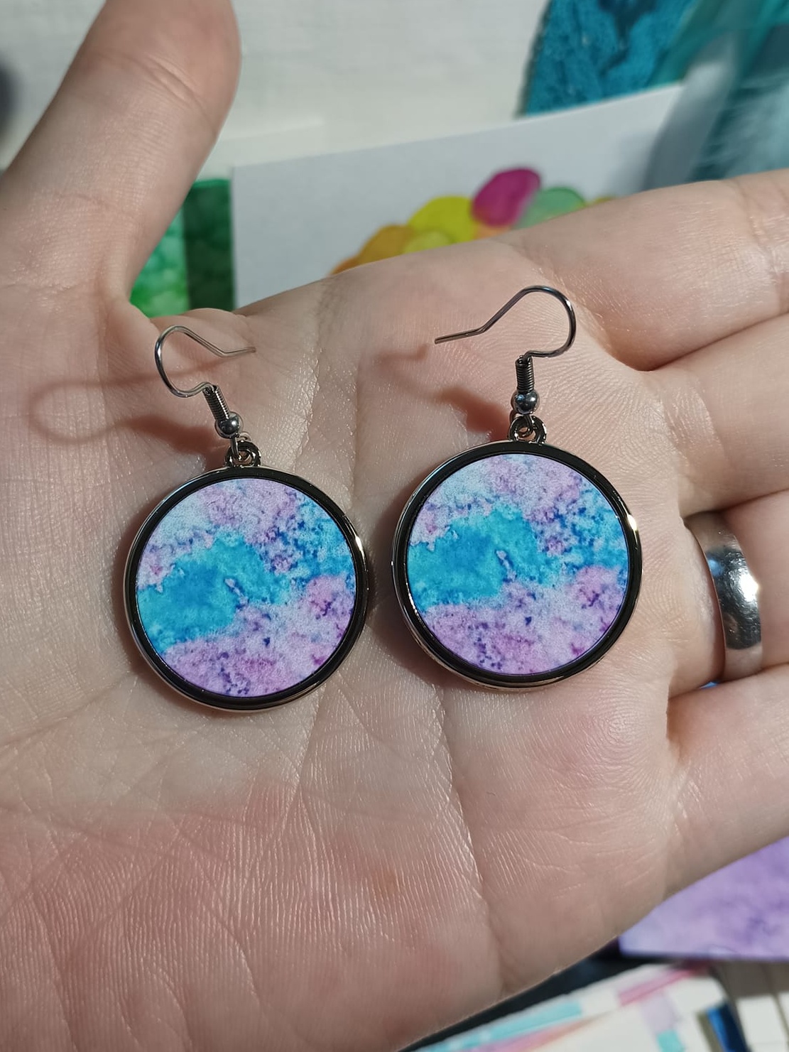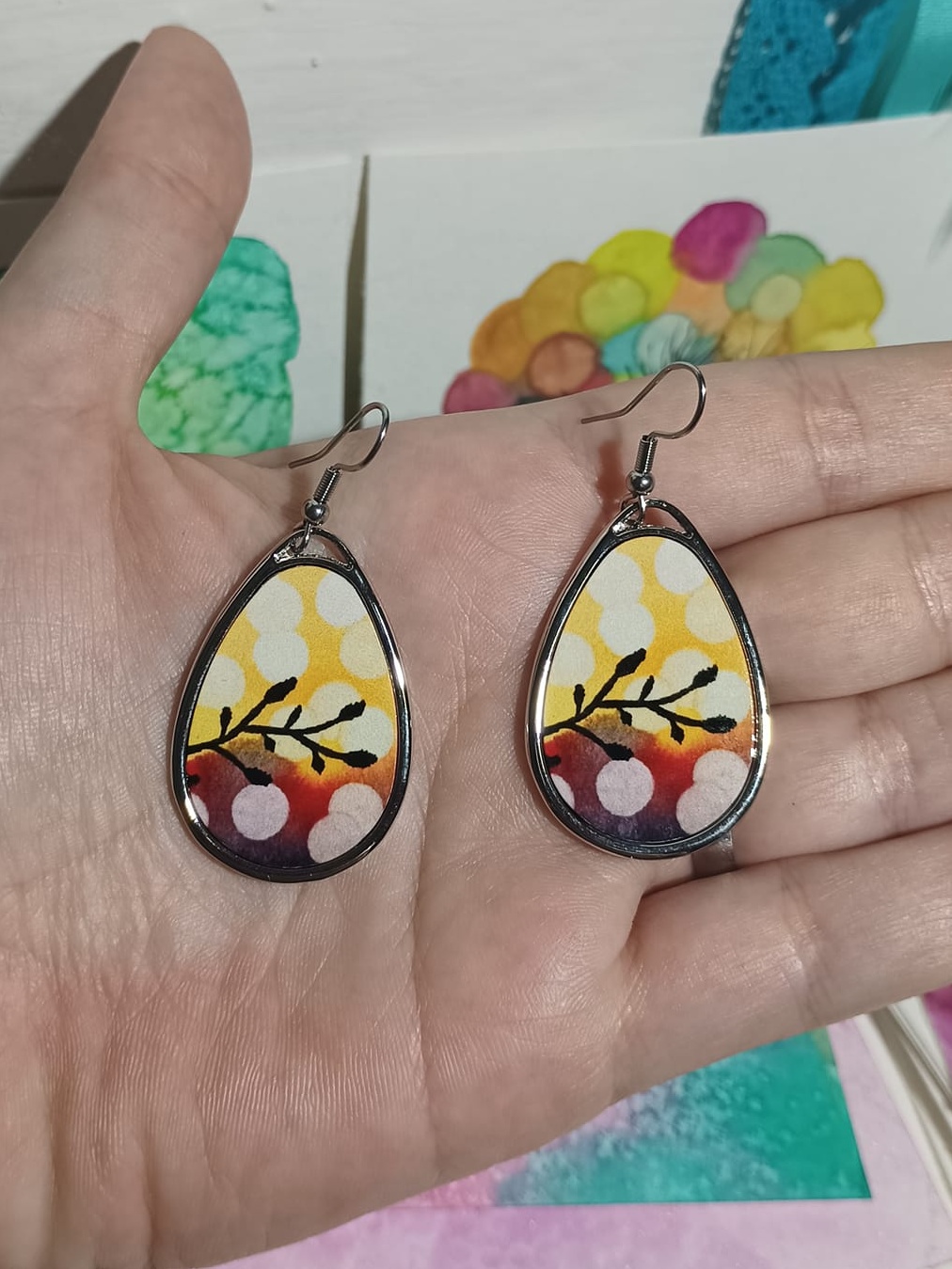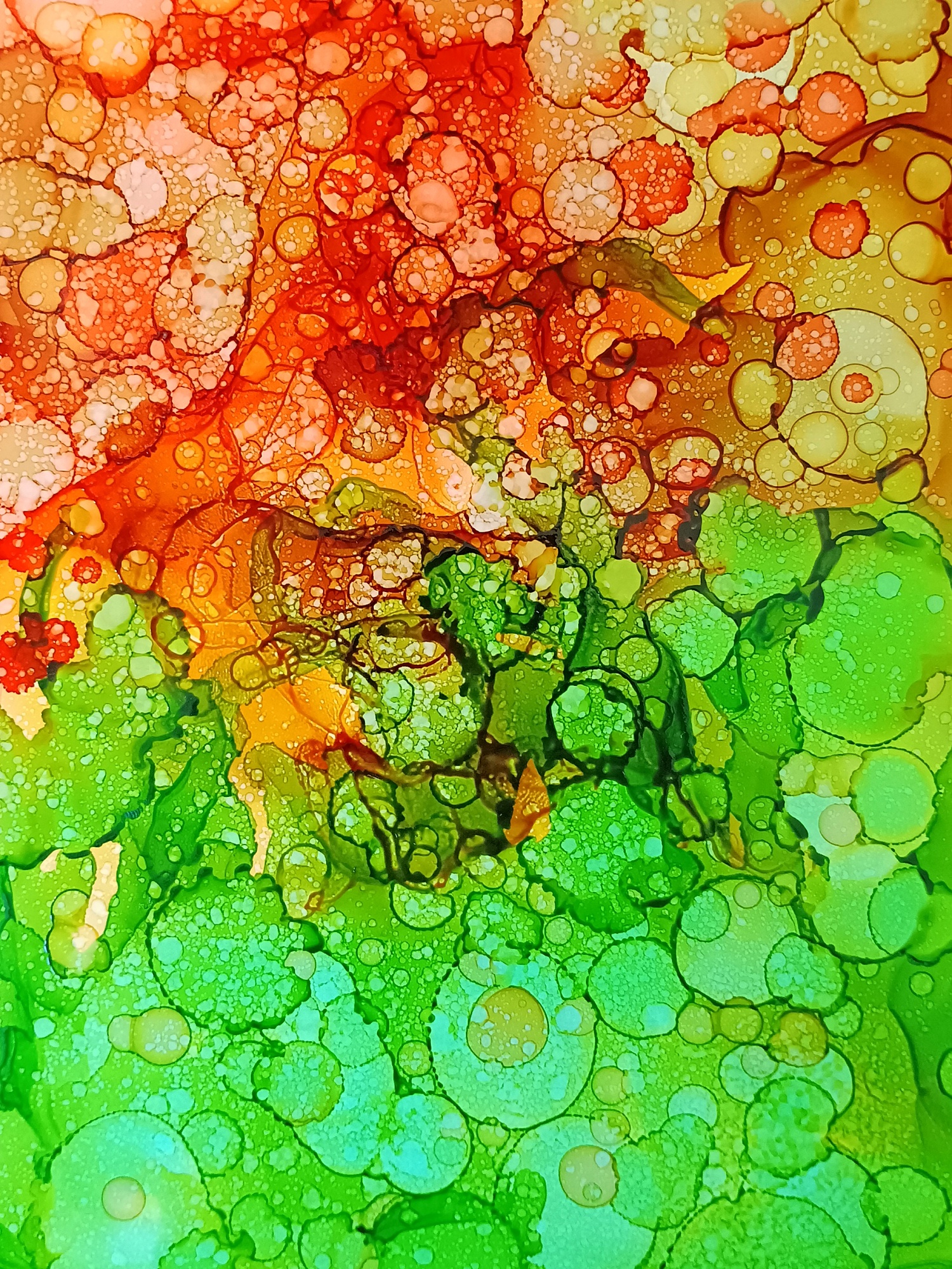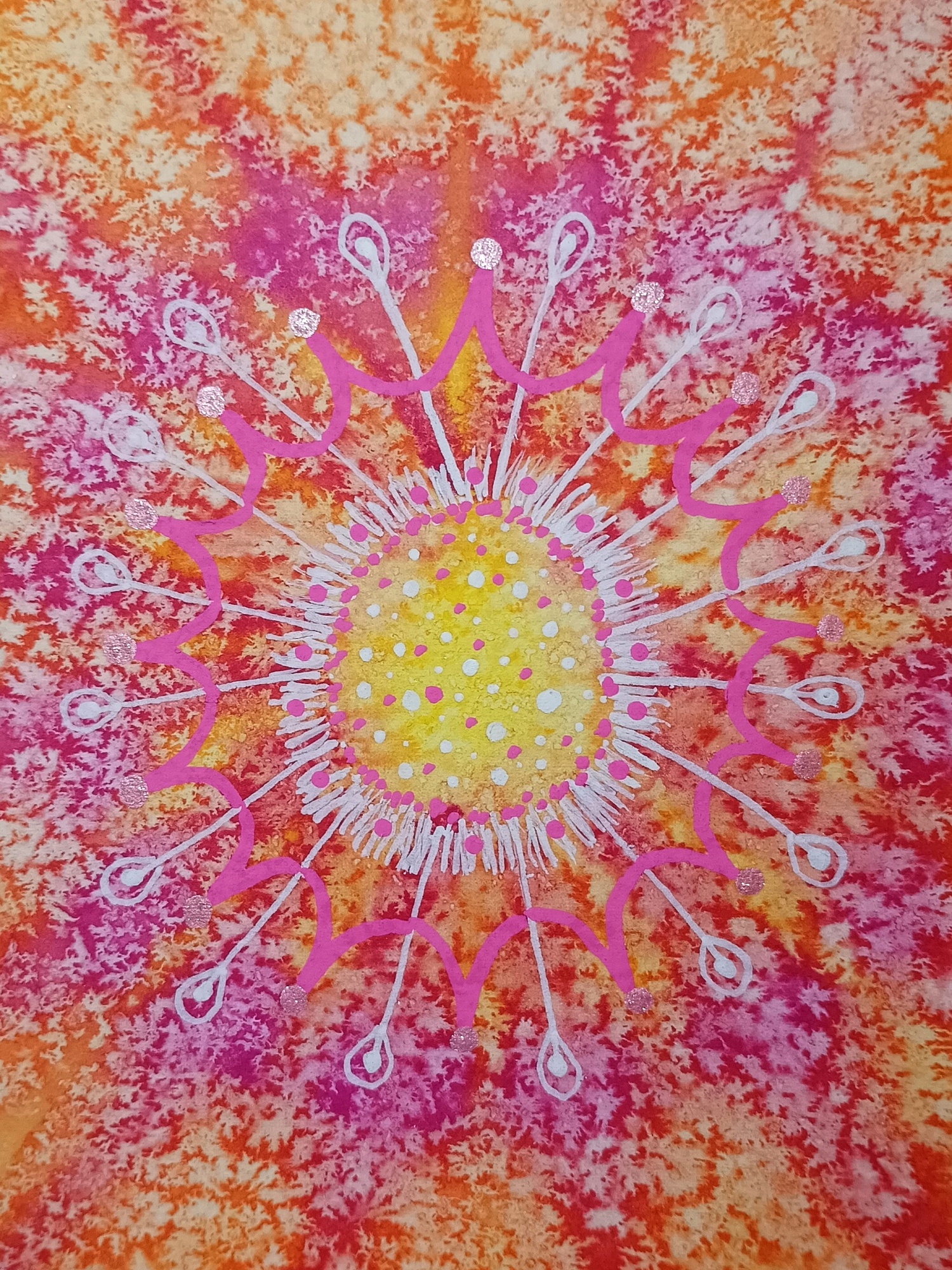 Obrázky tvořené pomocí alkoholových inkoustů, isopropylalkoholu a fénu, popřípadě brčka. Některé jsou dokreslené akrylovými fixy. Intuitivní tvorba, druh automatické kresby… Jsou ve formátu A5 na syntetickém papíru. Tyto malby dále fotím a používám k tisku na šperky, hrníčky, trička, polštáře, nebo z nich nechávám natisknout velkoformátové obrazy na plátno. Pokud o některý obrázek (nebo produkt z něj) máte zájem, stačí se ozvat na e-mail nebo napsat na facebook…