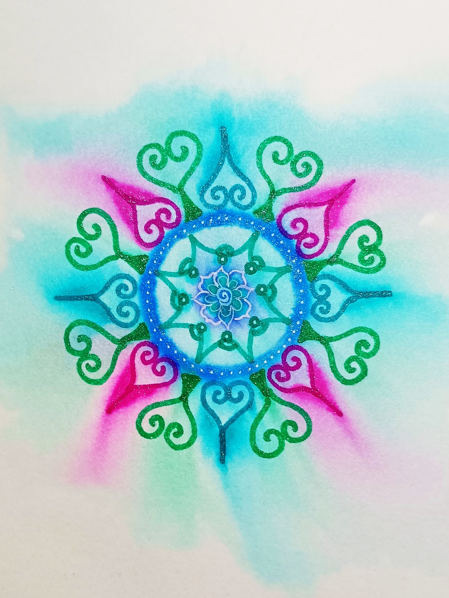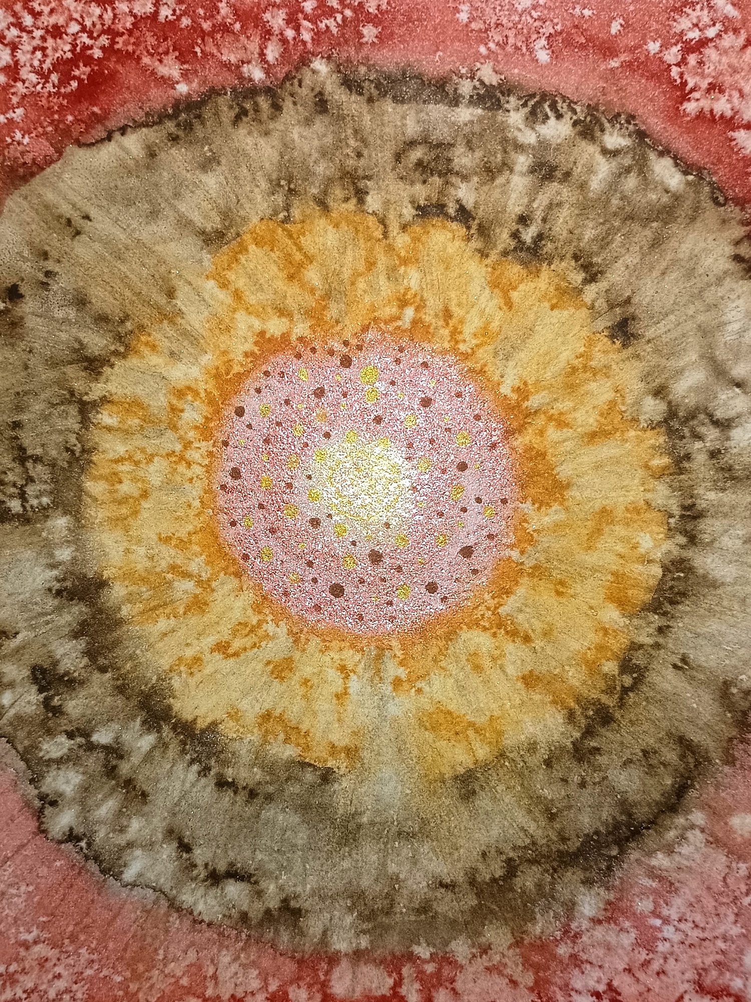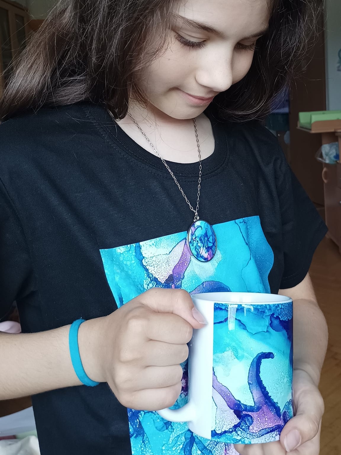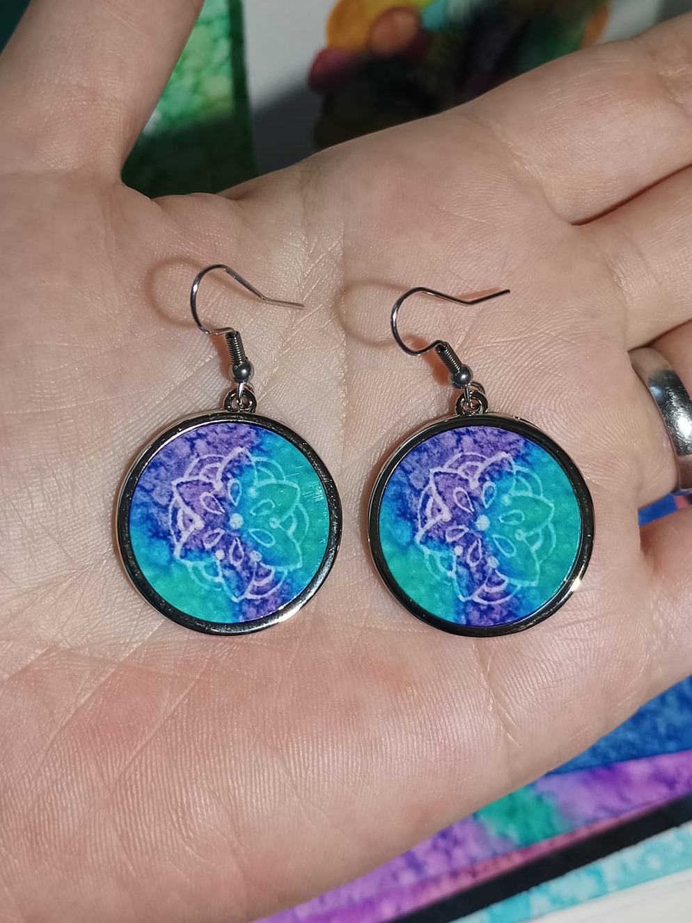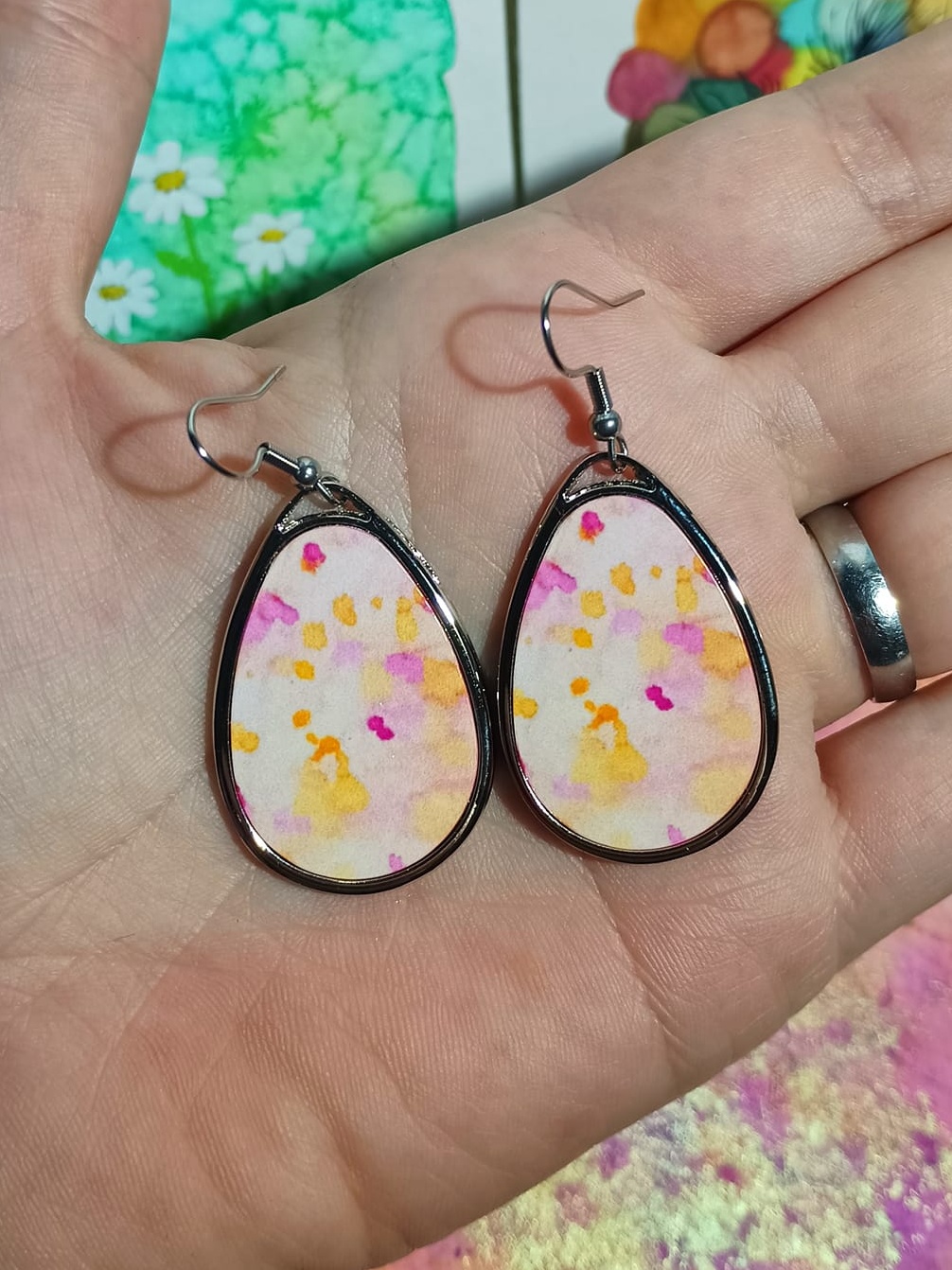Obrázky tvořené pomocí alkoholových inkoustů, isopropylalkoholu a fénu, popřípadě brčka. Některé jsou dokreslené akrylovými fixy. Intuitivní tvorba, druh automatické kresby… Jsou ve formátu A5 na syntetickém papíru. Tyto malby dále fotím a používám k tisku na šperky, hrníčky, trička, polštáře, nebo z nich nechávám natisknout velkoformátové obrazy na plátno. Pokud o některý obrázek (nebo produkt z něj) máte zájem, stačí se ozvat na e-mail nebo napsat na facebook…