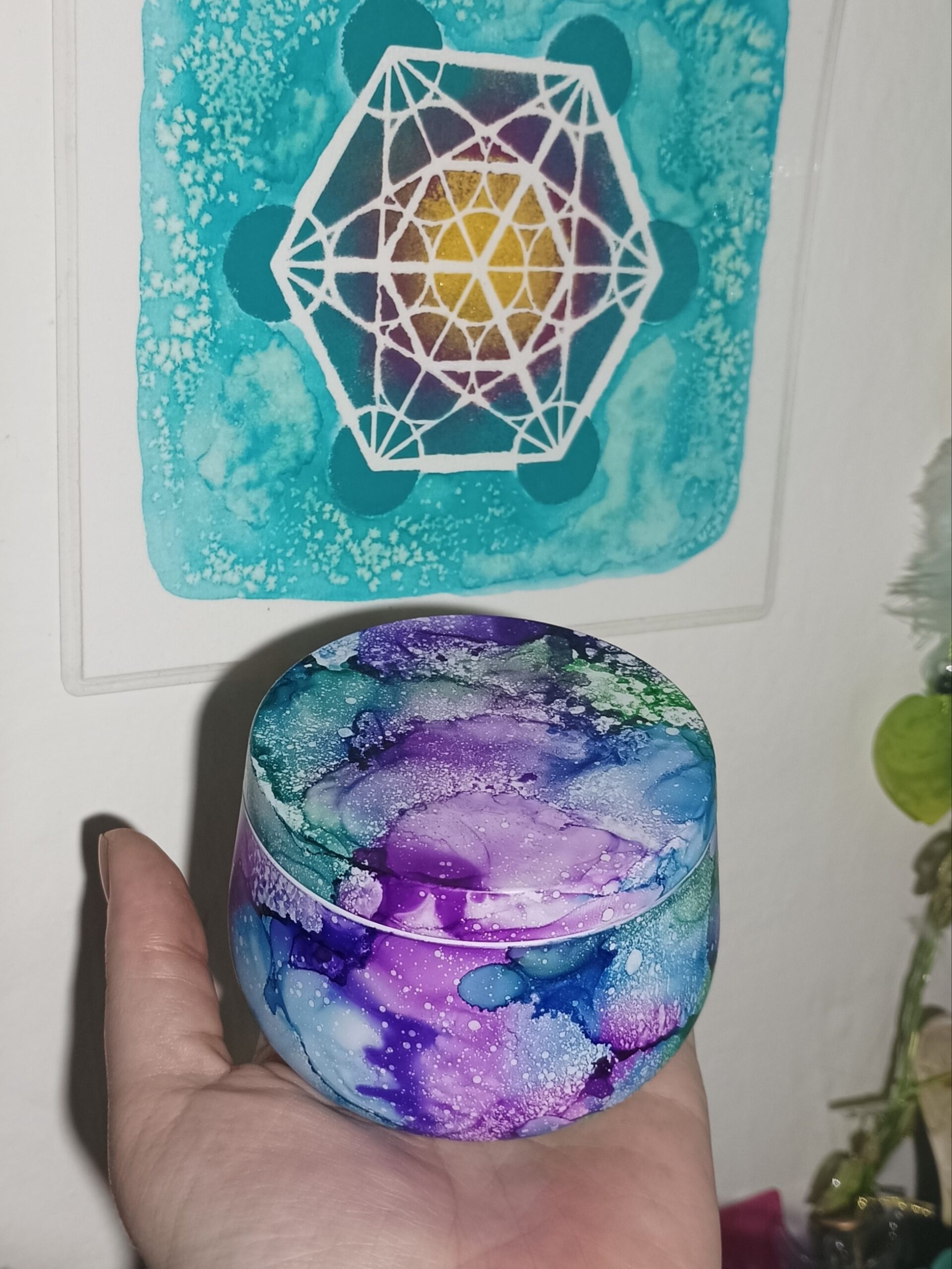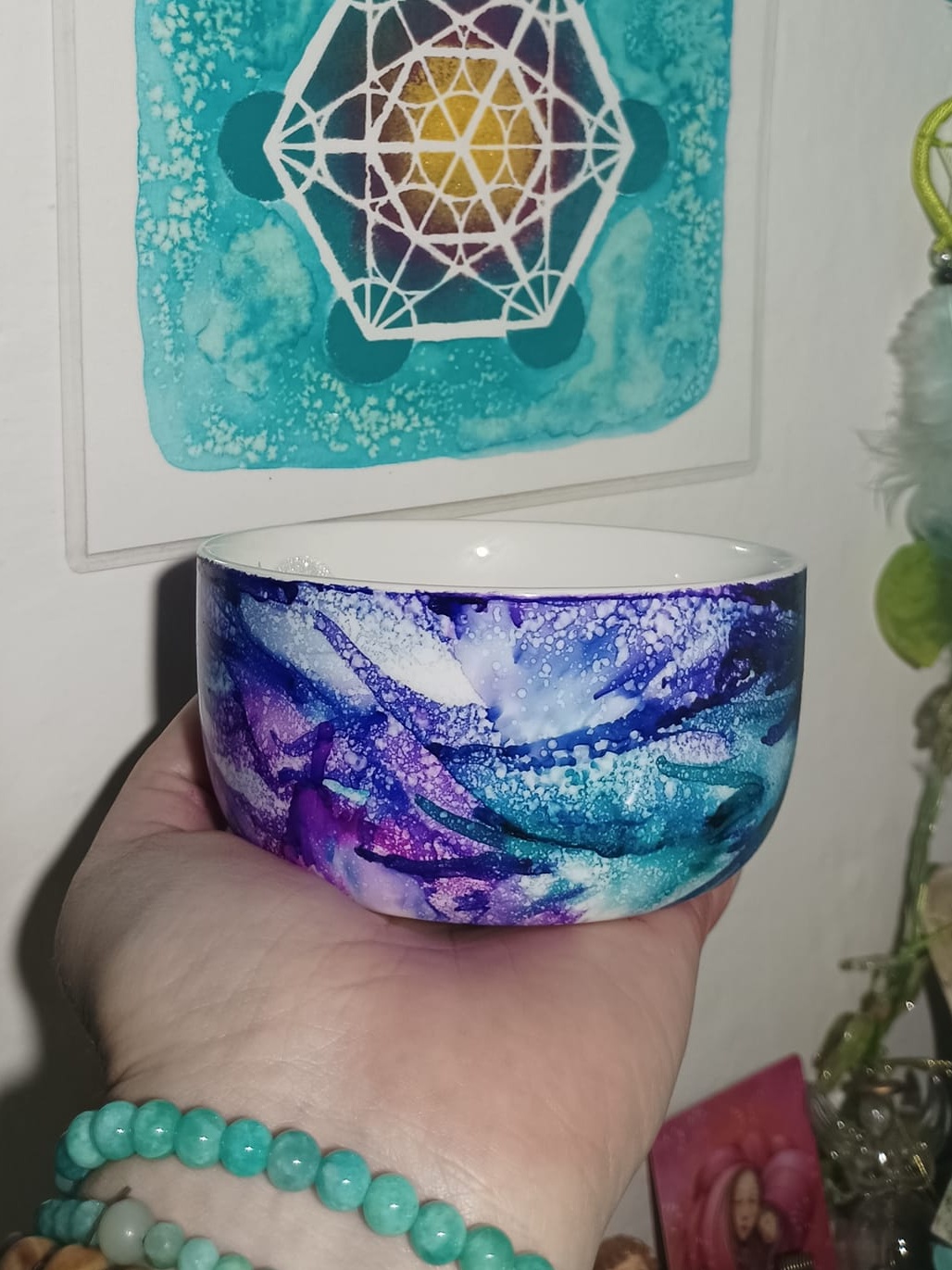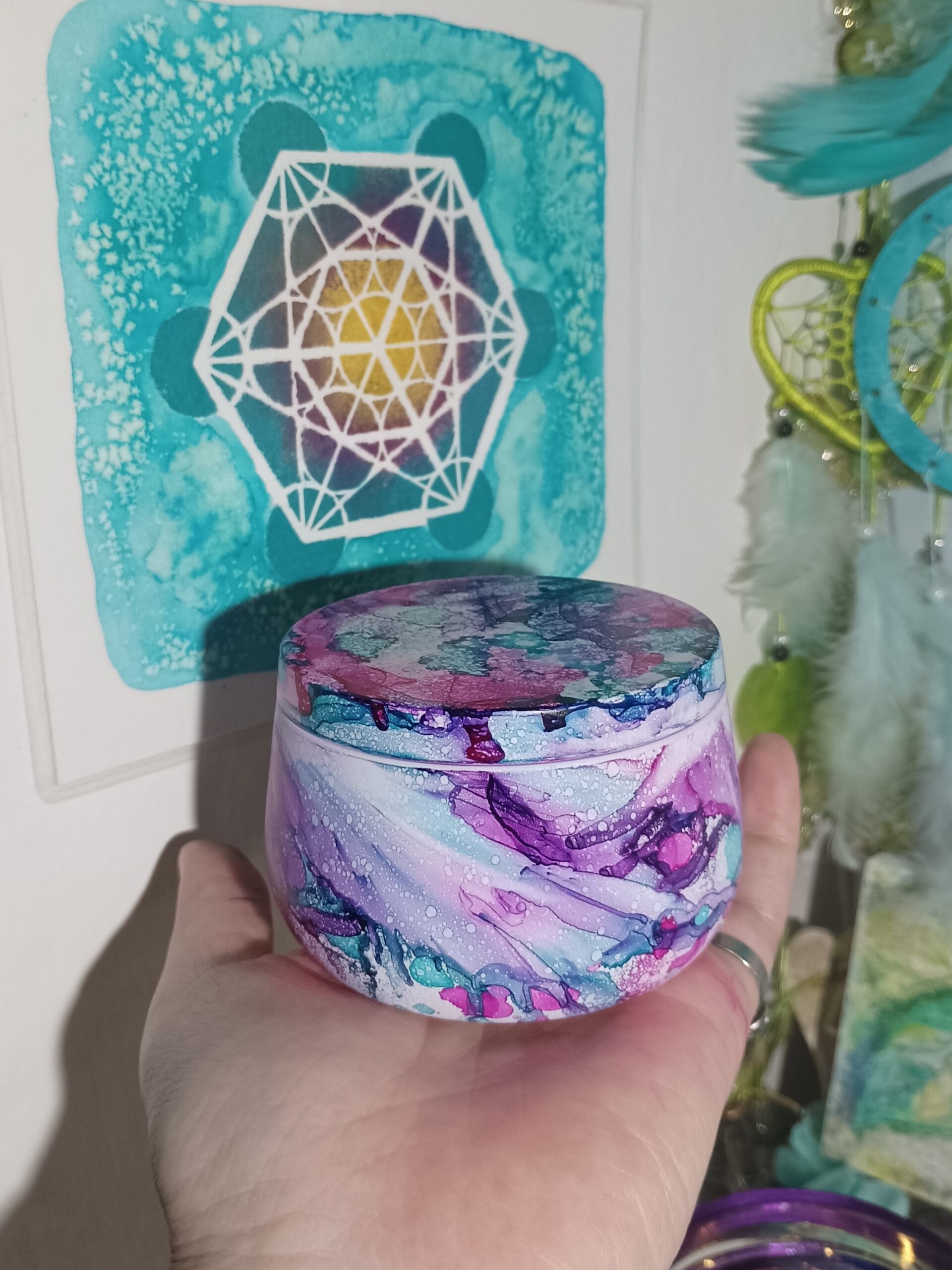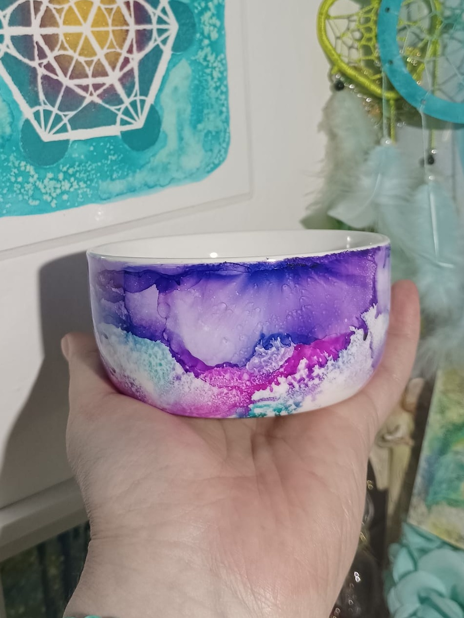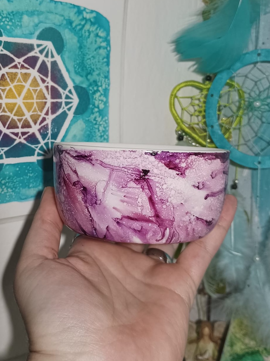 Mističky, které ručně zdobím alkoholovými inkousty. Mističky jsou určeny k dekoraci, na kamínky, drobnosti, šperky, světýlka a různé jiné poklady… Jsou ošetřeny akrylovým lakem, můžou se umýt, ale nesmějí do myčky ani mikrovlnky…