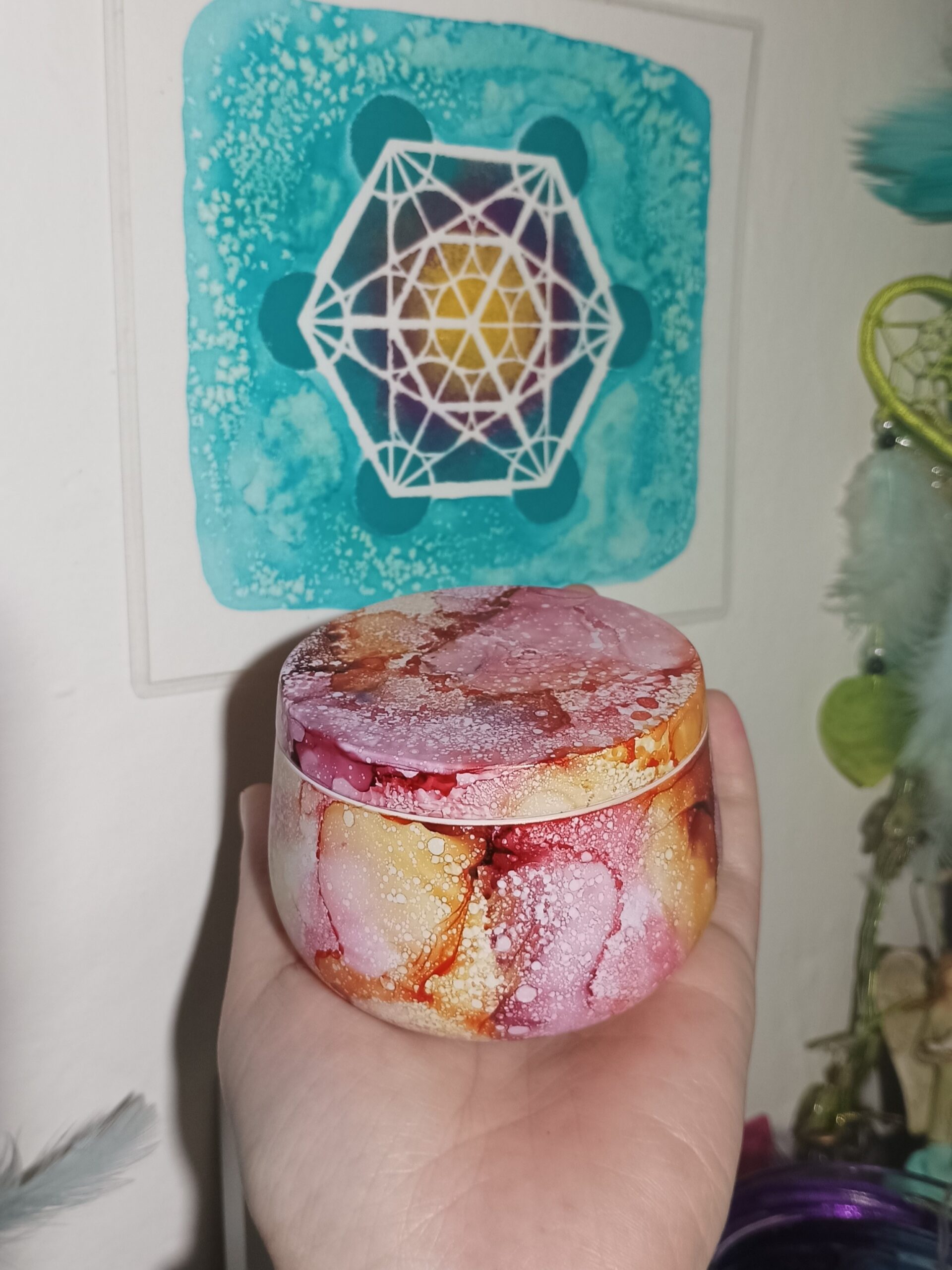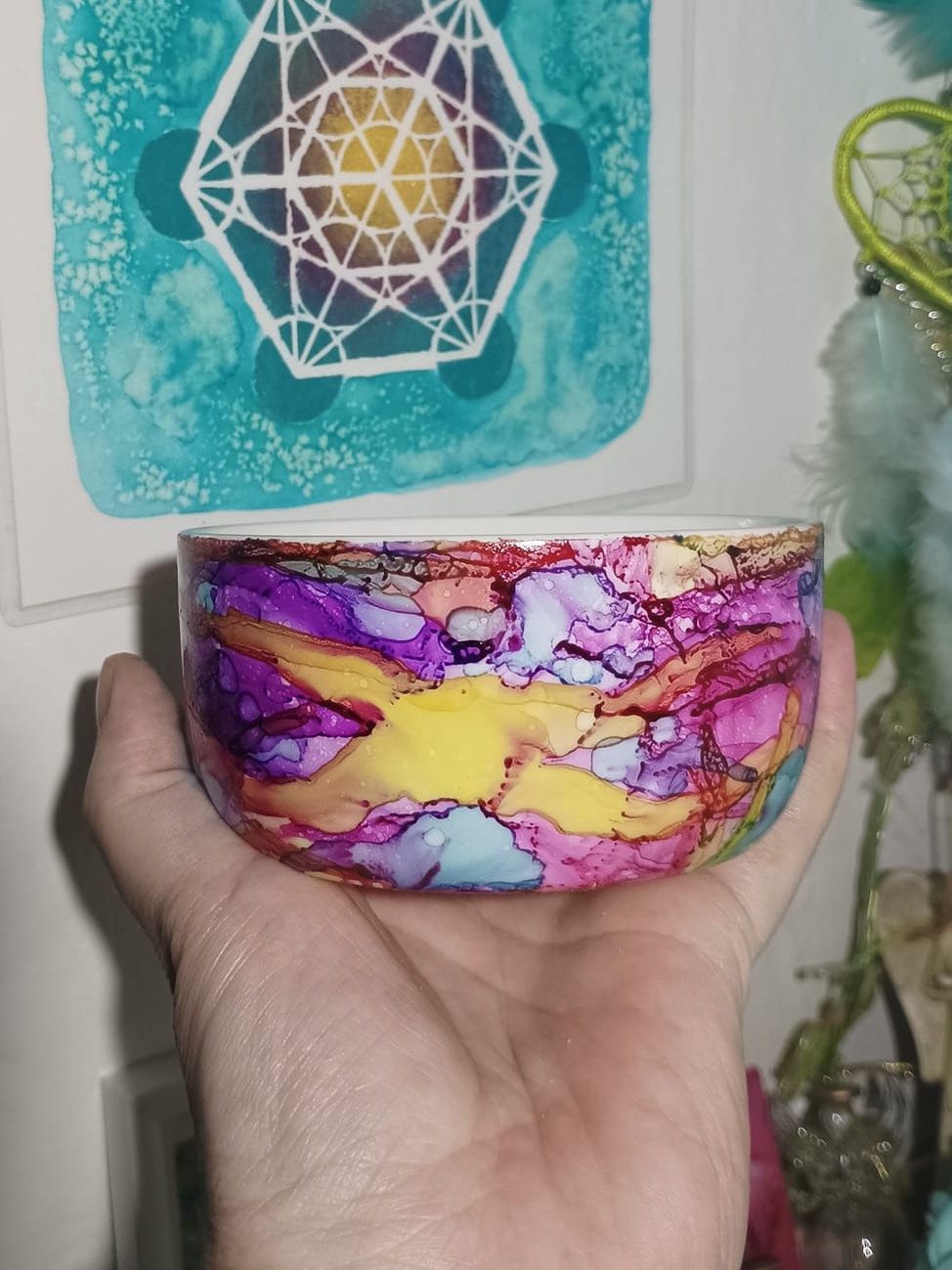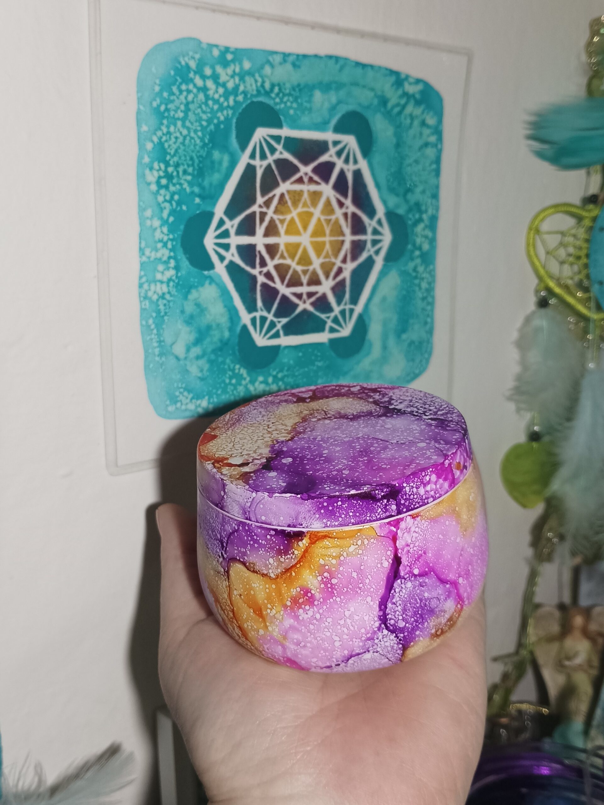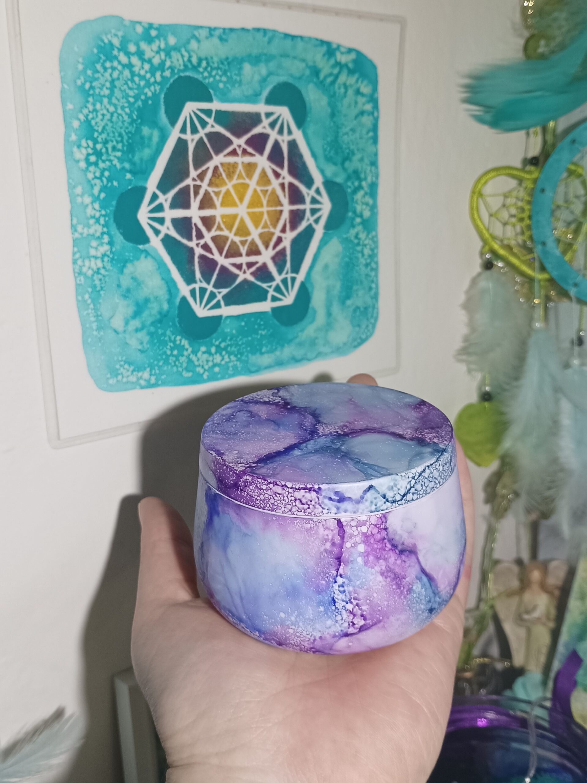 Mističky, které ručně zdobím alkoholovými inkousty. Mističky jsou určeny k dekoraci, na kamínky, drobnosti, šperky, světýlka a různé jiné poklady… Jsou ošetřeny akrylovým lakem, můžou se umýt, ale nesmějí do myčky ani mikrovlnky…