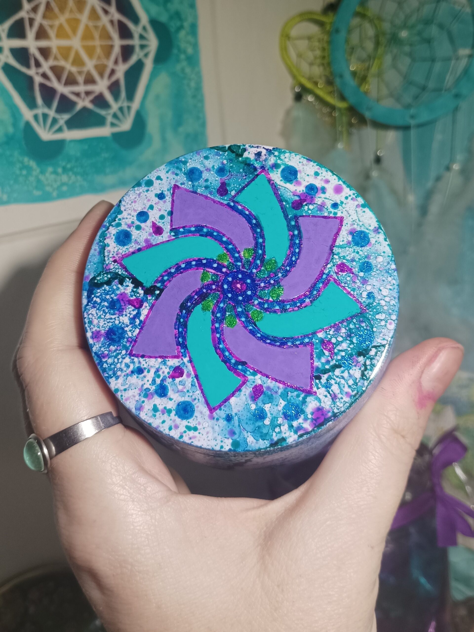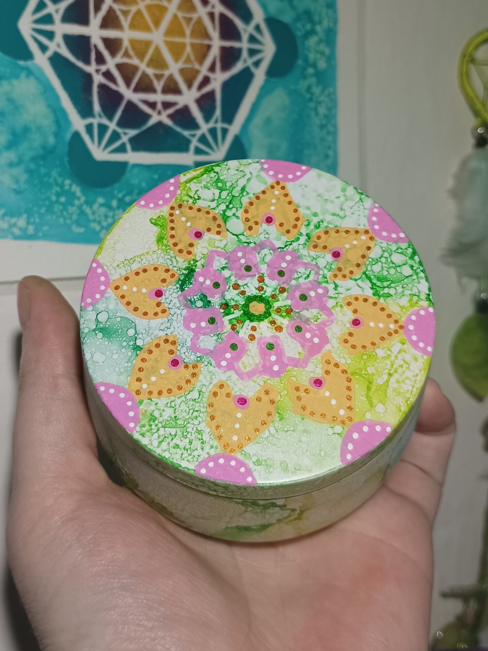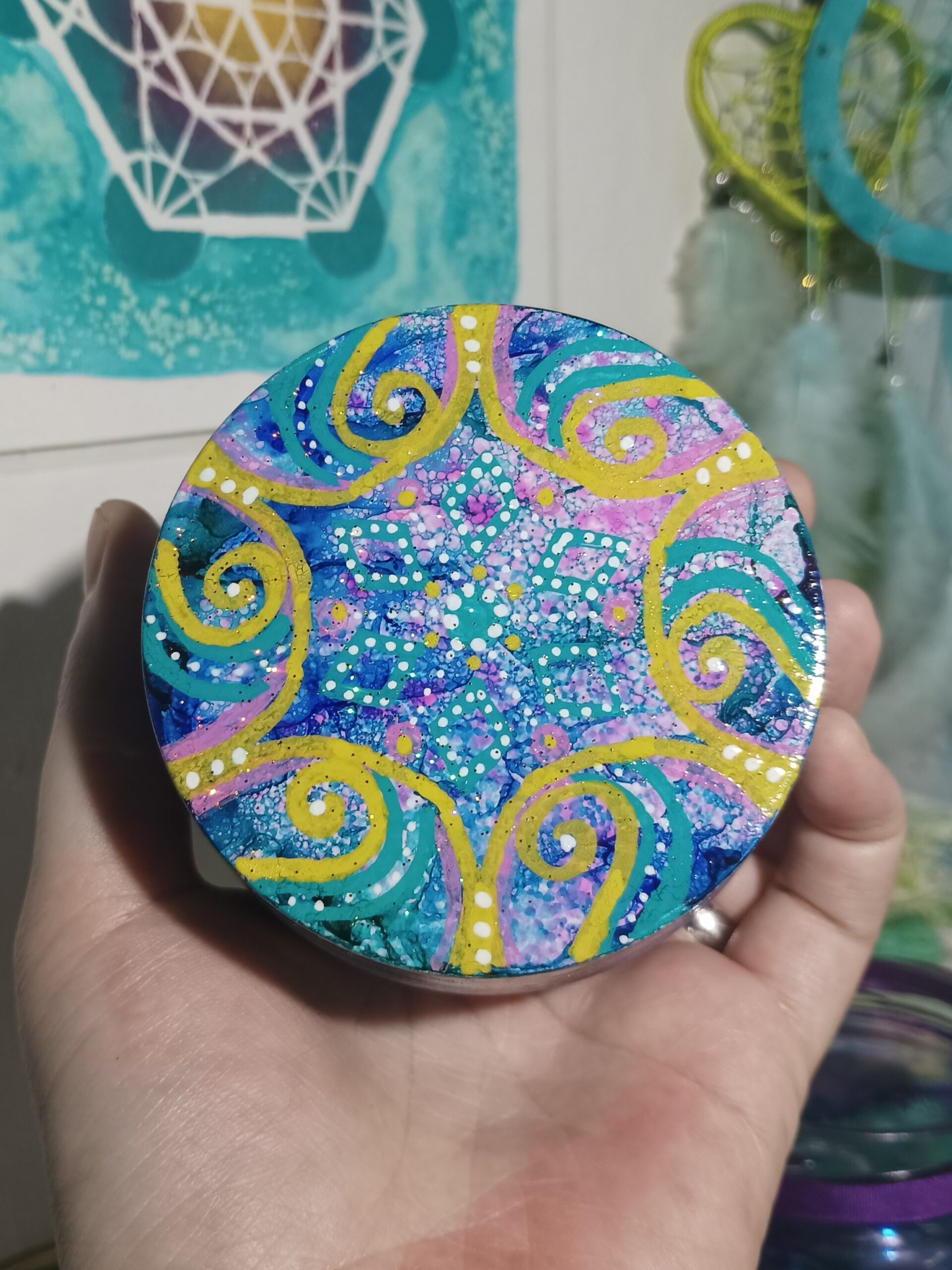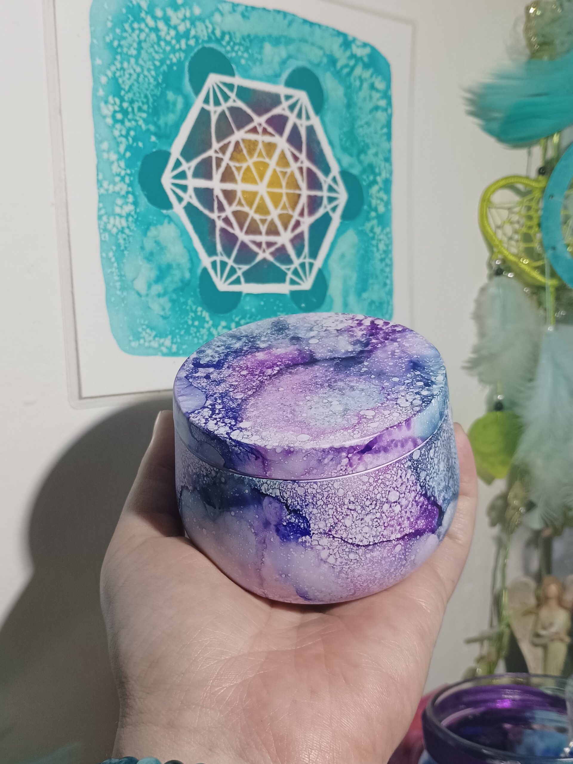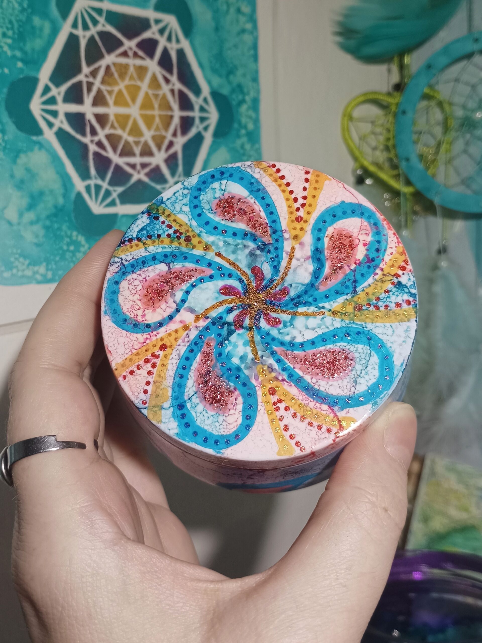 Mističky, které ručně zdobím alkoholovými inkousty. Mističky jsou určeny k dekoraci, na kamínky, drobnosti, šperky, světýlka a různé jiné poklady… Jsou ošetřeny akrylovým lakem, můžou se umýt, ale nesmějí do myčky ani mikrovlnky…