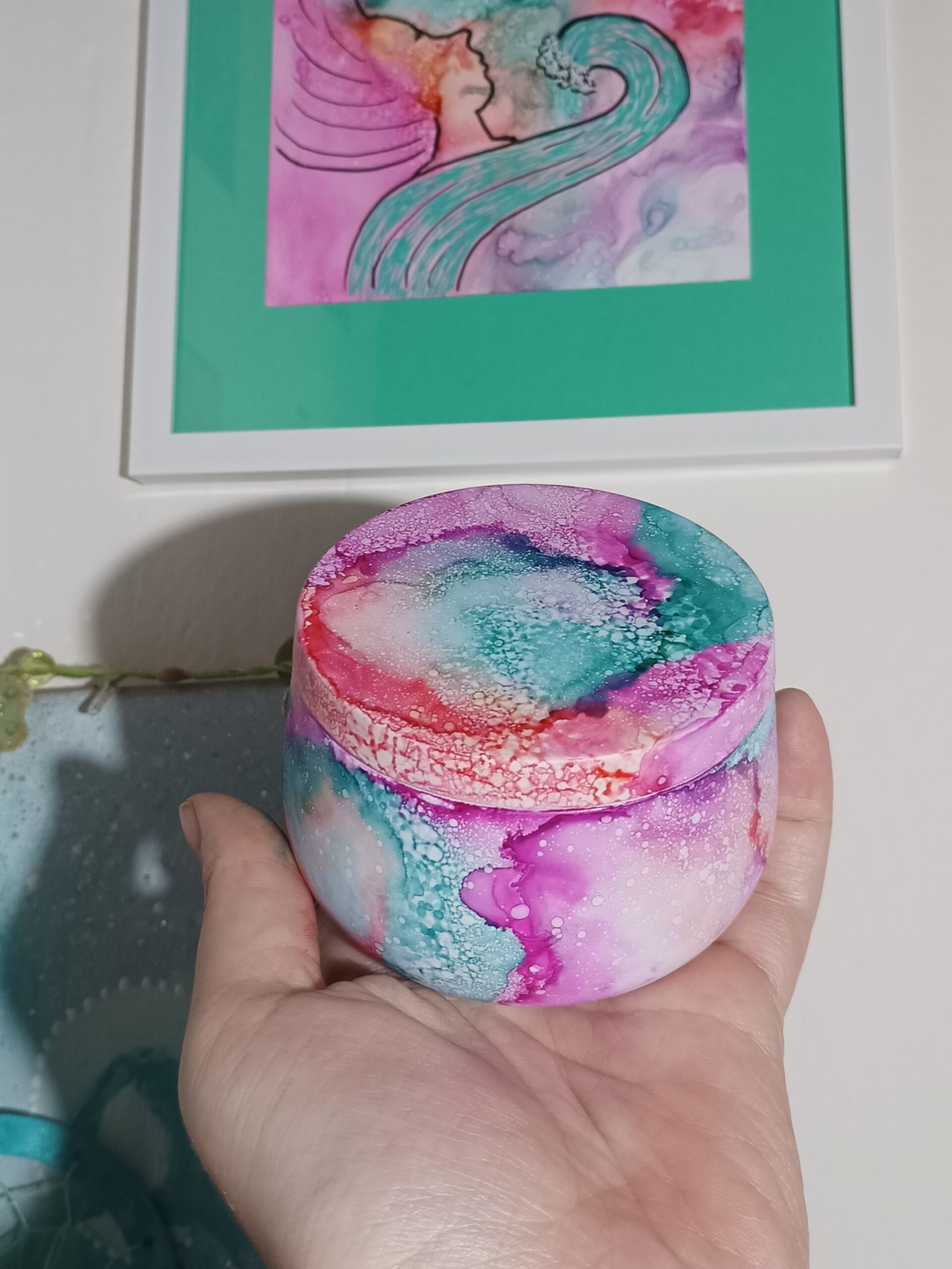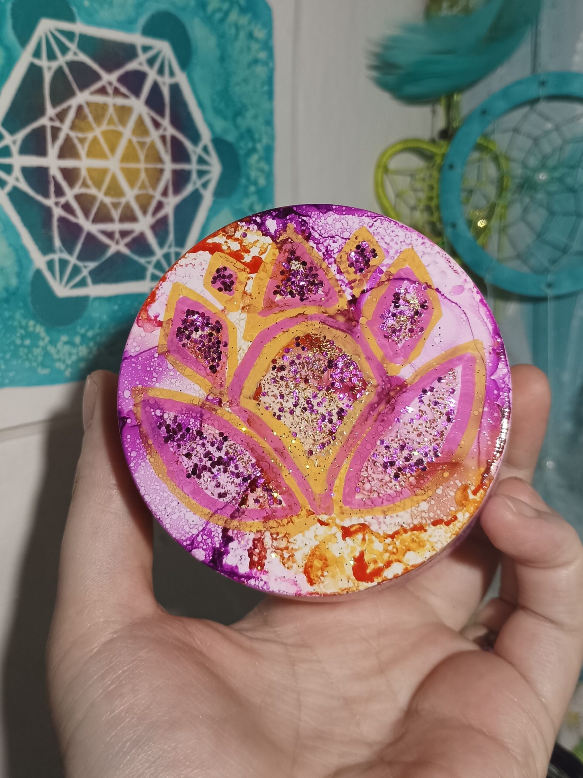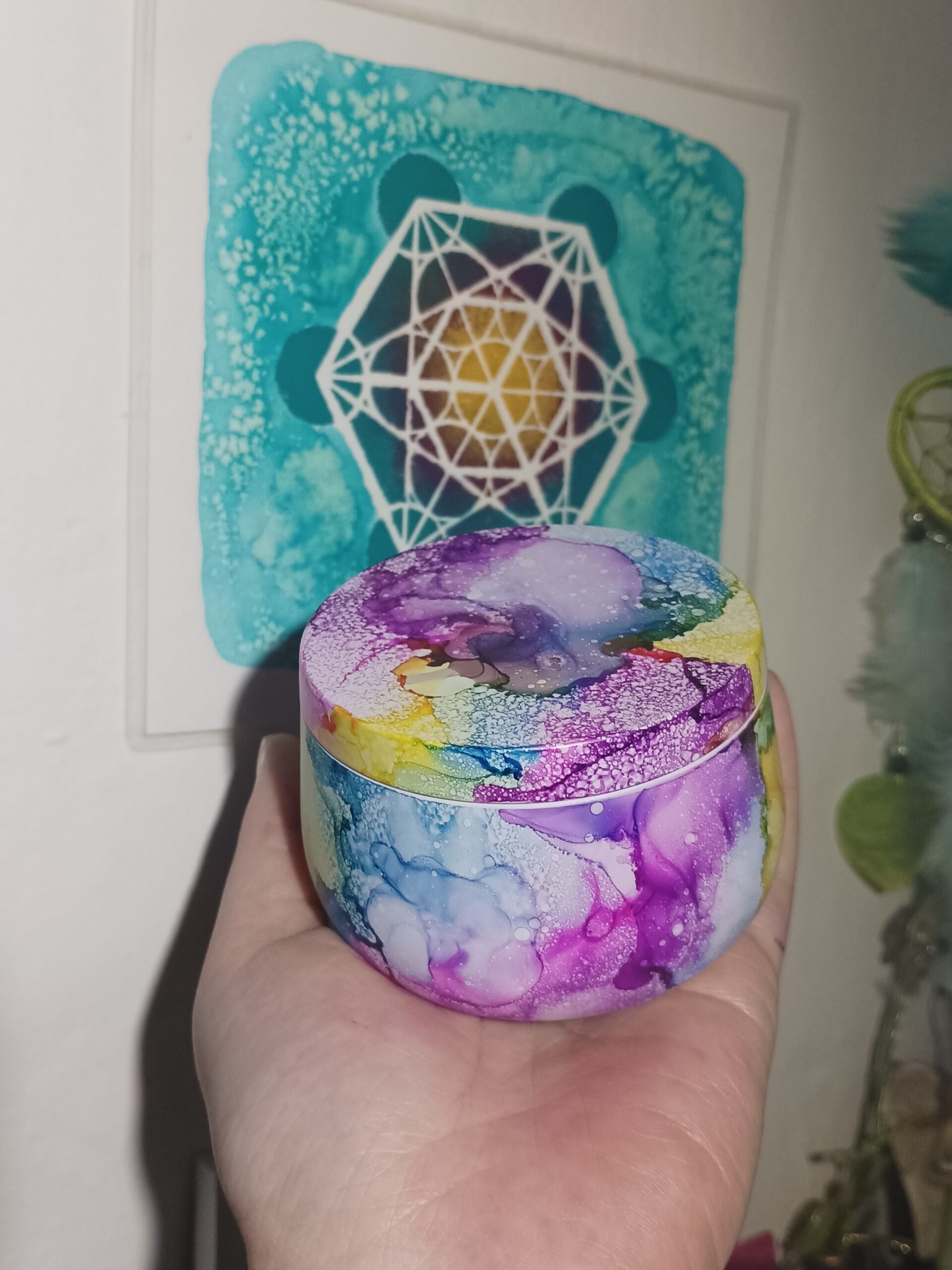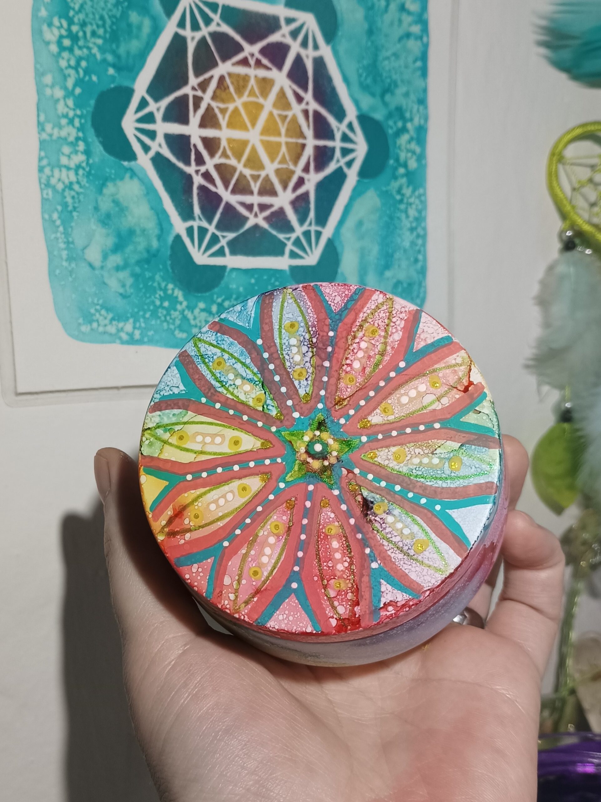Mističky, které ručně zdobím alkoholovými inkousty. Mističky jsou určeny k dekoraci, na kamínky, drobnosti, šperky, světýlka a různé jiné poklady… Jsou ošetřeny akrylovým lakem, můžou se umýt, ale nesmějí do myčky ani mikrovlnky…