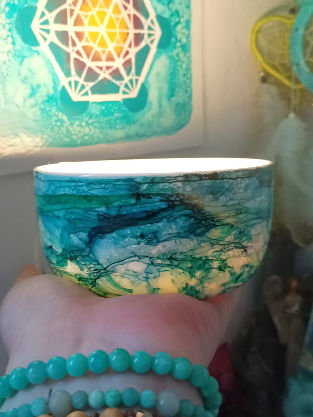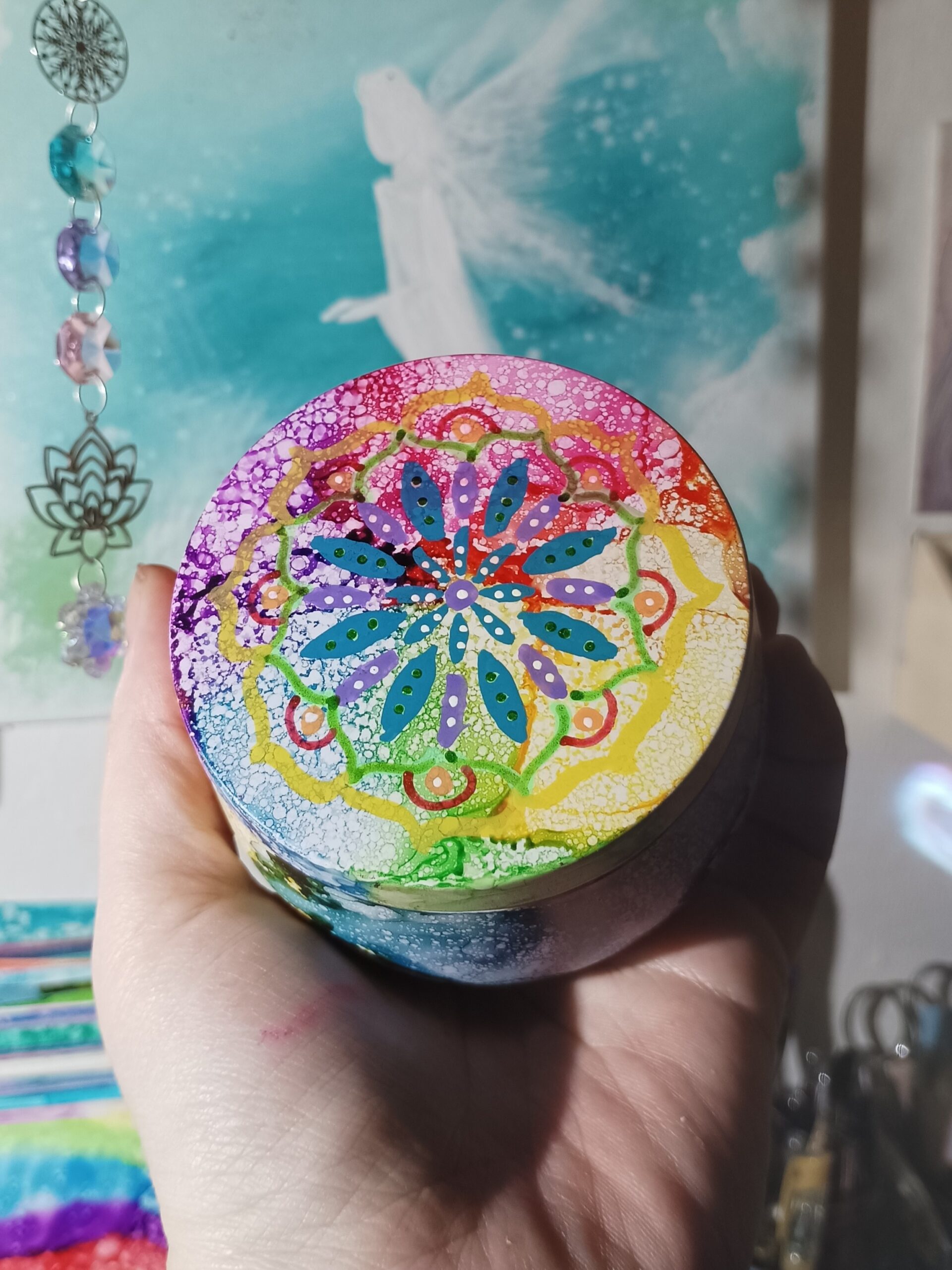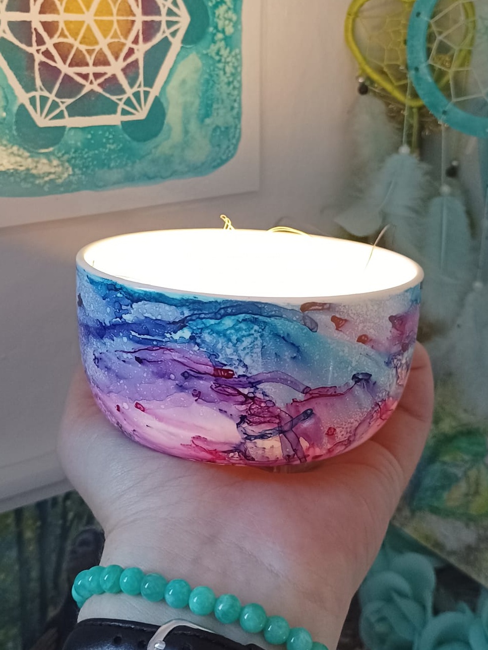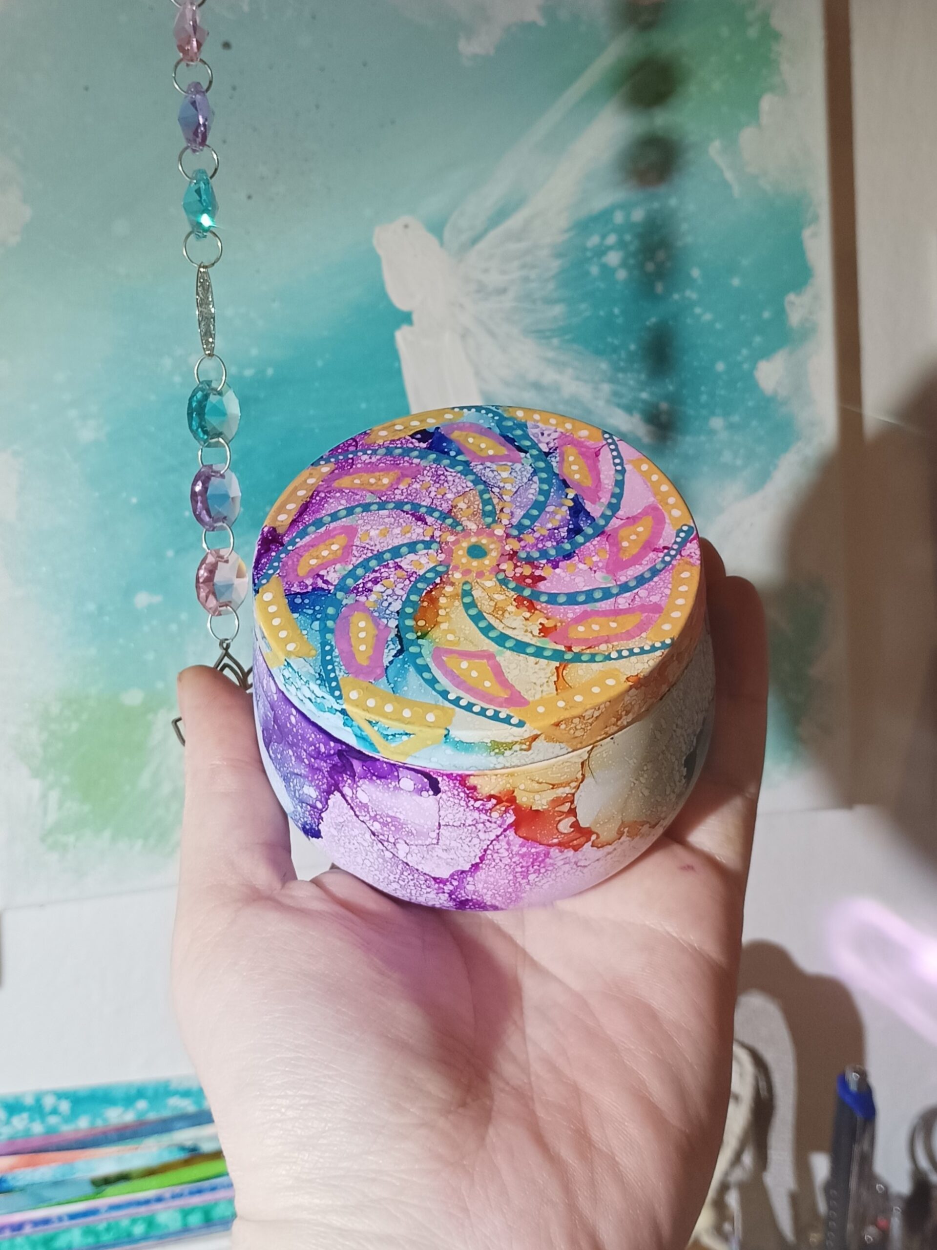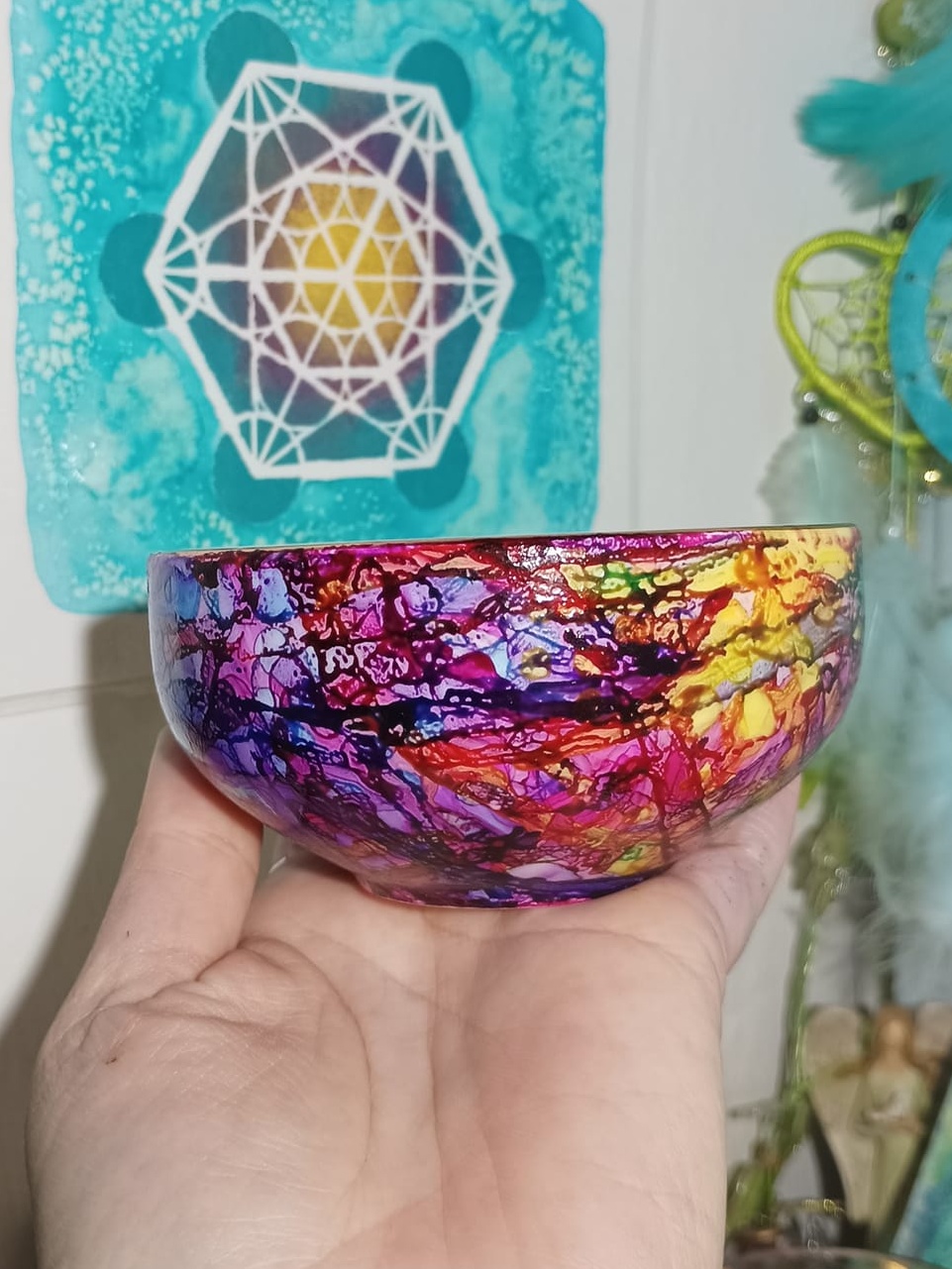 Mističky, které ručně zdobím alkoholovými inkousty. Mističky jsou určeny k dekoraci, na kamínky, drobnosti, šperky, světýlka a různé jiné poklady… Jsou ošetřeny akrylovým lakem, můžou se umýt, ale nesmějí do myčky ani mikrovlnky…