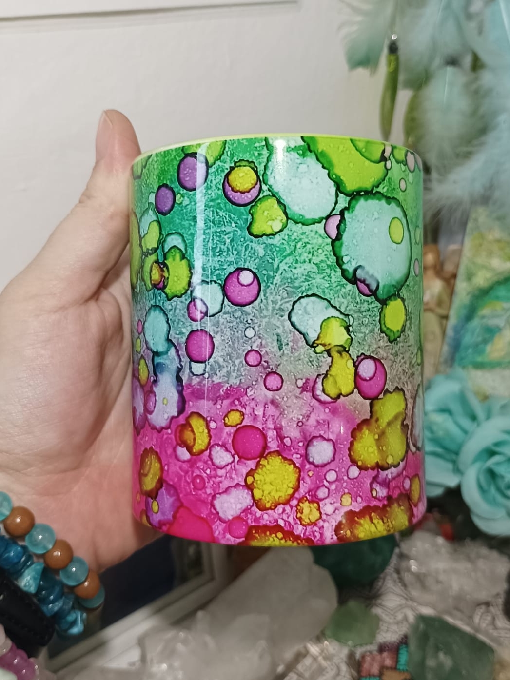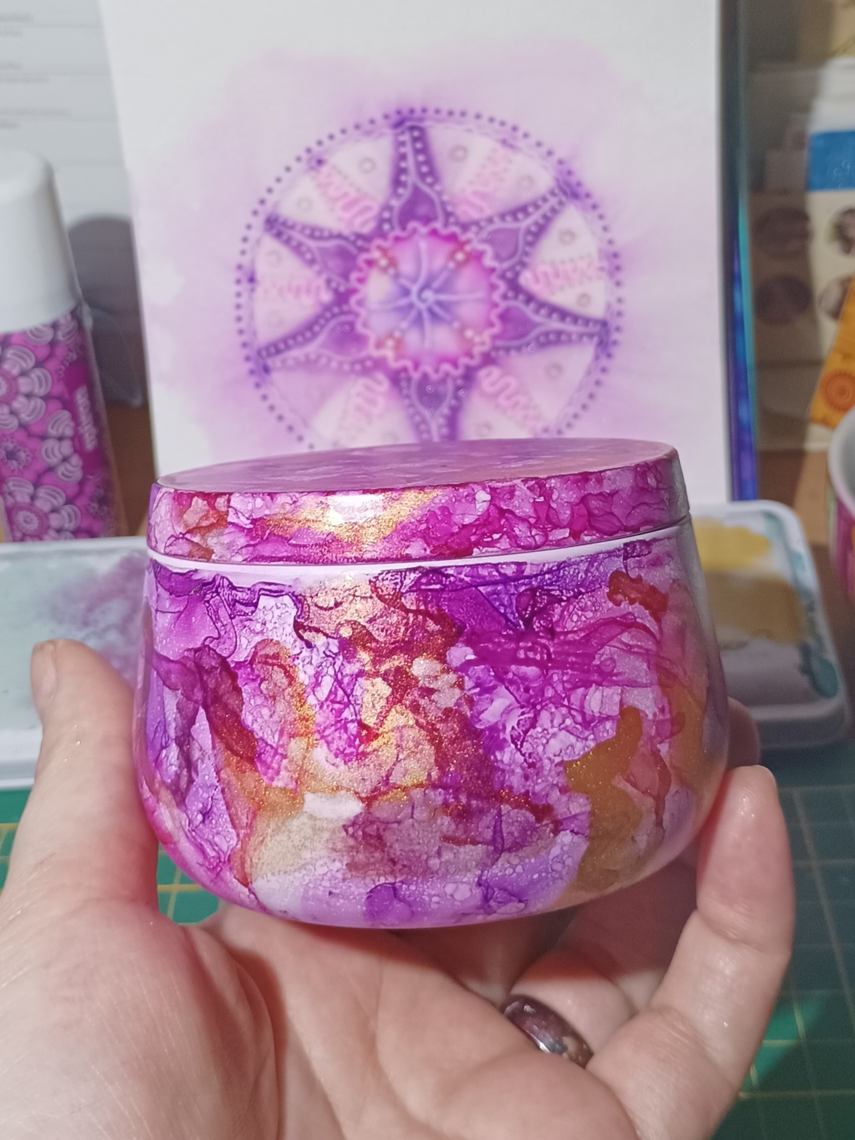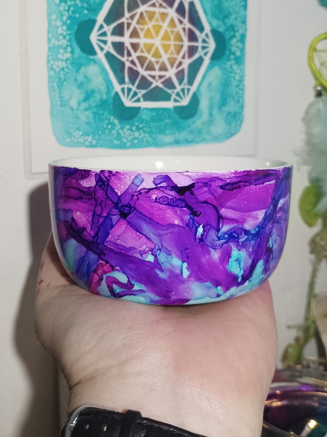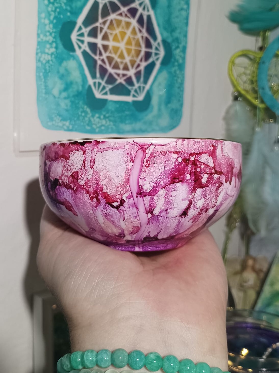 Mističky, které ručně zdobím alkoholovými inkousty. Mističky jsou určeny k dekoraci, na kamínky, drobnosti, šperky, světýlka a různé jiné poklady… Jsou ošetřeny akrylovým lakem, můžou se umýt, ale nesmějí do myčky ani mikrovlnky…
