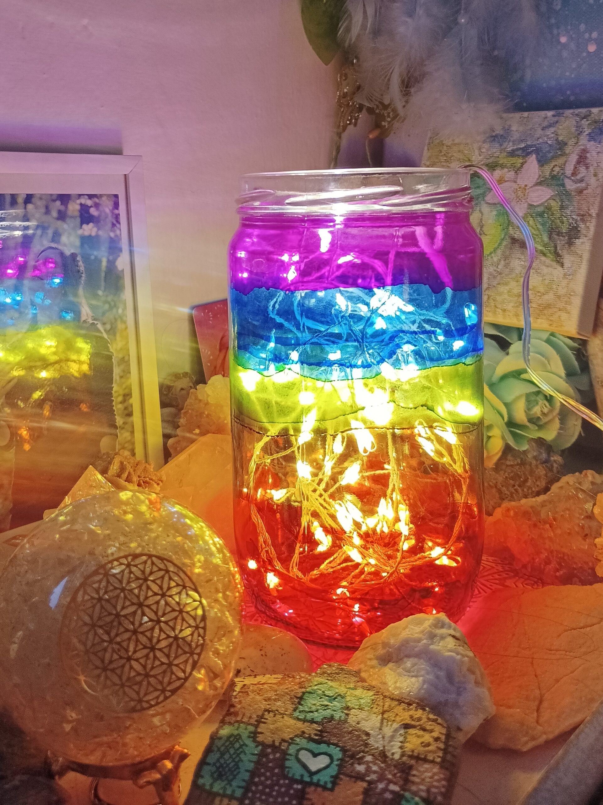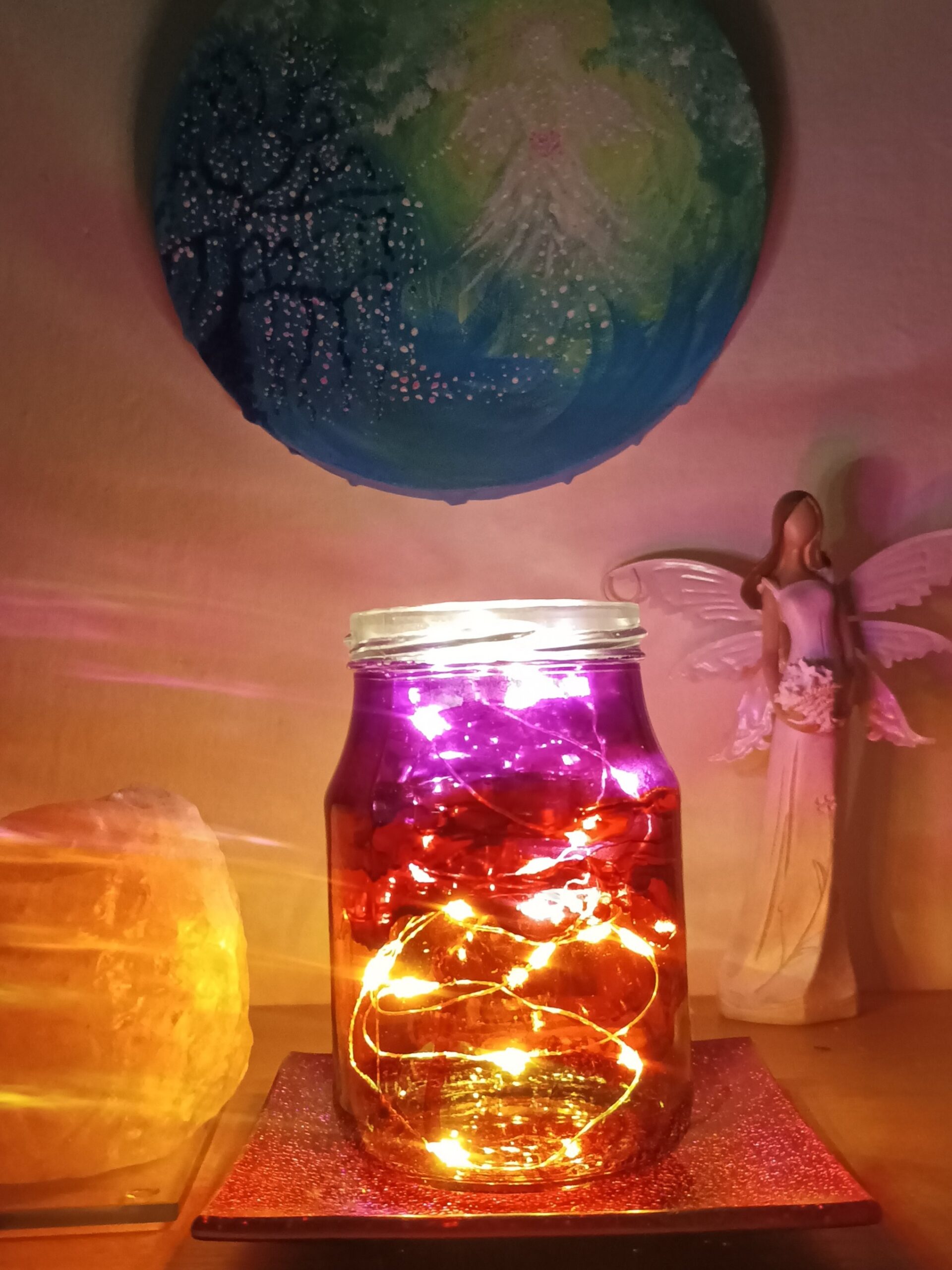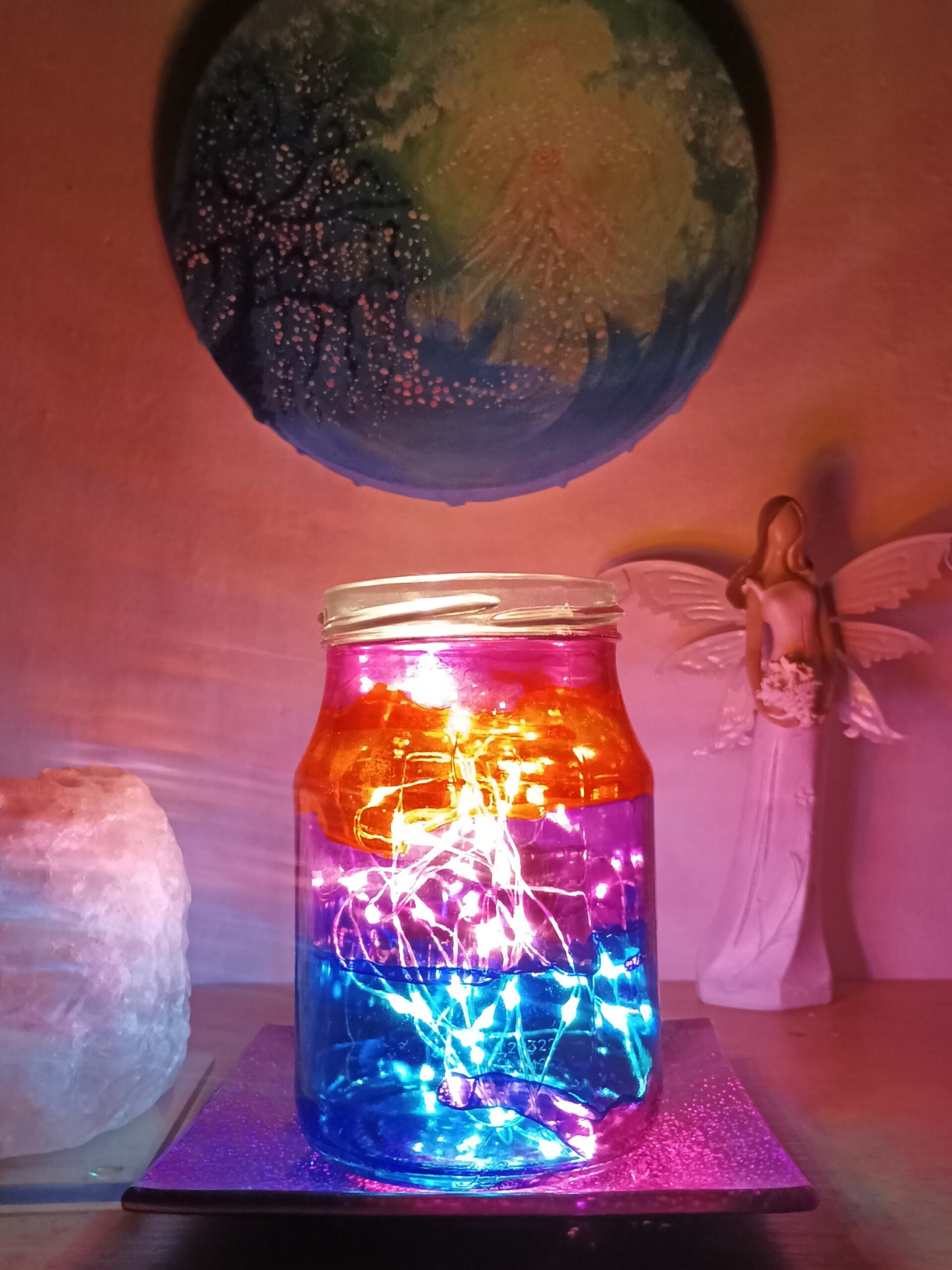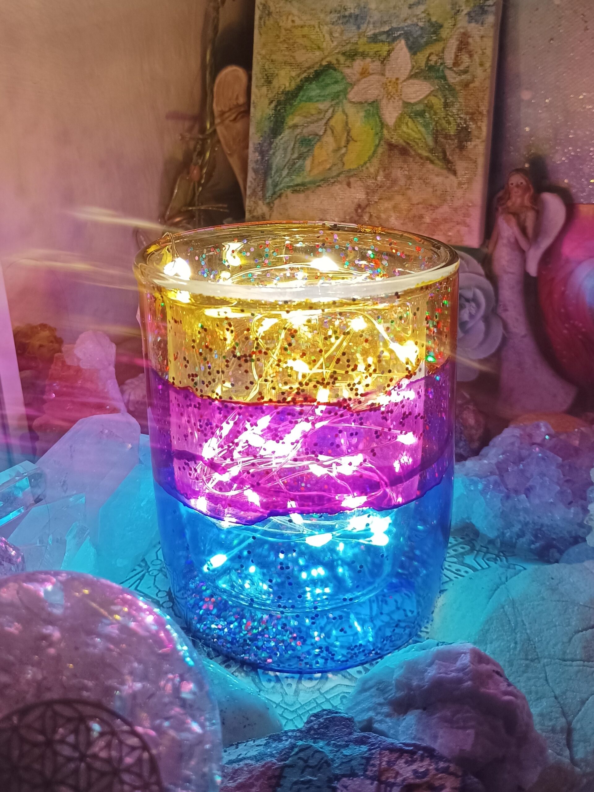 Lampičky, které ručně zdobím alkoholovými inkousty. Malované klasické skleničky, zavařovačky, broušené skleničky a uvnitř nich světlýlka na baterky…